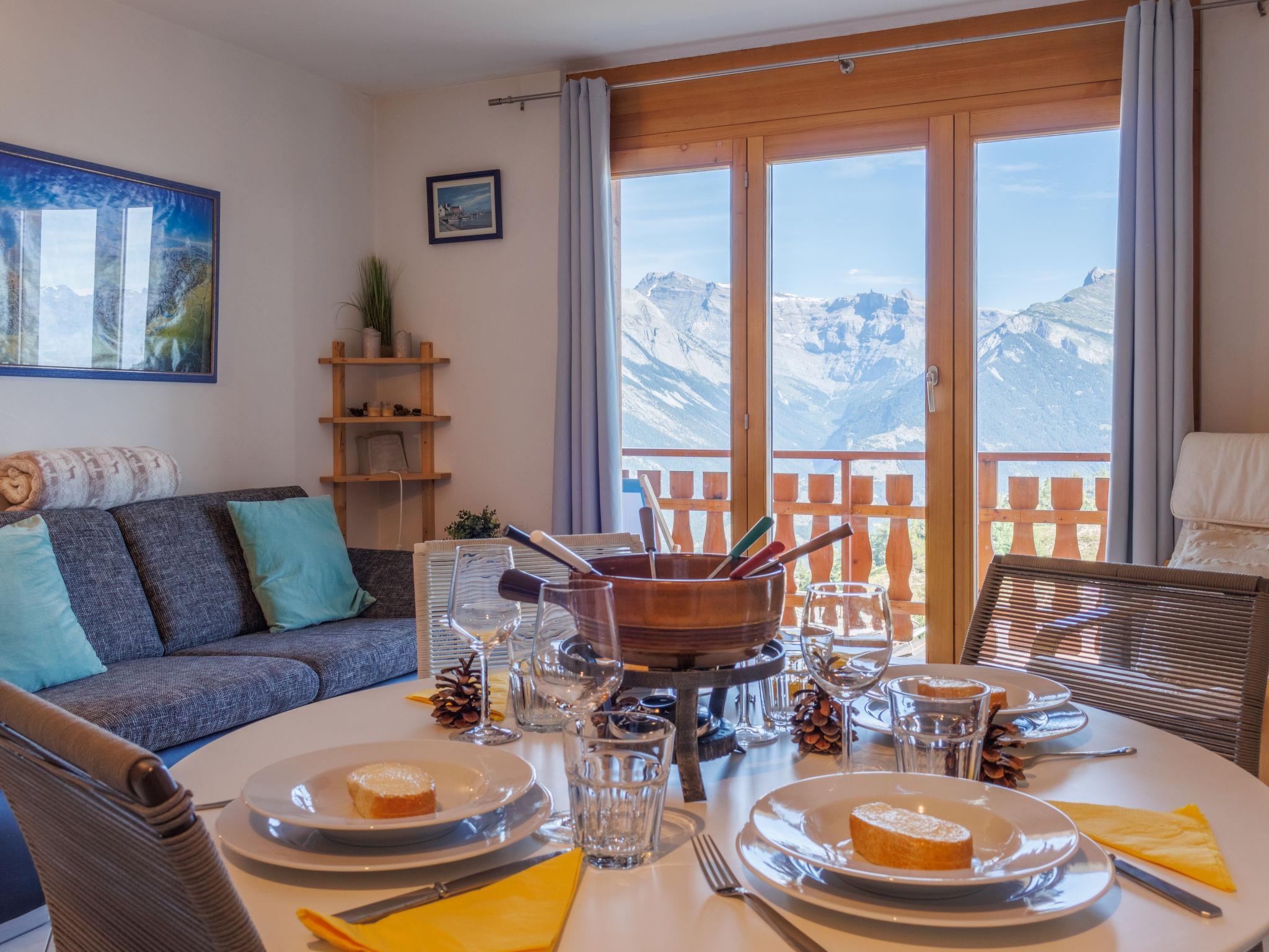 "Grand Panorama A11", 2-Zimmer-Wohnung 45 m2 im 3. Stock. Objekt geeignet für 2 Erwachsene + 2 Kinder. Hell, schön eingerichtet: Wohn-/Esszimmer mit 1 franz. Wandschrankbett (140 cm, Länge 190 cm), Kabel-TV. Ausgang zum Balkon, Richtung Norden. 1 Zimmer mit 1 franz. Bett (160 cm, Länge 200 cm). Ausgang zum Balkon, Richtung Norden. Offene Küche (Backofen, Geschirrspüler, 4 Glaskeramikplatten, Toaster, Racletteofen, Fondue Set (Käse)). Dusche/WC. Balkonmöbel. Sehr schöne Sicht auf die Berge. Zur Verfügung: Kinderhochstuhl, Babybett, Haartrockner. Internet (WLAN, gratis). Parkplatz Nr. A11 (überdacht) beim Haus. Bitte beachten: Nichtraucher-Unterkunft. Maximal 1 Haustier/Hund erlaubt.