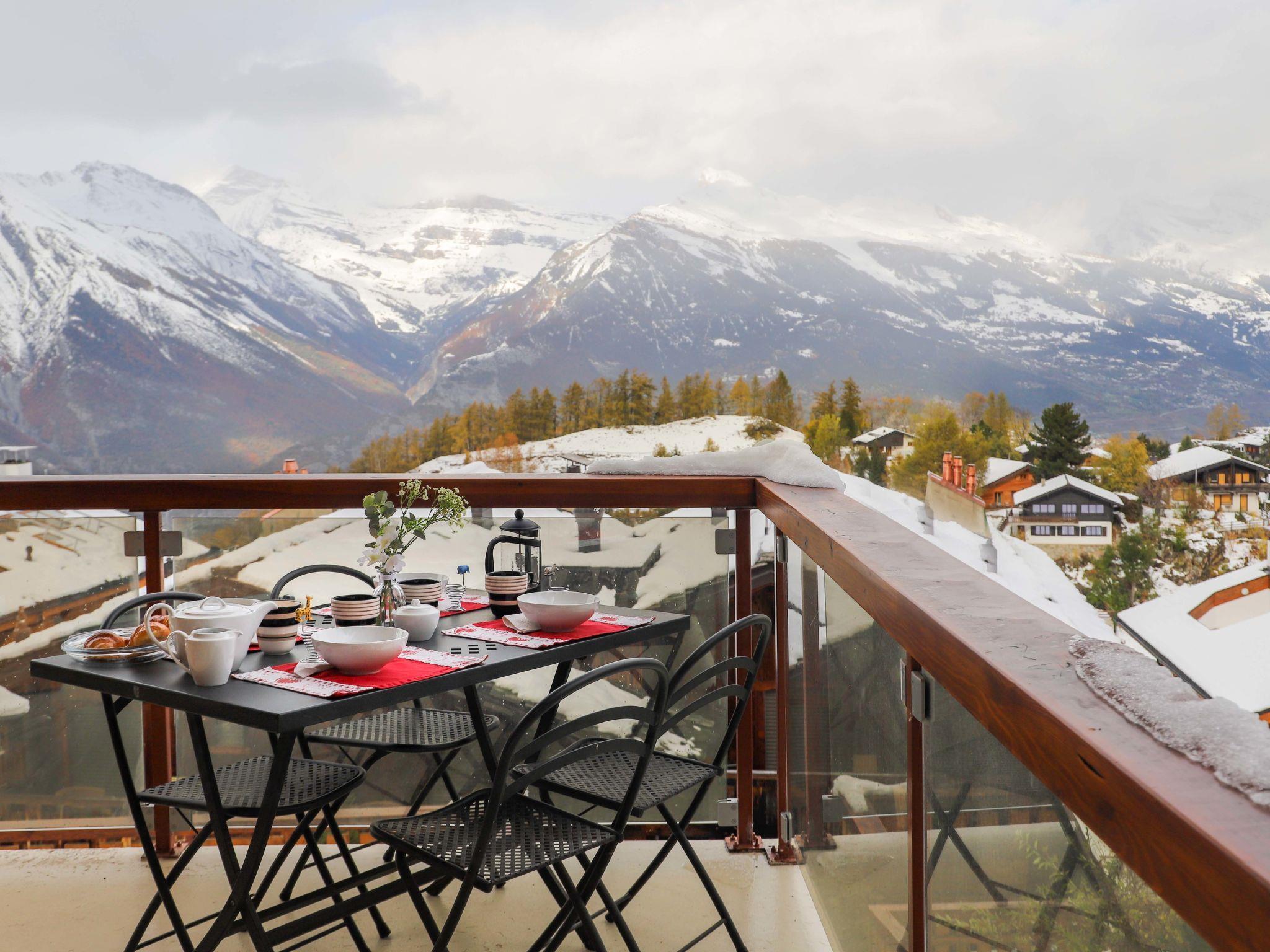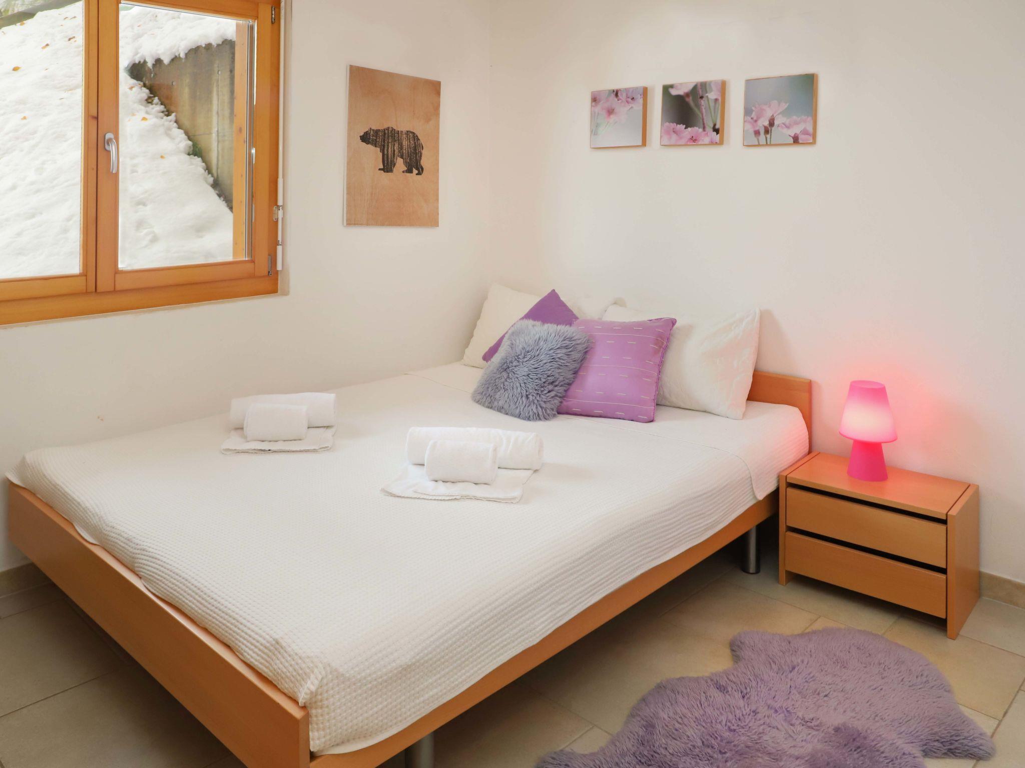 "Domaine des Reines B4", 4-Zimmer-Wohnung 97 m2 im 2. Stock. Geräumig, komfortabel eingerichtet: grosses Wohn-/Esszimmer mit Panoramafenster mit Kabel-TV und DVD. Ausgang zum Balkon. 1 grosses Zimmer mit 1 franz. Bett (180 cm, Länge 200 cm), Dusche/WC. Ausgang zum Balkon. 1 Zimmer mit 1 franz. Bett (160 cm, Länge 200 cm). 1 kleines Zimmer mit 2 Betten (90 cm, Länge 190 cm). Offene Küche (Backofen, Geschirrspüler, 4 Glaskeramikplatten, Toaster, Wasserkocher, elektrische Kaffeemaschine, Kapseln für die Kaffeemaschine (Nespresso) extra, Racletteofen, Fondue Set (Chinoise, Käse)) mit offenem Kamin. Bad/WC. Fussbodenheizung. Grosser Balkon 25 m2, Nordlage und Ostlage. Balkonmöbel. Sehr schöne Sicht auf die Berge und das Tal. Zur Verfügung: Babybett, Haartrockner. Internet (Wireless LAN, gratis). Garage Nr. B4, Höhe 200 cm, Breite 240 cm. Bitte beachten: Nichtraucher-Unterkunft, Nichtraucher-Haus. Jugendgruppe nur auf Anfrage.