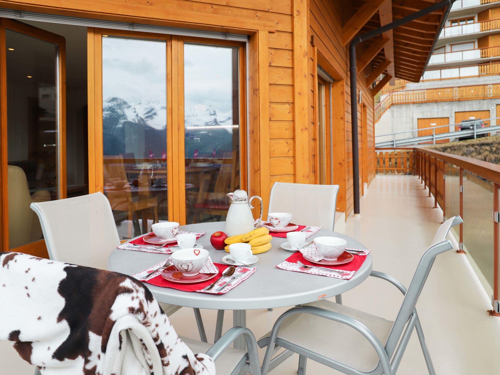 "Domaine des Reines C10", 5-Zimmer-Wohnung 110 m2 im 5. Stock. Geräumig und hell, komfortabel und geschmackvoll eingerichtet: grosses Wohn-/Esszimmer mit Panoramafenster mit offenem Kamin, Kabel-TV und DVD. Ausgang zum Balkon. 1 Zimmer mit 1 franz. Bett (160 cm, Länge 200 cm), Dusche/WC. Ausgang zum Balkon, Richtung Norden. 2 Zimmer, jedes Zimmer mit 1 franz. Bett (160 cm, Länge 200 cm). Ausgang zum Balkon, Richtung Süden. 1 Zimmer mit 2 Betten (90 cm, Länge 190 cm). Ausgang zum Balkon, Richtung Westen. Offene Küche (Backofen, Geschirrspüler, 4 Glaskeramikplatten, Toaster, Wasserkocher, Mikrowelle, elektrische Kaffeemaschine, Kapseln für die Kaffeemaschine (Nespresso) extra, Racletteofen, Fondue Set (Käse)). Bad/WC. Grosser Balkon 53 m2, Nordlage und Ostlage Balkon, Südlage. Balkonmöbel. Sehr schöne Sicht auf die Berge und das Tal. Zur Verfügung: Haartrockner. Internet (Wireless LAN, gratis). Parkplatz (überdacht, 1 Auto), Höhe 210 cm, Breite 260 cm. Bitte beachten: Nichtraucher-Unterkunft.