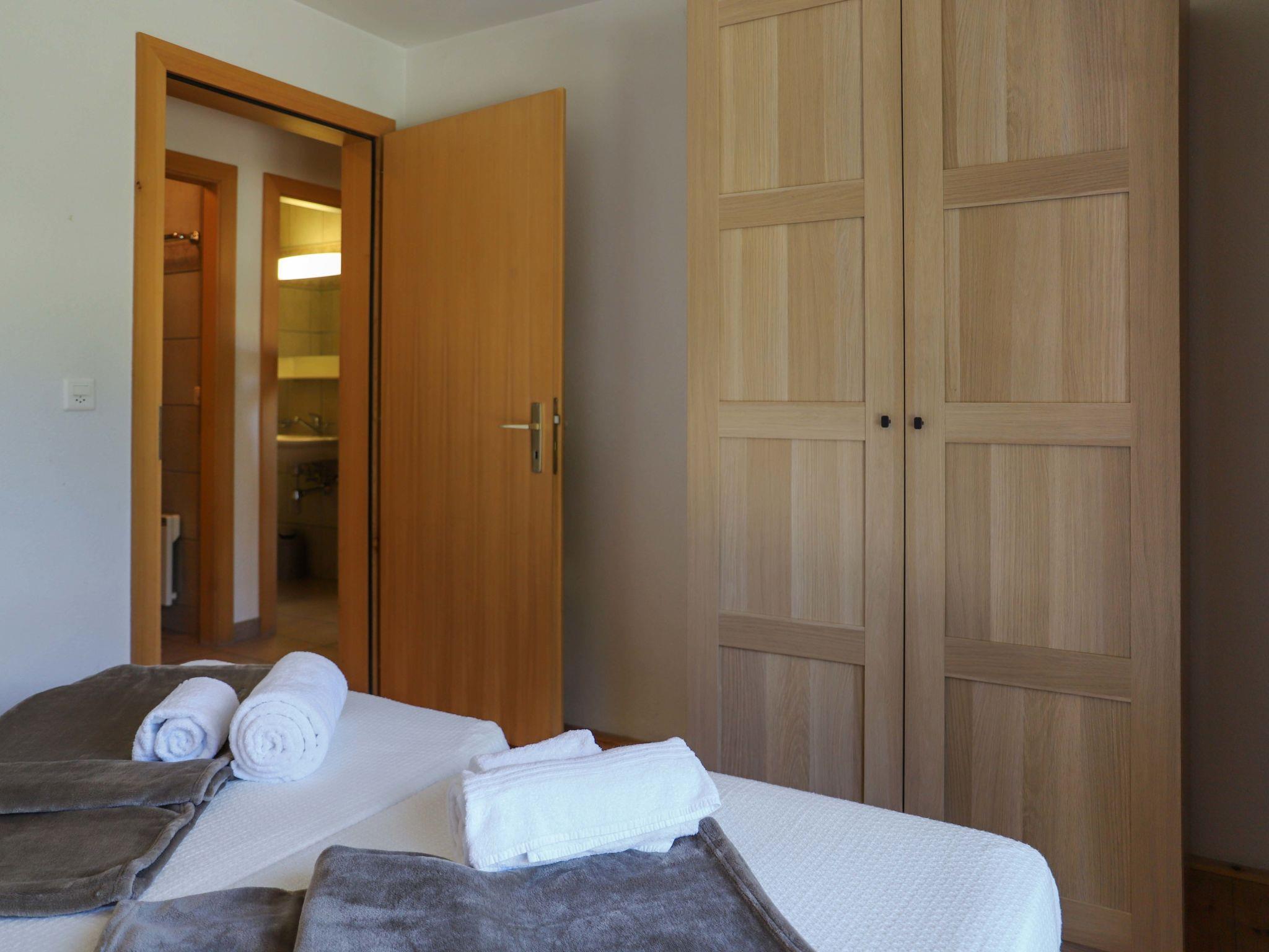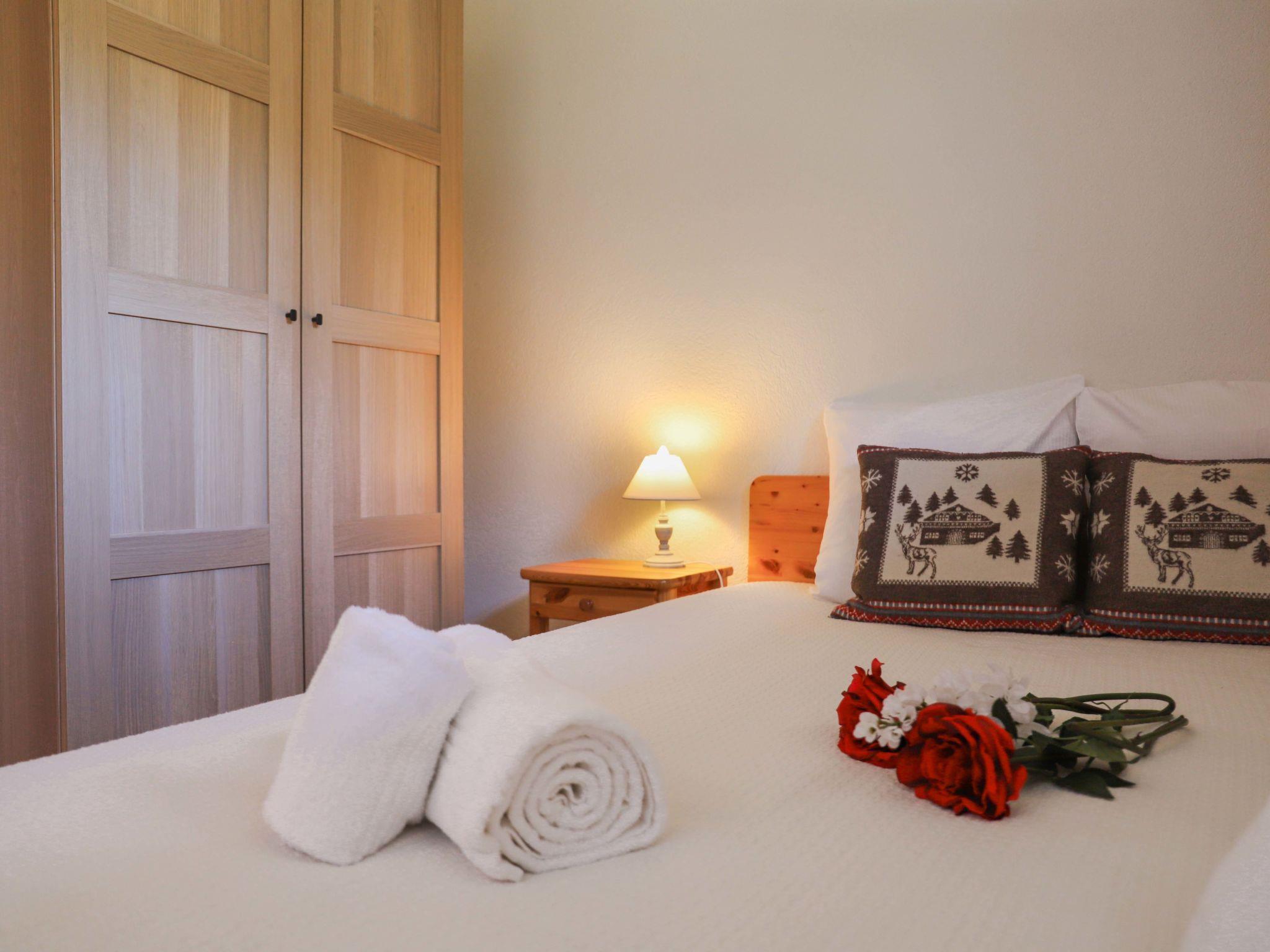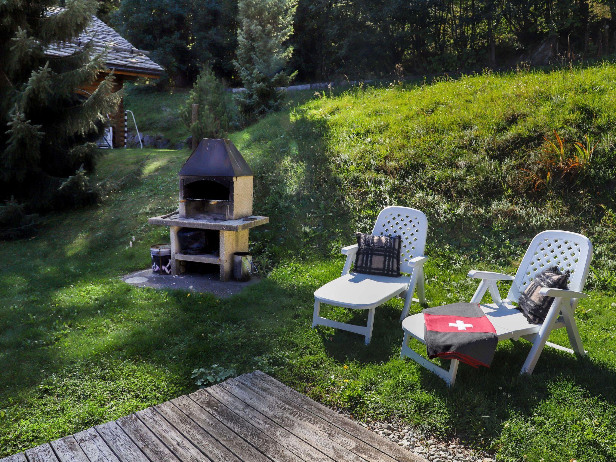 "Edelweiss", 7-Zimmer-Chalet 180 m2 auf 3 Stockwerken, Südostlage. Geräumig, mit viel Holz eingerichtet: Eingang. Grosses Wohn-/Esszimmer mit Schwedenofen und Kabel-TV. Ausgang zum Balkon. Offene Küche (Backofen, Geschirrspüler, 4 Glaskeramikplatten, Toaster, Wasserkocher, elektrische Kaffeemaschine, Kapseln für die Kaffeemaschine (Nespresso) extra, Racletteofen, Fondue Set (Käse)). Dusche/WC. E-Heizung. Unteres Geschoss: 2 Zimmer, jedes Zimmer mit 2 Betten (90 cm, Länge 200 cm). 1 Zimmer mit 1 franz. Bett (160 cm, Länge 200 cm). Dusche, sep. WC, Sauna. Dachgeschoss: 2 Zimmer, jedes Zimmer mit 2 Betten (90 cm, Länge 200 cm). Ausgang zum Balkon und Richtung Osten. 1 Zimmer mit 1 franz. Bett (160 cm, Länge 200 cm). Ausgang zum Balkon. Bad/WC. 2 Balkone, Ostlage, Terrasse 30 m2, Südlage und Ostlage. Terrassenmöbel, Gartengrill, Liegestühle (5). Schöne Panoramasicht auf die Berge. Zur Verfügung: Kinderhochstuhl, Babybett. Internet (WLAN, gratis). Parkplatz (2 Autos), Garage, Höhe 200 cm, Breite 220 cm. Bitte beachten: Nichtraucher-Haus.