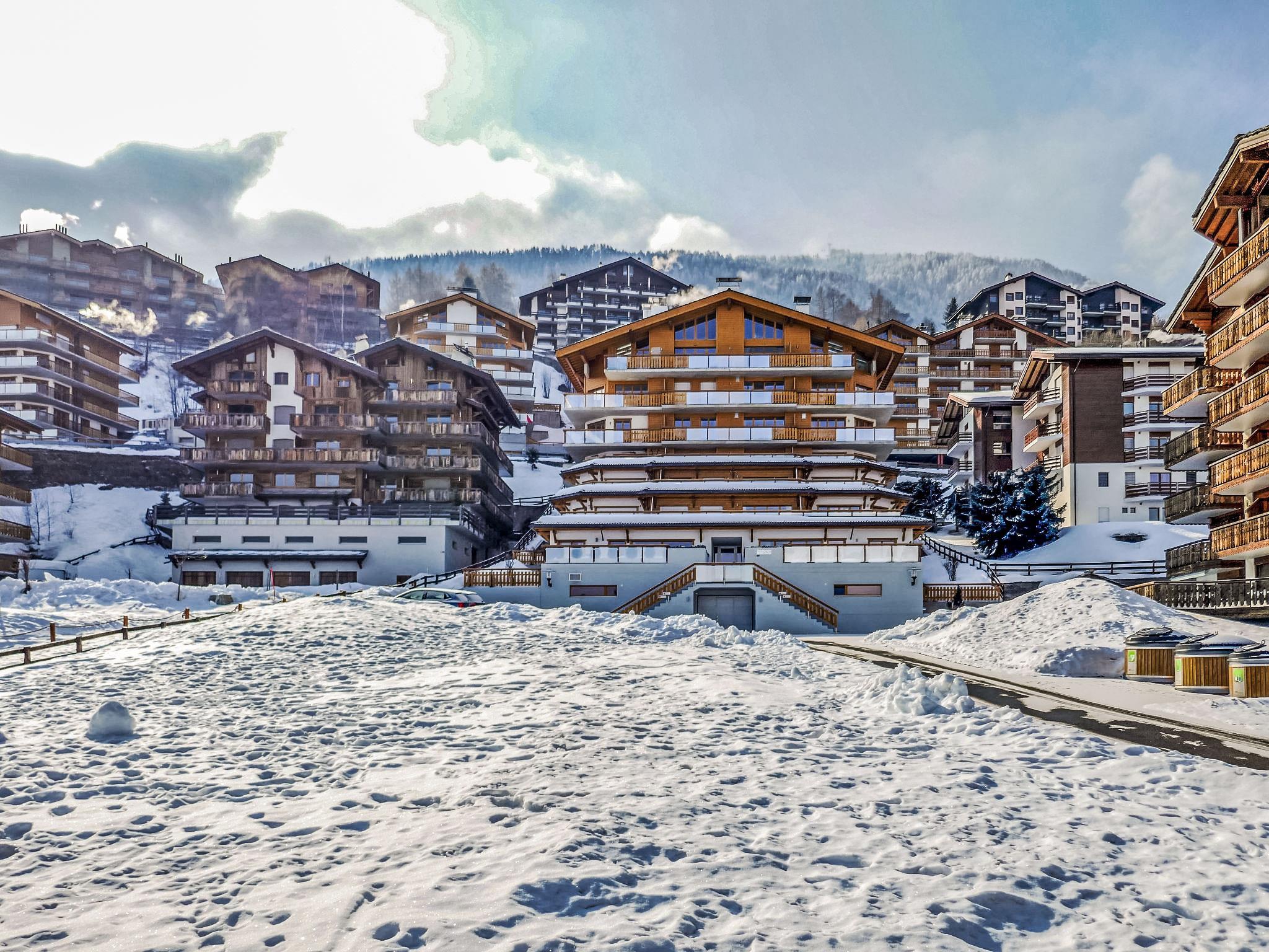 Schöne Residenz "Le Cor des Alpes", Baujahr 2011. Im Ort, 300 m vom Zentrum, ruhige Lage. Zur Mitbenutzung: Garten (nicht eingezäunt). Im Hause: Sauna, Hamam, Fahrstuhl. Parkplatz. Supermarkt 400 m, Restaurant 350 m, Bushaltestelle "Haute-Nendaz, station/poste" 800 m, Bahnstation "Sion" 16.6 km, Freibad 250 m. Tennis 200 m, Sportzentrum 500 m, Gondelbahn 900 m, Skibushaltestelle 150 m, Ski-Kindergarten, Schlittelbahn 100 m, Eisfeld 300 m, Kinderspielplatz 100 m. Nahe gelegene Sehenswürdigkeiten: Spa des Bisses 300 m. Bekannte Skigebiete sind gut erreichbar: Nendaz Tracouet - 4 Vallées 900 m. Bitte beachten: Gratis Skibus. Squash gratis im Appartmenthaus. Sprudelbad nur mit Wohnung 2. Nur Wohnung 2 und 16 mit Pool access Domaine des Reines Residenz, 100m.