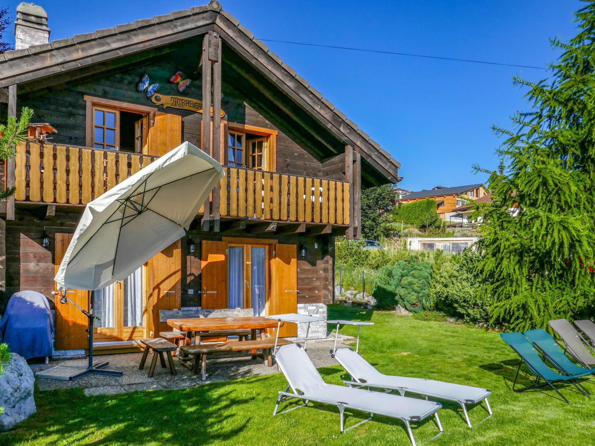 Schönes Chalet "Mirabeau", auf 2 Stockwerken, Baujahr 1990, renoviert im Jahre 2024. Im Ortsteil Pattier, ruhige Lage, Richtung Osten. Zur Alleinbenutzung: gepflegter Garten 400 m2 (eingezäunt). Im Winter bitte Schneeketten mitbringen, im Winter 4x4 empfohlen. Treppenweg (15 Stufen) bis zum Haus. Parkplatz, Einzelgarage. Supermarkt 700 m, Restaurant 1 km, Bäckerei 650 m, Zentrum zu Fuss in 10 Minuten erreichbar, Bushaltestelle "postal, La Crettaz" 230 m, Freibad 1.7 km. Golfplatz (18 Loch) 20 km, Tennis 1.7 km, Gondelbahn 1.7 km, Skibushaltestelle 240 m, Eisfeld 1.3 km, Kinderspielplatz 1.5 km. Bekannte Skigebiete sind gut erreichbar: Tracouet 4 Vallées 1.7 km. Wandergebiete: Bisse du Milieu 800 m. Bitte beachten: Gratis Skibus.