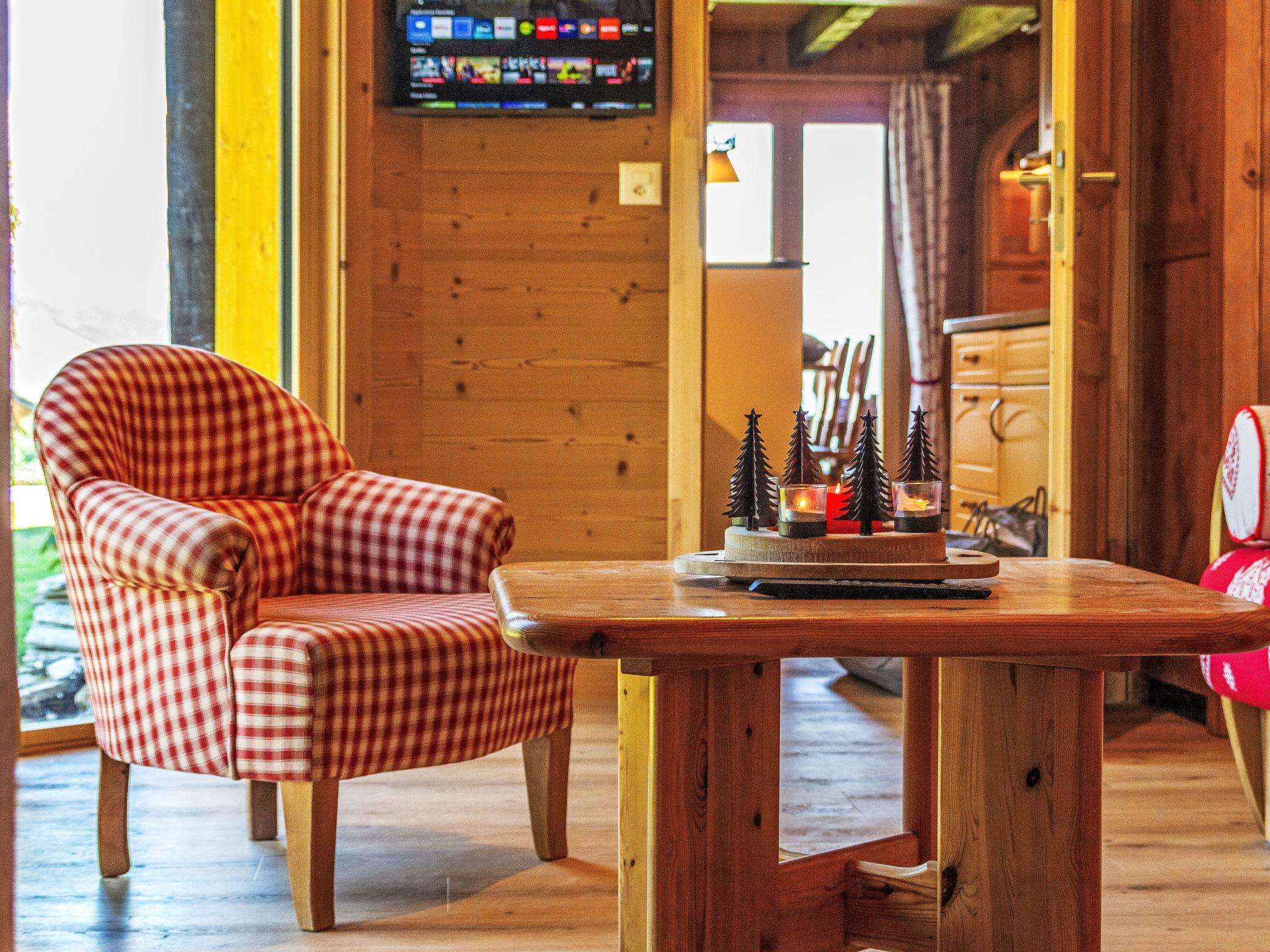 "Mirabeau 6", 5-Zimmer-Chalet 105 m2 auf 2 Stockwerken, Ostlage. Teilweise abgeschrägt, teilweise renoviert im Jahre 2024, komfortabel und schön eingerichtet: Eingang. Wohn-/Esszimmer mit offenem Kamin, Kabel-TV und Stereoanlage. Ausgang zum Garten, zur Terrasse. Wohnzimmer mit Kabel-TV. 1 Kinderzimmer mit 1 x 2 Etagenbetten (90 cm, Länge 190 cm). Offene Küche (Backofen, Geschirrspüler, 4 Glaskeramikplatten, Toaster, Wasserkocher, Mikrowelle, Tiefkühler, elektrische Kaffeemaschine, Kapseln für die Kaffeemaschine (nespresso) extra, Racletteofen, Fondue Set (Käse)). Dusche/WC. E-Heizung. Obergeschoss: 1 Zimmer mit 1 Doppelbett (2 x 80 cm, Länge 200 cm). Ausgang zum Balkon, Richtung Osten. 1 Zimmer mit 2 Betten (90 cm, Länge 200 cm). Dusche/WC. Balkon, Ostlage, Terrasse, Ostlage. Terrassenmöbel, Gartengrill (mobil), Liegestühle. Sehr schöne Sicht auf die Berge und das Tal. Zur Verfügung: Waschmaschine, Wäschetrockner, Kinderhochstuhl, Babybett, Haartrockner. Internet (WLAN, gratis). Parkplatz (1 Auto), Garage (extra) (1 Auto), Höhe 200 cm, Breite 240 cm. Bitte beachten: Nichtraucher-Unterkunft. Maximal 1 Haustier/Hund erlaubt.