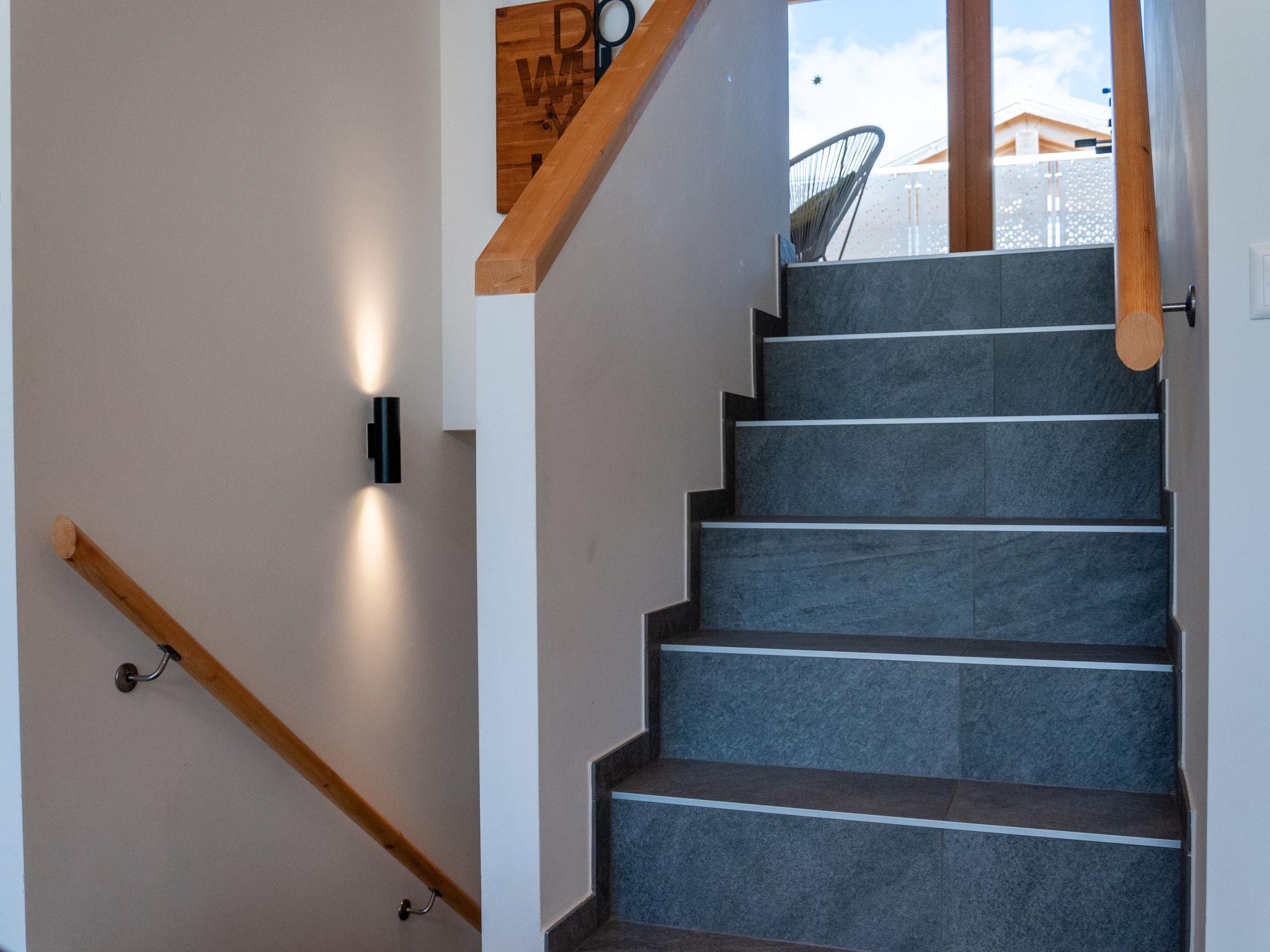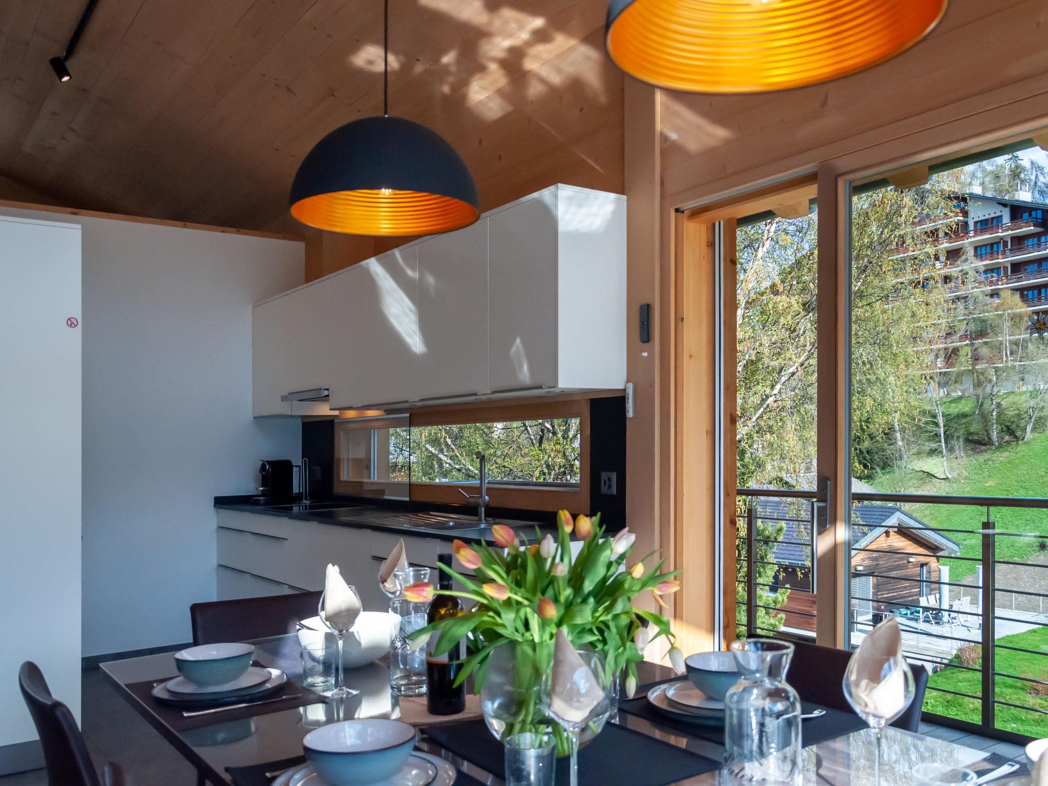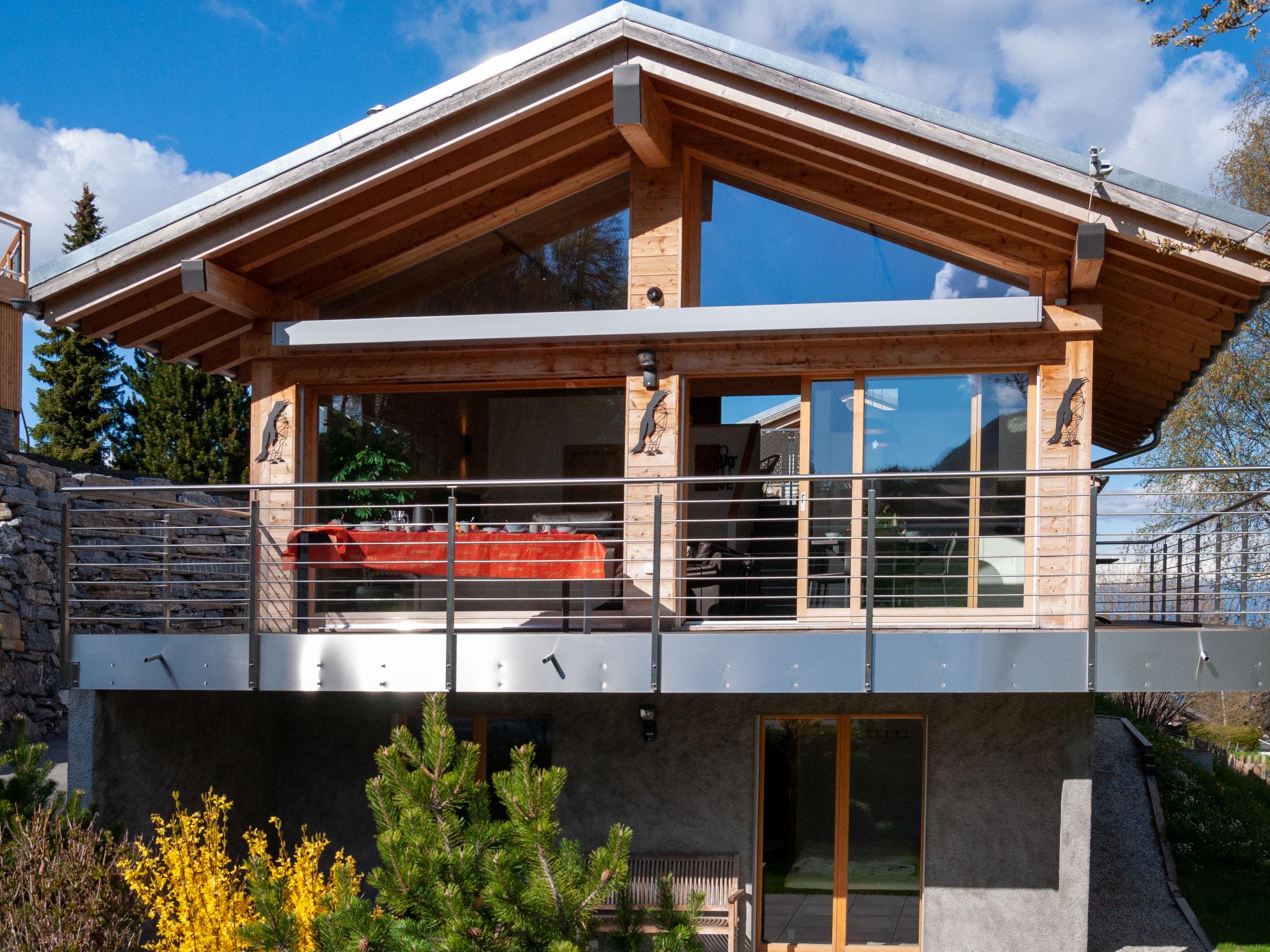 "Les penguins", 4-Zimmer-Chalet 116 m2 auf 3 Stockwerken. Hell, komfortabel und modern eingerichtet: grosses Wohn-/Esszimmer mit Kabel-TV. Ausgang zur Terrasse, Richtung Westen. Offene Küche (Backofen, Geschirrspüler, 4 Glaskeramikplatten, Toaster, Wasserkocher, Mikrowelle, Tiefkühler, elektrische Kaffeemaschine, Kapseln für die Kaffeemaschine (nespresso) extra, Racletteofen, Fondue Set (Chinoise, Käse)). Dusche. Heizung. Unteres Geschoss: Eingang. 2 Zimmer, jedes Zimmer mit 1 franz. Bett (160 cm, Länge 200 cm). Ausgang zur Terrasse. 1 Zimmer mit 1 franz. Bett (140 cm, Länge 200 cm). Bad/WC, sep. WC. Dachgeschoss: offene Galerie mit 1 Diwanbett (140 cm, Länge 200 cm). Ausgang zur Terrasse, Richtung Osten. Terrasse, Ostlage, 2 Terrassen, Westlage, kleiner Garten. Terrassenmöbel, Elektrogrill. Eingeschränkte Sicht auf die Berge. Zur Verfügung: Waschmaschine, Kinderhochstuhl, Babybett, Haartrockner. Internet (WLAN, gratis). Parkplatz (3 Autos), Garage, Höhe 215 cm, Breite 270 cm. Bitte beachten: Nichtraucher-Unterkunft. Anstelle eines abgeschlossenen Schlafzimmers befinden sich manche Schlafplätze in einem offenen Bereich (Galerie, Nische etc.).