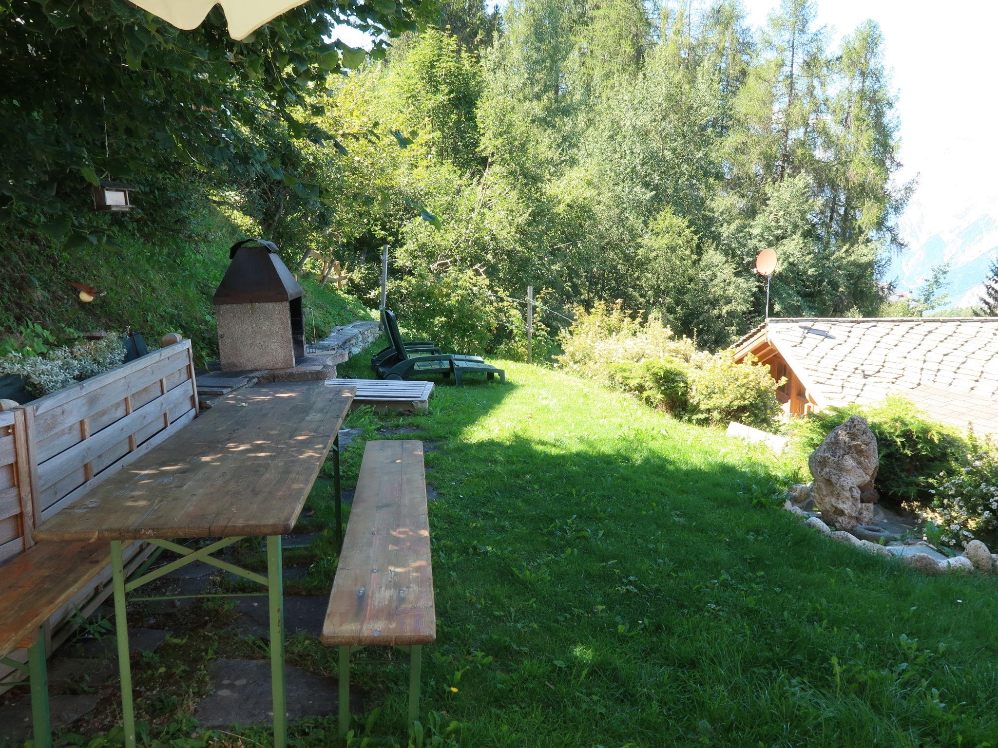 Eterpey: Freistehendes Chalet "L'aïeul", Baujahr 1950. Im Ort, 450 m vom Zentrum, am Hang, in einer Sackgasse. Zur Alleinbenutzung: terrassierter Garten mit Rasen. Gartenmöbel. Zufahrt bis, zum Haus. Im Winter bitte Schneeketten mitbringen, im Winter 4x4 empfohlen. 50 m Fussweg bis zum Haus. Parkplatz beim Haus, Einzelgarage. Lebensmittelgeschäft, Restaurant, Bäckerei 500 m, Bushaltestelle "Haute-Nendaz, bif. Le Déserteur" 450 m, Bahnstation "Sion" 16.6 km. Golfplatz (18 Loch) 15 km, Gondelbahn 600 m. Wandergebiete: les bisses du milieu et bisse-vieux 600 m. Bitte beachten: Gratis Skibus.