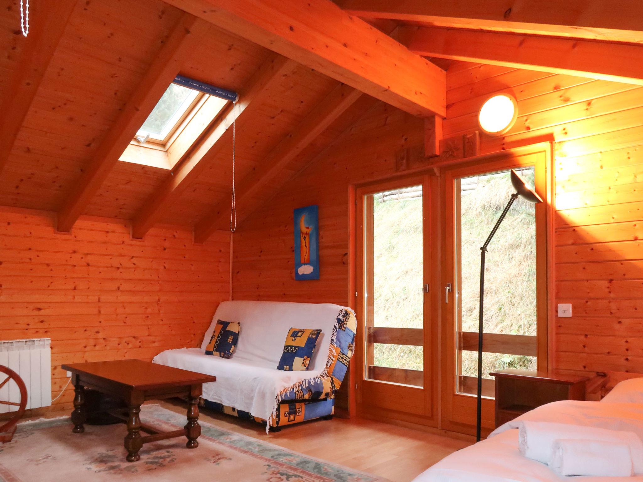 "L'aïeul", 3-Zimmer-Chalet 100 m2. Schön eingerichtet: Wohnzimmer mit offenem Kamin (nur Deko), Essecke und Kabel-TV. Offene Küche (Geschirrspüler, 4 Glaskeramikplatten, Toaster, Wasserkocher, Mikrowelle, elektrische Kaffeemaschine, Kapseln für die Kaffeemaschine (Dolce Gusto) extra, Racletteofen, Fondue Set (Chinoise, Käse)). Dusche/WC. E-Heizung. Obergeschoss: kleines Wohnzimmer mit 1 franz. Bett (1 x 160 cm, Länge 200 cm). 1 Zimmer mit 2 Betten (90 cm, Länge 200 cm). 1 Zimmer mit 1 franz. Bett (1 x 180 cm, Länge 200 cm). Garten, Nordlage und Westlage. Schöne Sicht auf die Berge und die Ortschaft. Zur Verfügung: Babybett, Haartrockner. Internet (WLAN, gratis). Parkplatz (1 Auto), Garage (1 Auto) beim Haus. Bitte beachten: Nichtraucher-Unterkunft. Anstelle eines abgeschlossenen Schlafzimmers befinden sich manche Schlafplätze in einem offenen Bereich (Galerie, Nische etc.).