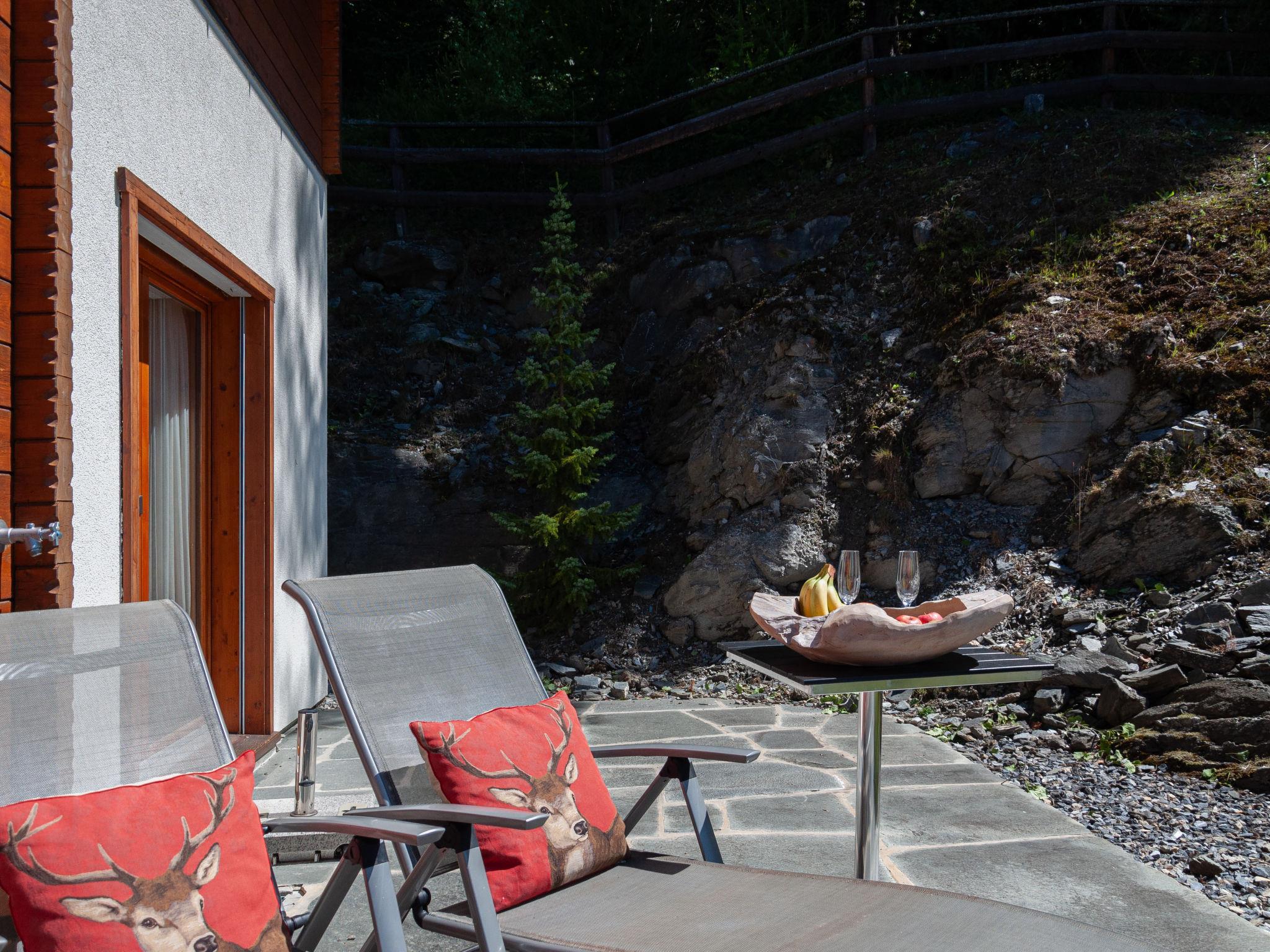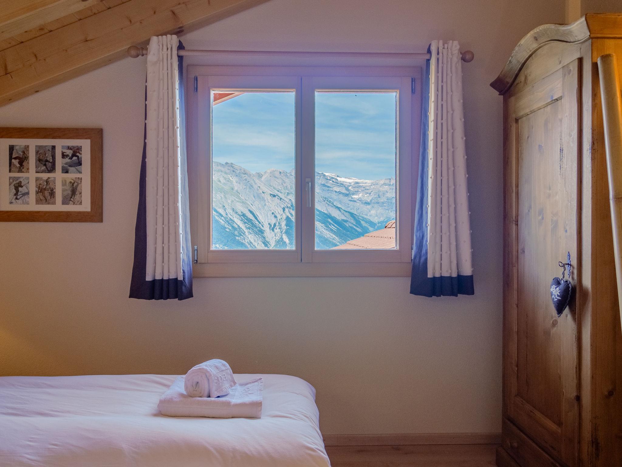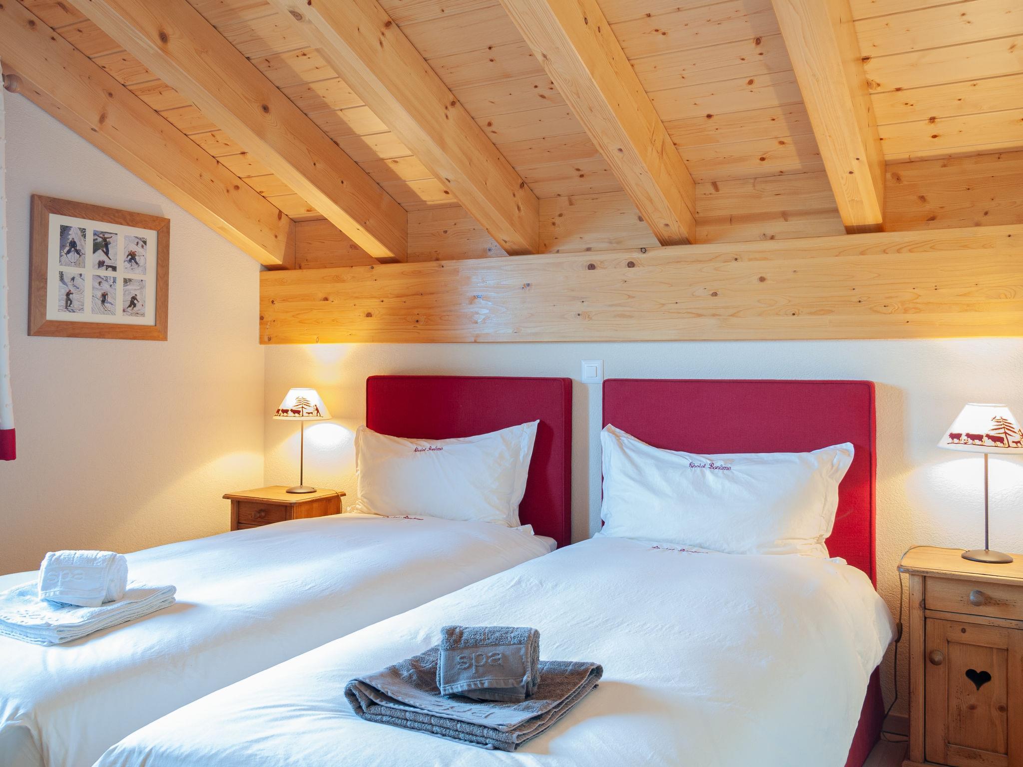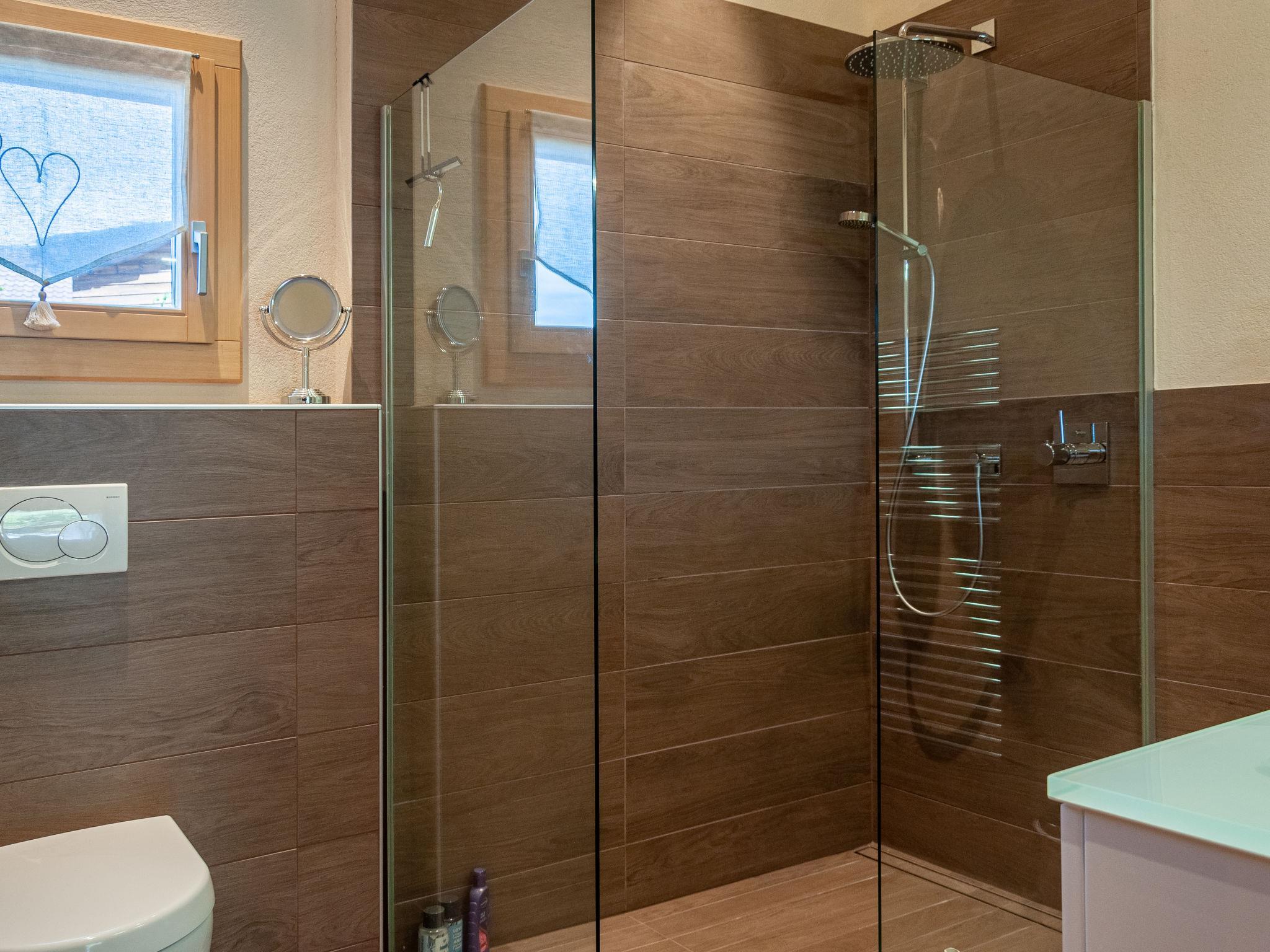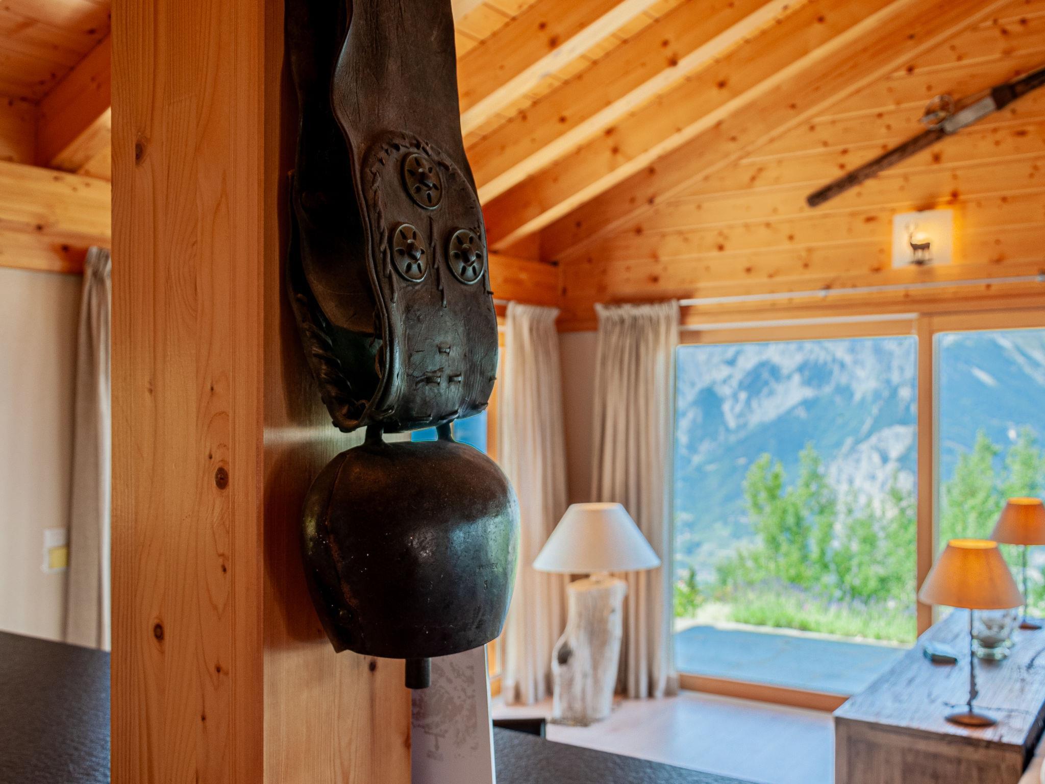 "Bonâme", 5-Zimmer-Chalet 188 m2. Geräumig, geschmackvoll und gemütlich eingerichtet: grosses Wohn-/Esszimmer mit offenem Kamin und Kabel-TV. Ausgang zur Terrasse, Richtung Norden und Richtung Westen. 1 Zimmer mit 1 Doppelbett (2 x 90 cm, Länge 210 cm), Dusche/WC und Doppelwaschbecken. Ausgang zur Terrasse. Grosse, offene Küche (Backofen, Geschirrspüler, 5 Induktionskochplatten, Toaster, Wasserkocher, Mikrowelle, Tiefkühler, elektrische Kaffeemaschine, Kapseln für die Kaffeemaschine (Nespresso) extra, Racletteofen, Fondue Set (Chinoise, Käse)) mit Bar. Unteres Geschoss: grosser Eingang. Sep. WC. Obergeschoss: 1 Zimmer mit 2 Betten (90 cm, Länge 210 cm), Dusche/WC. 2 Zimmer, jedes Zimmer mit 2 Betten (90 cm, Länge 210 cm). Bad/Dusche/WC. Grosse Terrasse, Nordlage und Westlage. Terrassenmöbel, Liegestühle (2). Sehr schöne Panoramasicht auf die Berge. Zur Verfügung: Waschmaschine, Wäschetrockner. Internet (Wireless LAN, gratis). Parkplatz, Garage (2 Autos), Höhe 220 cm, Breite 520 cm. Bitte beachten: für Kleinkinder nicht geeignet nicht geeignet für Kinder unter 6 Jahren. Nichtraucher-Unterkunft.