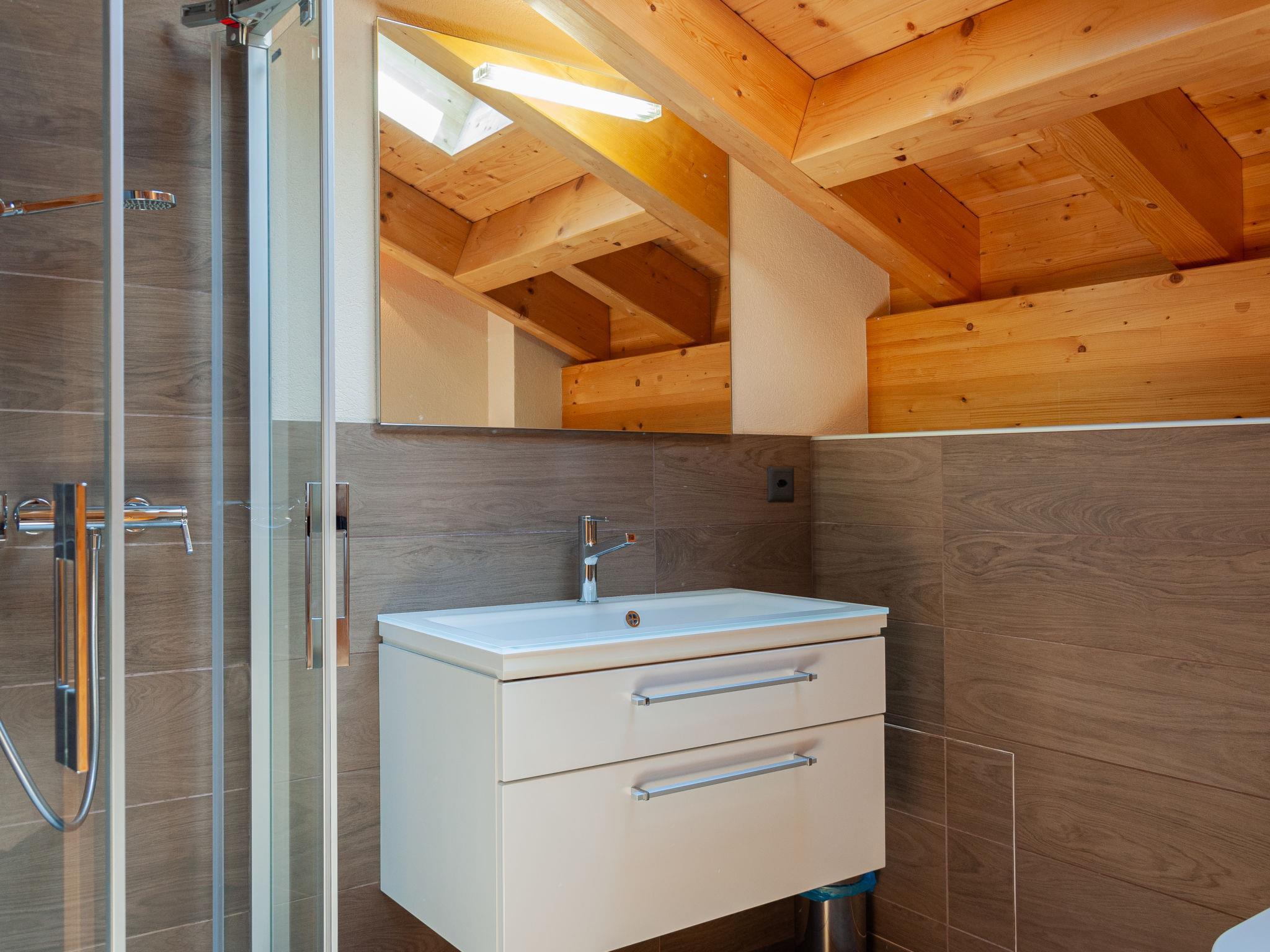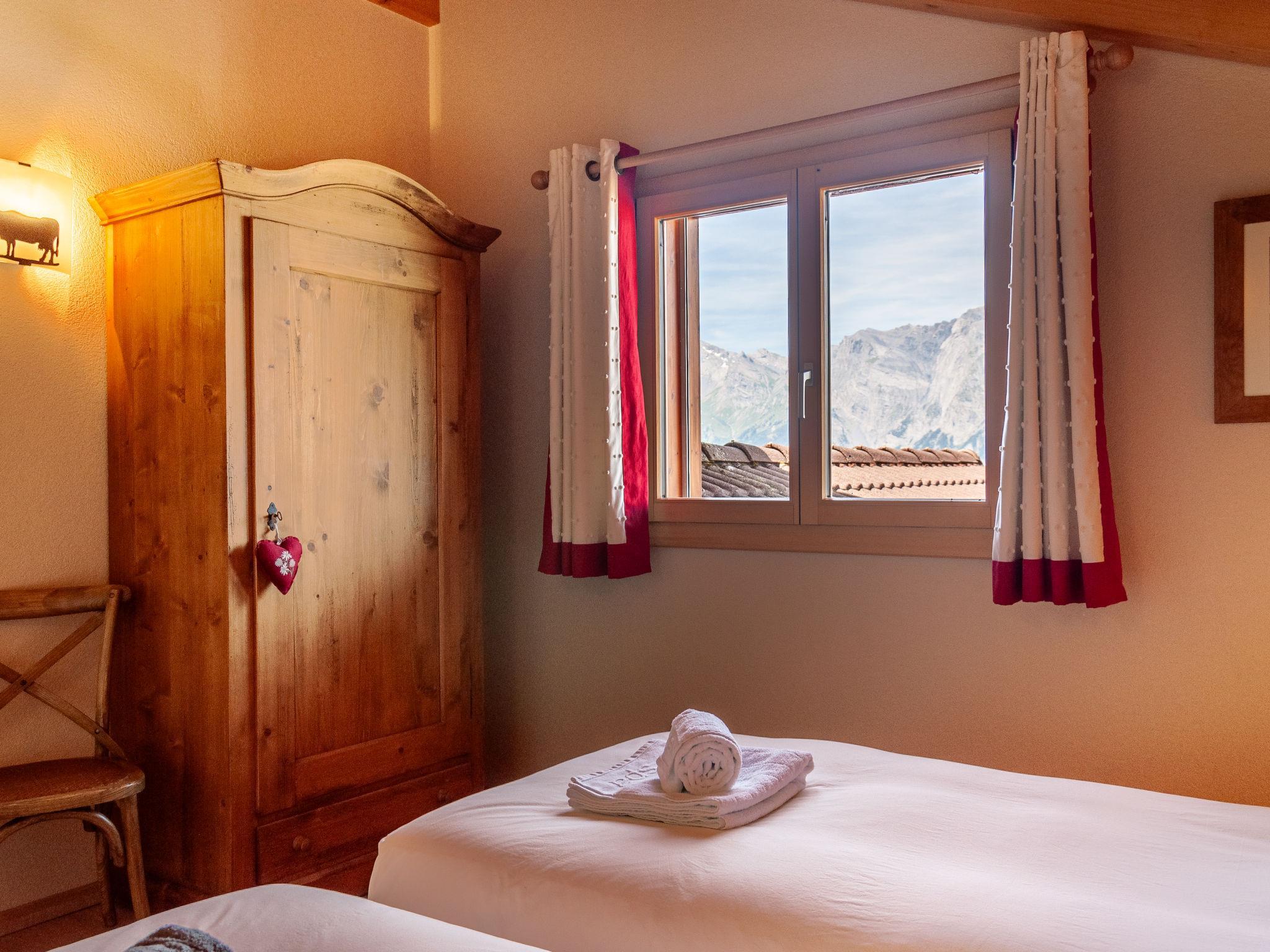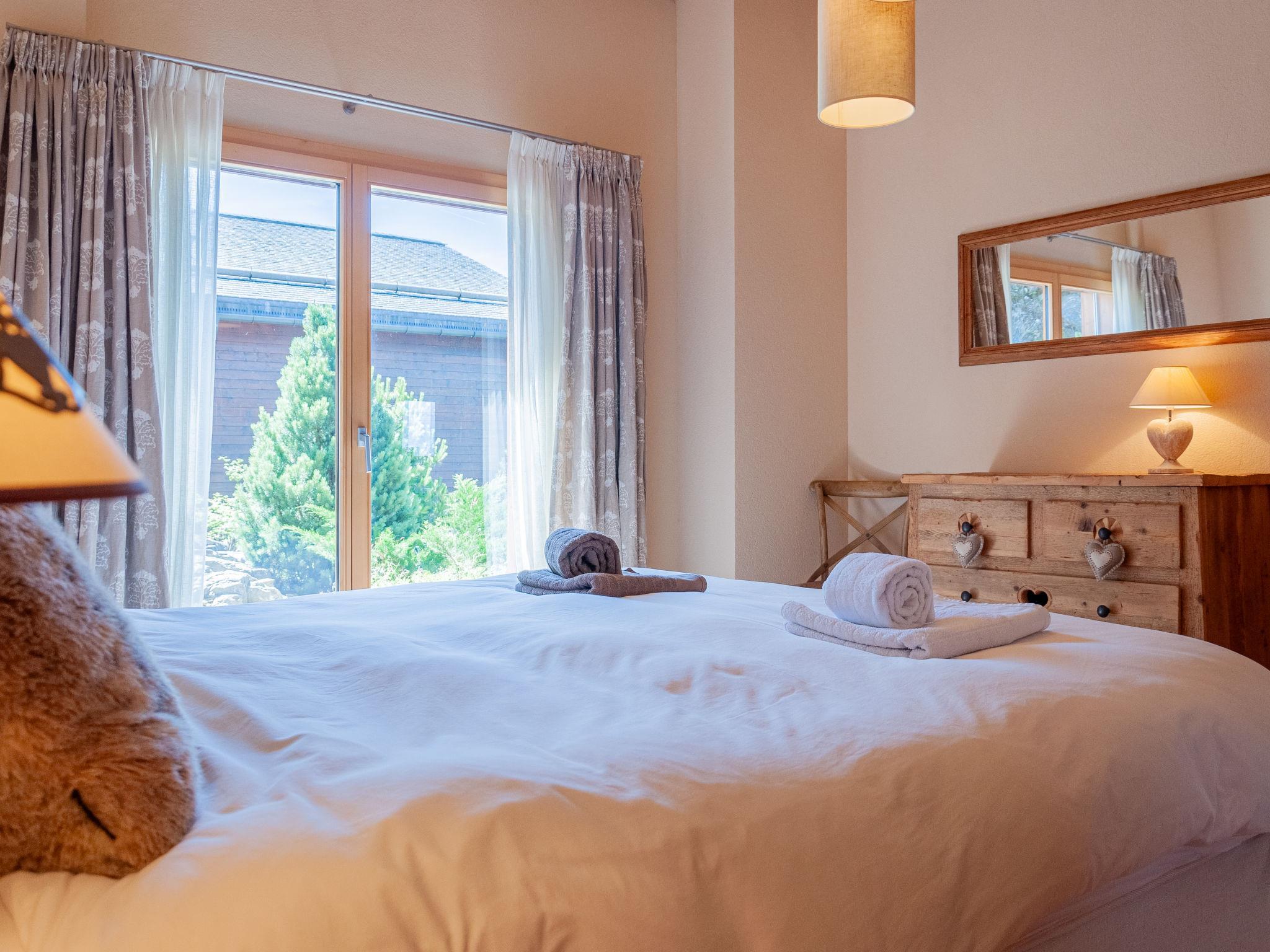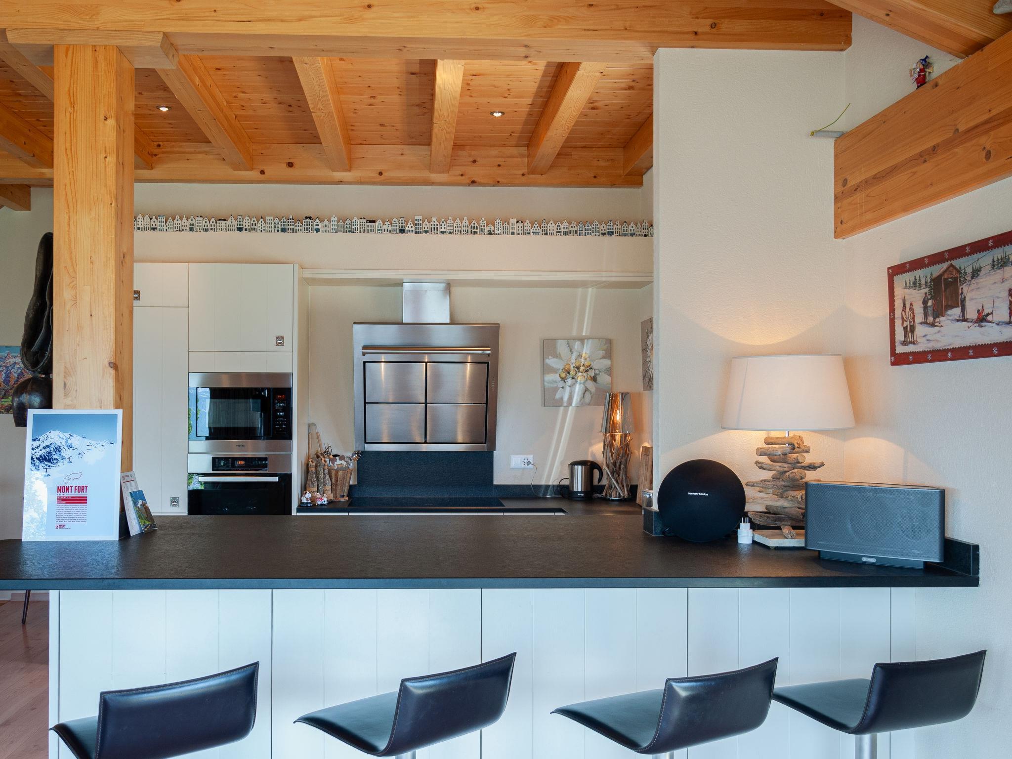 "Bonâme", 5-Zimmer-Chalet 188 m2. Geräumig, geschmackvoll und gemütlich eingerichtet: grosses Wohn-/Esszimmer mit offenem Kamin und Kabel-TV. Ausgang zur Terrasse, Richtung Norden und Richtung Westen. 1 Zimmer mit 1 Doppelbett (2 x 90 cm, Länge 210 cm), Dusche/WC und Doppelwaschbecken. Ausgang zur Terrasse. Grosse, offene Küche (Backofen, Geschirrspüler, 5 Induktionskochplatten, Toaster, Wasserkocher, Mikrowelle, Tiefkühler, elektrische Kaffeemaschine, Kapseln für die Kaffeemaschine (Nespresso) extra, Racletteofen, Fondue Set (Chinoise, Käse)) mit Bar. Unteres Geschoss: grosser Eingang. Sep. WC. Obergeschoss: 1 Zimmer mit 2 Betten (90 cm, Länge 210 cm), Dusche/WC. 2 Zimmer, jedes Zimmer mit 2 Betten (90 cm, Länge 210 cm). Bad/Dusche/WC. Grosse Terrasse, Nordlage und Westlage. Terrassenmöbel, Liegestühle (2). Sehr schöne Panoramasicht auf die Berge. Zur Verfügung: Waschmaschine, Wäschetrockner. Internet (Wireless LAN, gratis). Parkplatz, Garage (2 Autos), Höhe 220 cm, Breite 520 cm. Bitte beachten: für Kleinkinder nicht geeignet nicht geeignet für Kinder unter 6 Jahren. Nichtraucher-Unterkunft.
