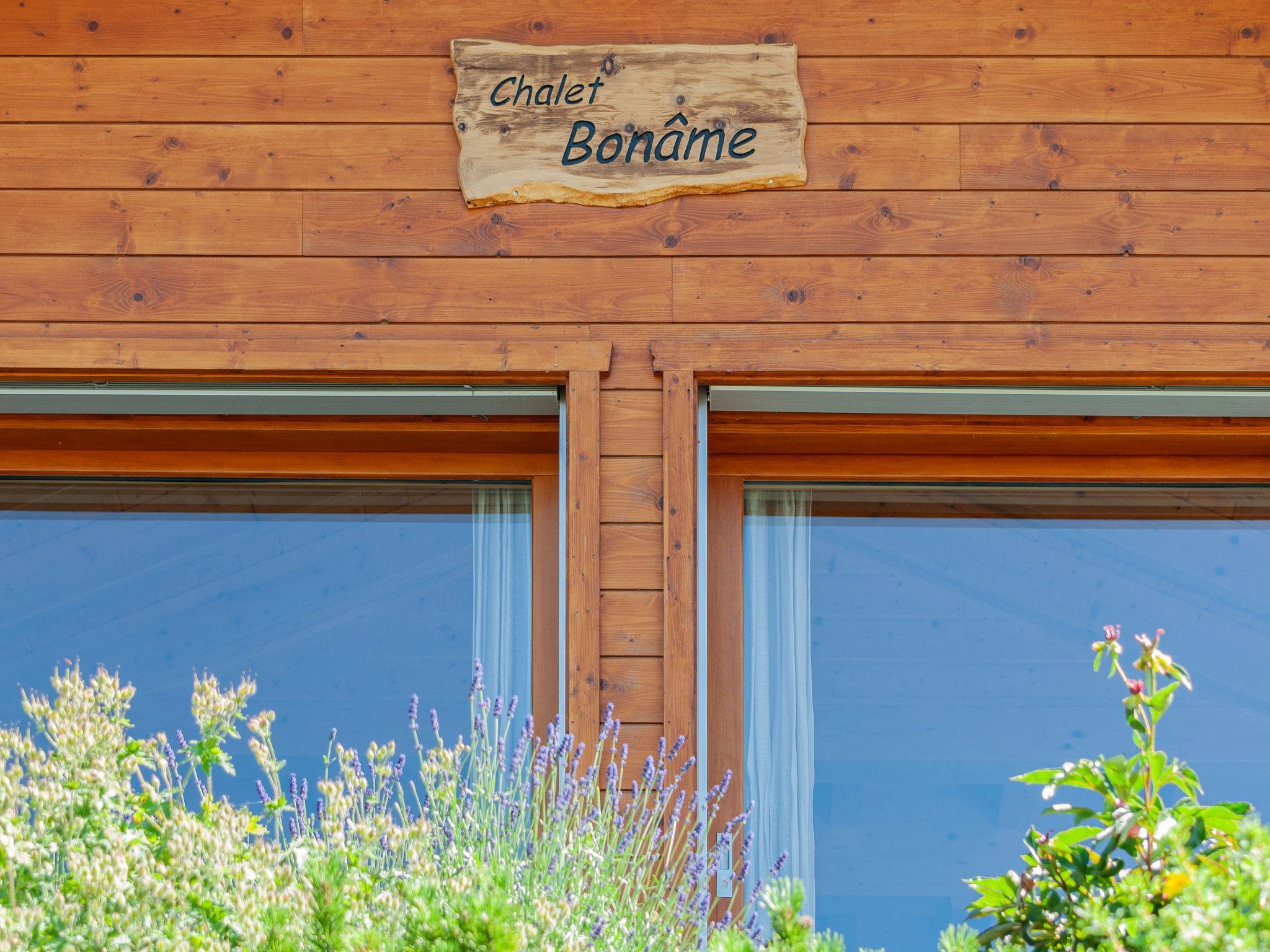 Sehr schönes Chalet "Bonâme", auf 3 Stockwerken, Baujahr 2010. Am Ortsrand, ruhige Lage. Zur Alleinbenutzung: wunderschöner Garten zum Entspannen. Im Hause: Skischuhtrockner. Im Winter bitte Schneeketten mitbringen, im Winter 4x4 empfohlen. Parkplatz, Einzelgarage. Einkaufsgeschäft 1.3 km, Supermarkt 1.6 km, Restaurant 1.3 km, Bushaltestelle "Haute-Nendaz, télécabine" 1.3 km, Bahnstation "Sion" 17.7 km. Golfplatz (18 Loch) 18 km, Skibushaltestelle 300 m, Kinderspielplatz 1.6 km. Bekannte Skigebiete sind gut erreichbar: Nendaz 4 vallées Tracouet 1.3 km. Wandergebiete: Bisse Vieux 400 m. Der Besitzer akzeptiert keine Jugendgruppen.