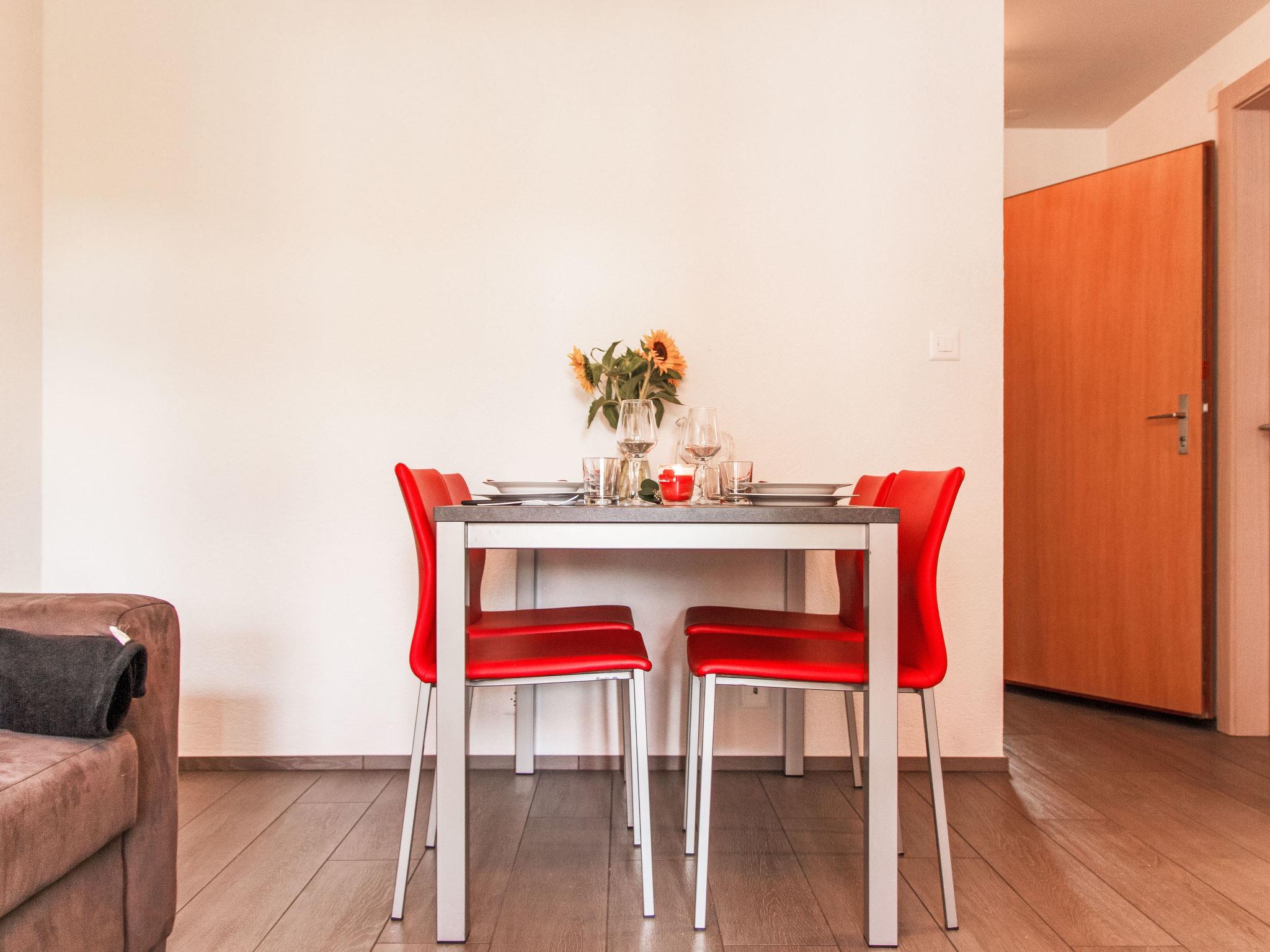 "Les Genets 124D", 2-Zimmer-Wohnung 45 m2, im erhöhten Erdgeschoss, Westlage. Objekt geeignet für 2 Erwachsene + 2 Kinder. Teilweise renoviert, zweckmässig und komfortabel eingerichtet: Eingang. Wohn-/Esszimmer mit Kabel-TV. Ausgang zur Terrasse. 1 Zimmer mit 1 x 2 Etagenbetten (90 cm, Länge 190 cm), 1 franz. Bett (2 x 90 cm, Länge 190 cm). Offene Küche (Backofen, Geschirrspüler, 4 Glaskeramikplatten, Toaster, Wasserkocher, elektrische Kaffeemaschine, Kapseln für die Kaffeemaschine (Nespresso) extra, Racletteofen, Fondue Set (Käse)). Dusche/WC. Terrasse, Westlage. Terrassenmöbel, Gartengrill. Eingeschränkte Sicht auf die Berge. Zur Verfügung: Internet (WLAN, gratis). Garage (1 Auto). Bitte beachten: Nichtraucher-Unterkunft.