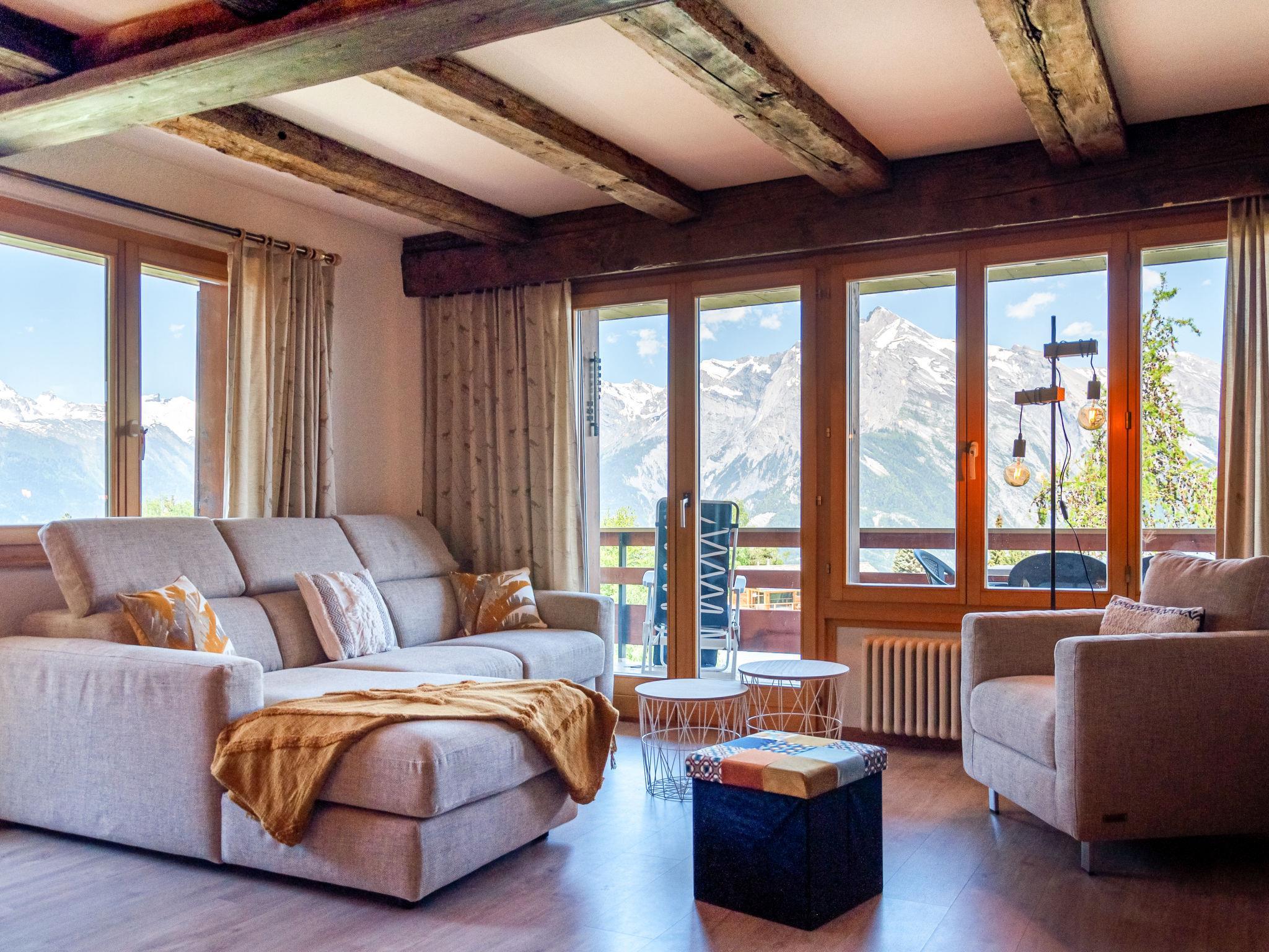 "Quille du Diable 44", 3-Zimmer-Wohnung 80 m2 im 3. Stock, Nordwestlage. Geräumig, teilweise renoviert im Jahre 2023: grosses Wohn-/Esszimmer mit offenem Kamin (nur Deko), Kabel-TV. Ausgang zum Balkon, Richtung Norden und Richtung Westen. 1 Zimmer mit 1 franz. Bett (160 cm, Länge 200 cm). Ausgang zum Balkon, Richtung Süden. 1 Zimmer mit 2 Betten (90 cm, Länge 190 cm). Ausgang zum Balkon, Richtung Süden. Küche (3 Kochplatten, Backofen, Geschirrspüler, Toaster, elektrische Kaffeemaschine, Kapseln für die Kaffeemaschine (Nespresso) extra, Racletteofen, Fondue Set (Chinoise, Käse)). Ausgang zum Balkon. Bad/WC, Dusche/WC. Terrassenmöbel, Gartengrill (mobil). Sehr schöne Panoramasicht auf die Berge. Zur Verfügung: Haartrockner. Internet (WLAN, gratis). Bitte beachten: Nichtraucher-Unterkunft. Maximal 1 Haustier/Hund erlaubt.