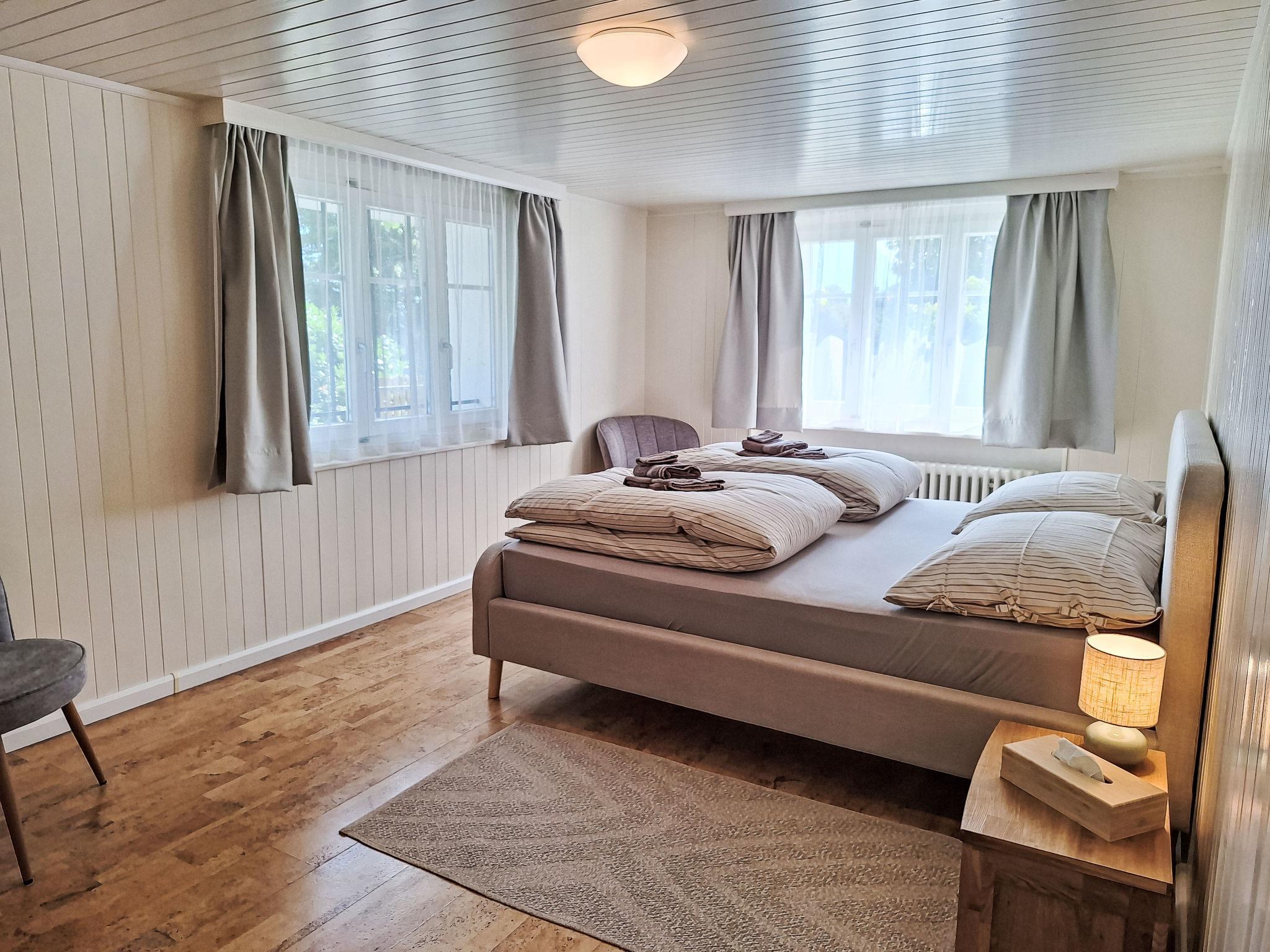 Sehr schönes, freistehendes Chalet "Haus am See", auf 3 Stockwerken. Sonnige Lage, 10 m vom See. Zur Alleinbenutzung: naturbelassenes Grundstück, terrassierter Garten (nicht eingezäunt), Liegewiese. Badeplatz. Im Hause: Zentralheizung, Waschmaschine, Wäschetrockner, Trockenraum. Parkplatz auf dem Grundstück. Einkaufsgeschäft 8.5 km, Lebensmittelgeschäft 4 km, Supermarkt 8 km, Restaurant 250 m, Bushaltestelle "Niederried Dorf" 350 m, Bahnstation "Niederried" 400 m. Golfplatz (18 Loch) 15 km. Nahe gelegene Sehenswürdigkeiten: Jungfraujoch Top of Europe, Schilthorn Piz Gloria, Freilichtmuseum Ballenberg, Interlaken. Bekannte Skigebiete sind gut erreichbar: Grindelwald Kleine Scheidegg 26 km, Meiringen Hasliberg 27 km. Bekannte Seen in der Umgebung sind gut erreichbar: Brienzersee, Thunersee. Wandergebiete: Jungfrau Region. Bitte beachten: Eisenbahnlinie in der Nähe.