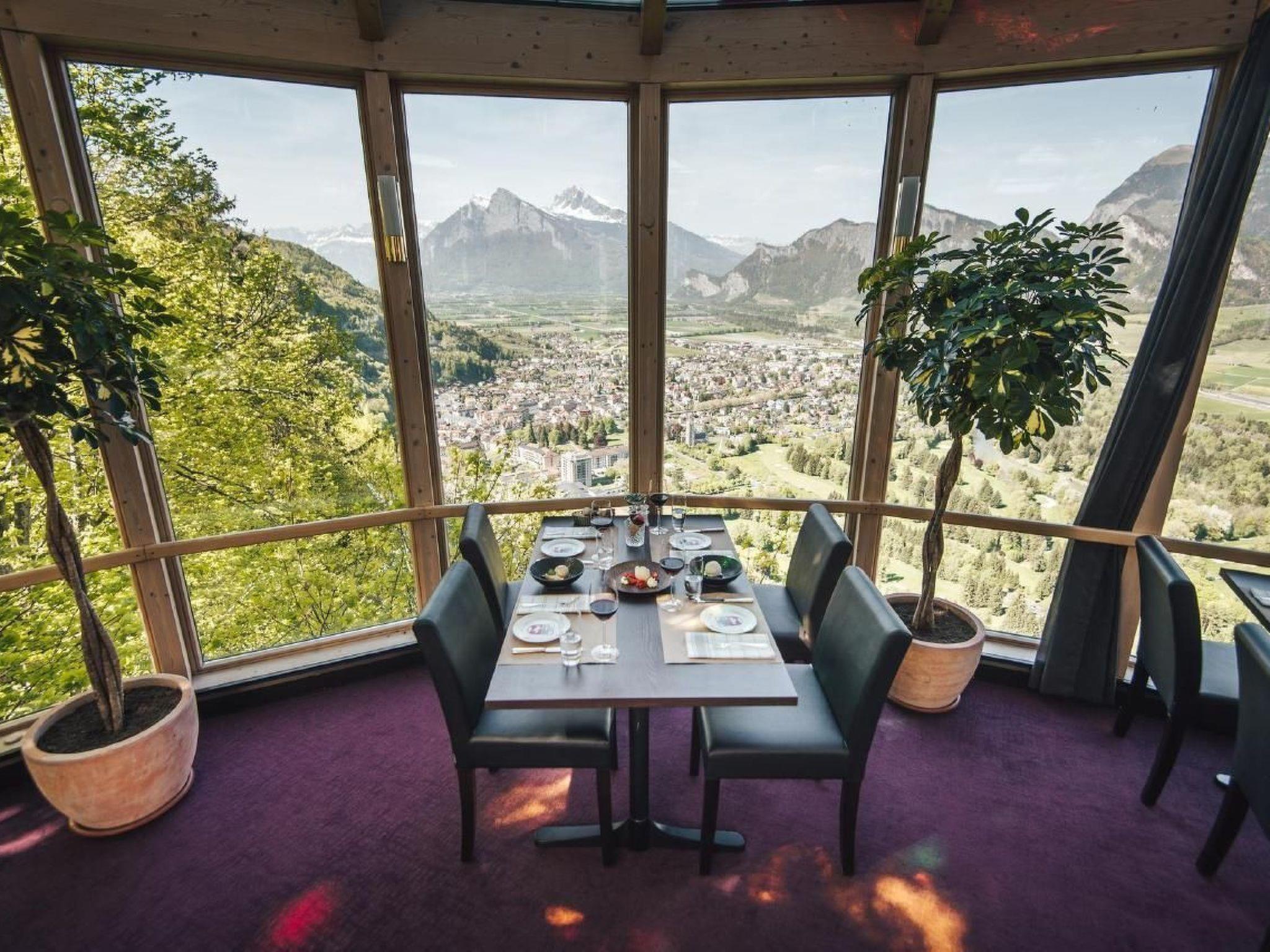 Im EG können Sie die Infrastruktur des geschlossenen Restaurants sowie einen 160 m2 grossen Wintergarten mit einer traumhaften Aussicht über Bad Ragaz, die Churfirsten und die bündner Herrschaft alleine benutzen.
