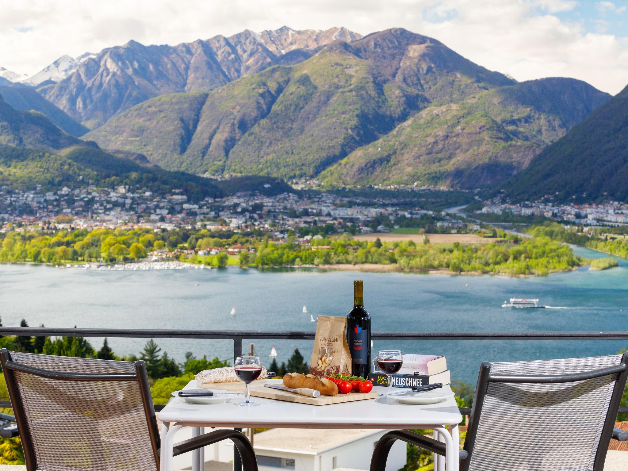 "Residenza Miralago Apt. C29", 1-Zimmer-Wohnung 64 m2 im 2. Stock. Geräumig und hell, teilweise renoviert im Jahre 2021, komfortabel und modern eingerichtet: offenes grosses Wohn-/Esszimmer mit 1 Doppelbett (180 cm, Länge 200 cm), Essecke und Kabel-TV (Flachbildschirm), Radio. Ausgang zum Balkon. Offene Küche im Eingang (Backofen, Geschirrspüler, 4 Glaskeramikplatten, elektrische Kaffeemaschine, Kapseln für die Kaffeemaschine (Nespresso) extra). Dusche/WC. Heizung. Balkon. Balkonmöbel. Herrliche Panoramasicht auf den See, die Berge und die Landschaft. Bitte beachten: Nichtraucher-Unterkunft. NL-00003597