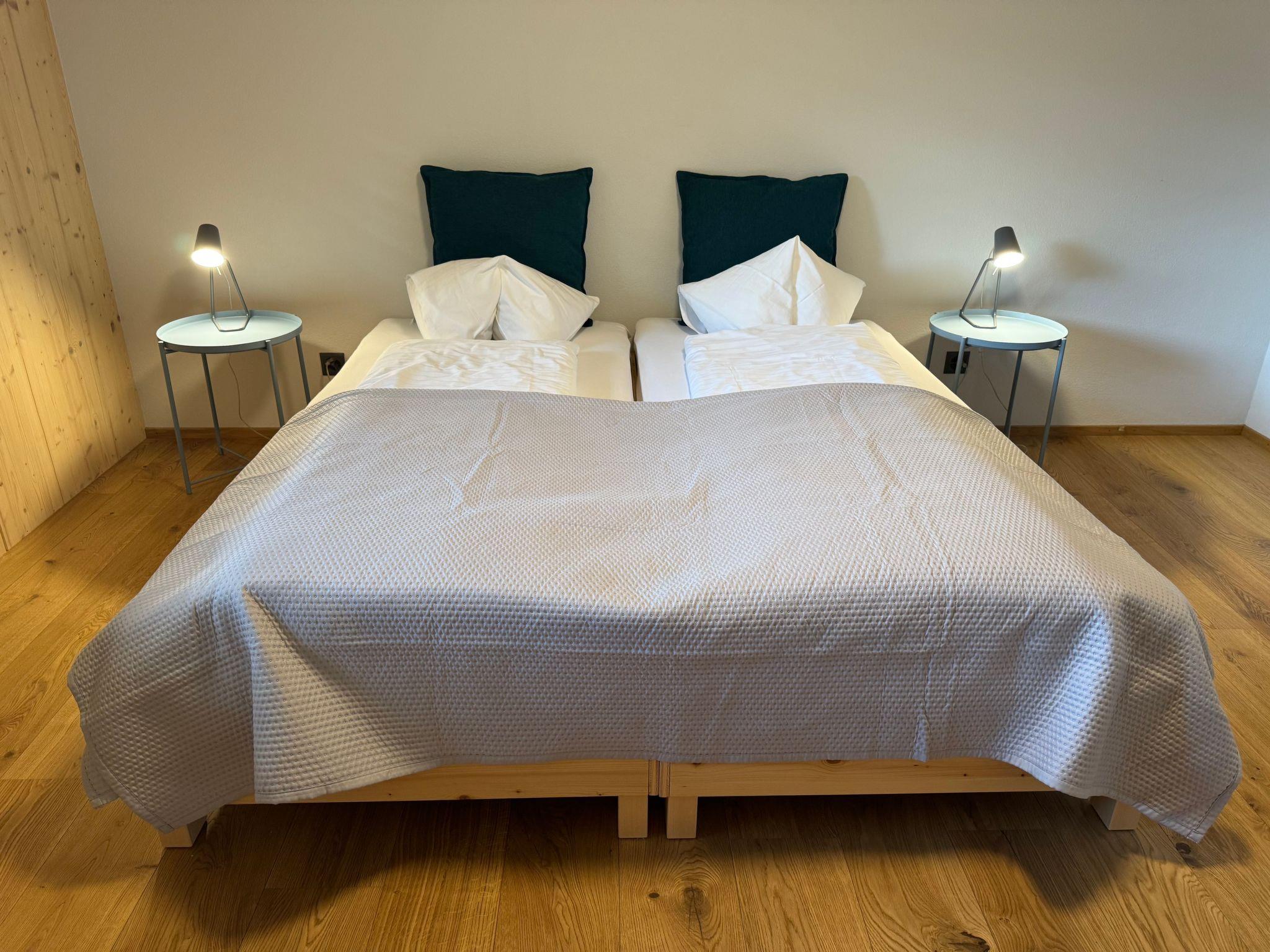 Schlafzimmer 2: 2 Einzelbetten 90x200 (zusammenstellbar), ebenfalls Platz für Babybett oder Matratze.