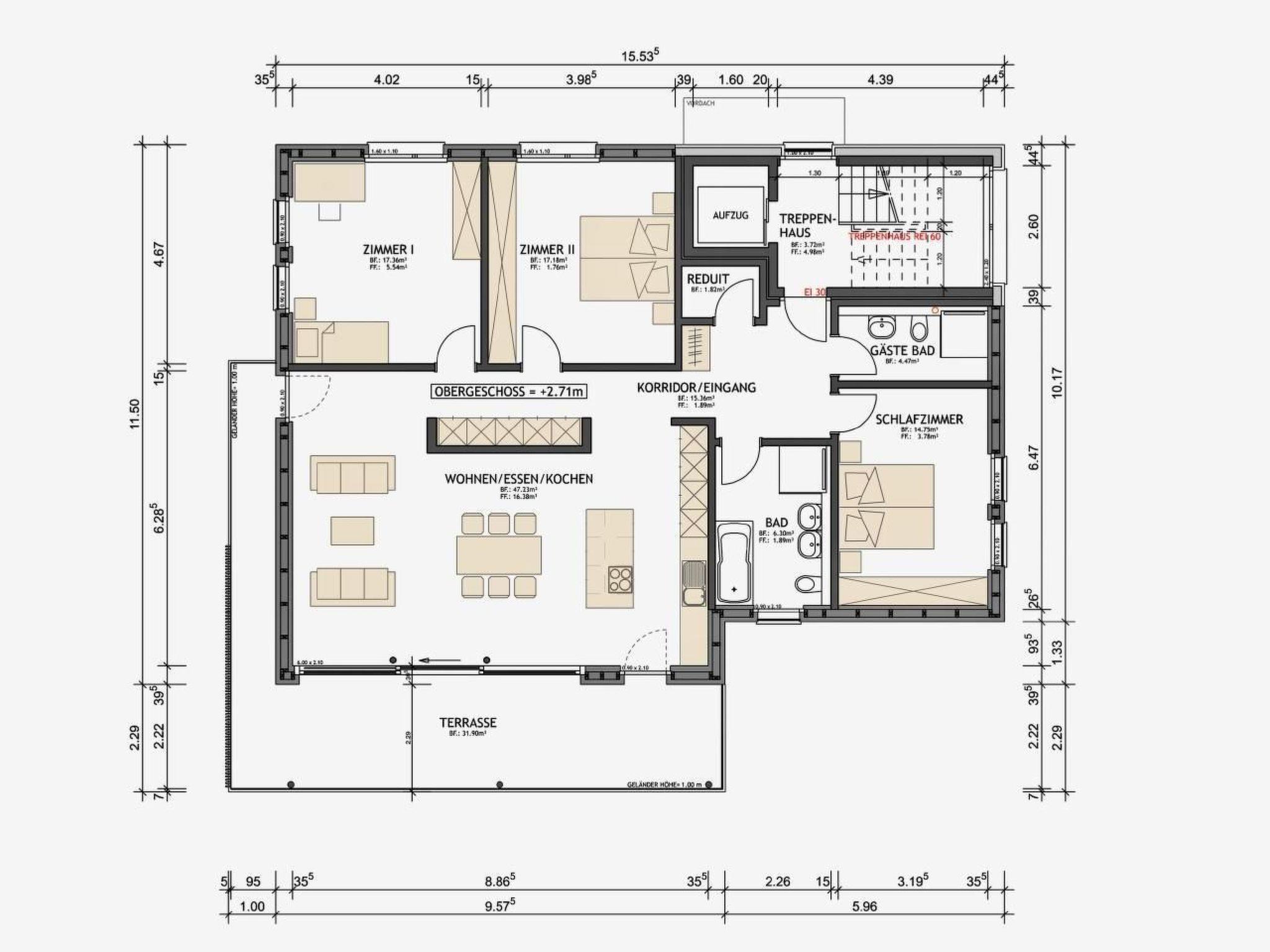 - Gesamtanzahl d. Stockwerke im Gebäude über EG: 2