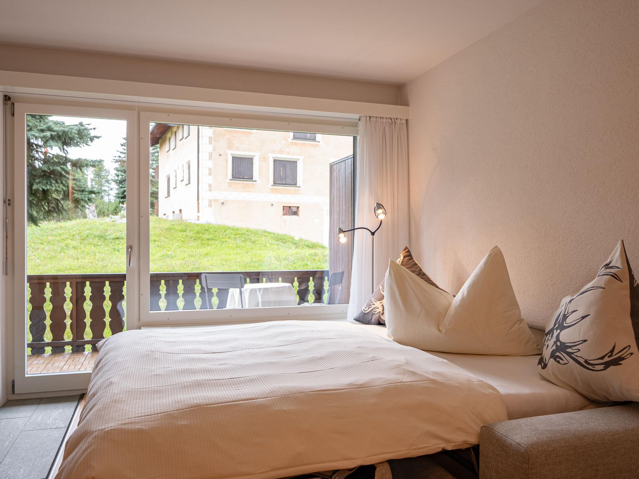 Pontresina 7 km von St. Moritz: Freistehendes Mehrfamilienhaus "Chesa Palüdin - Pontresina", auf 3 Stockwerken, umgeben von Wiesen. Am Ortsrand, 2 km vom Zentrum von Pontresina, im Bezirk Muragl, sonnige Lage in einem Wohnquartier. Zur Mitbenutzung: Garten (nicht eingezäunt). Im Hause: Einstellraum für Fahrräder, Skiraum, Waschmaschine, Wäschetrockner (zur Mitbenutzung, extra). Im Winter 4x4 empfohlen. Gemeinschaftsgarage. Einkaufsgeschäft 1 km, Supermarkt 1.8 km, Restaurant 1 km, Bäckerei 1 km, Café 1.8 km, Bushaltestelle 500 m. Surfschule 15 km, Tennis 1.1 km, Tennishalle 7.4 km, Minigolf 7.2 km, Wanderwege ab Haus 50 m, Radweg 500 m, Luftseilbahn 4.4 km, Skilift 2 km, Skiverleih 2.1 km, Skischule 1.8 km, Kinderskischule 1.8 km, Schlittelbahn 1.3 km, Langlaufloipe 500 m, Eisfeld 1 km, Kinderspielplatz 1 km. Nahe gelegene Sehenswürdigkeiten: Museum Alpin 1.9 km, Kirche St. Maria 2.6 km, Alp-Schaukäserei Morteratsch (Sommer) 8 km. Bekannte Skigebiete sind gut erreichbar: Corviglia Piz Nair 4.4 km, Diavolezza - Lagalb 14 km, Corvatsch - Furtschellas 13 km. Bekannte Seen in der Umgebung sind gut erreichbar: St. Moritzer See 6 km, Silvaplana See 11.6 km, Silser See 15.5 km. Wandergebiete: Stazerwald&Stazersee, Muottas Muragl, Val Roseg & Val Morteratsch. Bitte beachten: kein Fahrstuhl vorhanden. Weitere Unterkünfte sind buchbar. Die Nachbarschaft ist sehr lärmempfindlich. Ruhe und gutes Benehmen wird erwartet.