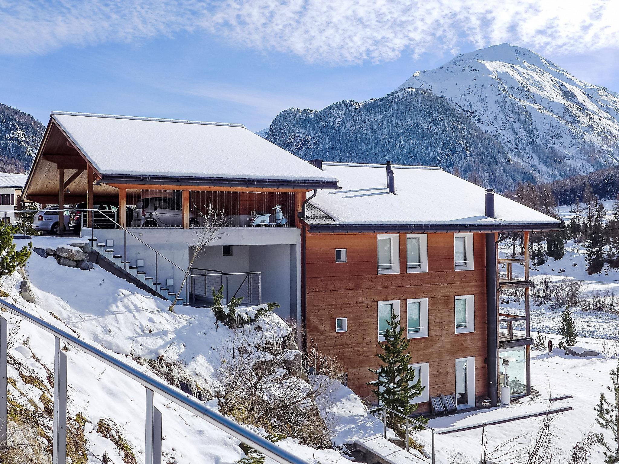 Chesa Lej 7 km von St. Moritz: Sehr modernes Holzhaus "Chesa Lej", Baujahr 2002. Im Ortsteil Muragls, ruhige, sonnige Lage am Hang, 6 km vom See, 20 m vom Fluss. Im Hause: Zentralheizung, Waschmaschine, Wäschetrockner. Zufahrt bis zum Haus. Parkplatz Nr. M2. Einkaufsgeschäft 1 km, Supermarkt 1.8 km, Restaurant 1 km, Bäckerei 1 km, Café 1.8 km, Fahrradverleih 2.1 km, Bushaltestelle "Pontresina, Godin" 650 m, Bahnstation 2.5 km, Hallenbad 2.1 km, See St. Moritzer See 6 km. Golfplatz (18 Loch) 4.3 km, Surfschule 12 km, Tennis 1.1 km, Tennishalle 7.4 km, Minigolf 7.2 km, Reitstall 2.7 km, Wanderwege ab Haus 500 m, Radweg 1 km, Luftseilbahn 4.4 km, Skilift 2 km, Skiverleih 2.1 km, Skischule 1.8 km, Kinderskischule 1.8 km, Schlittelbahn 1.3 km, Langlaufloipe 500 m, Eisfeld 1.1 km, Kinderspielplatz 1.1 km. Nahe gelegene Sehenswürdigkeiten: Museum Alpin 1.9 km, Kirche St. Maria 2.6 km, Alp-Schaukäserei Morteratsch (Sommer) 8 km, Segantini Museum in St. Moritz 7.3 km, Bernina Express UNESCO Welterbe. Bekannte Skigebiete sind gut erreichbar: Corviglia Piz Nair 4.4 km, Diavolezza - Lagalb 14 km, Corvatsch - Furtschellas 13 km. Bekannte Seen in der Umgebung sind gut erreichbar: St. Moritzer See 6 km, Silvaplaner See 11.6 km, Silser See 15.5 km. Wandergebiete: Stazerwald & Stazersee, Muottas Muragl, Val Roseg & Val Morteratsch. Bitte beachten: kein Fahrstuhl vorhanden. Be- und Entladen am Ferienhaus möglich.