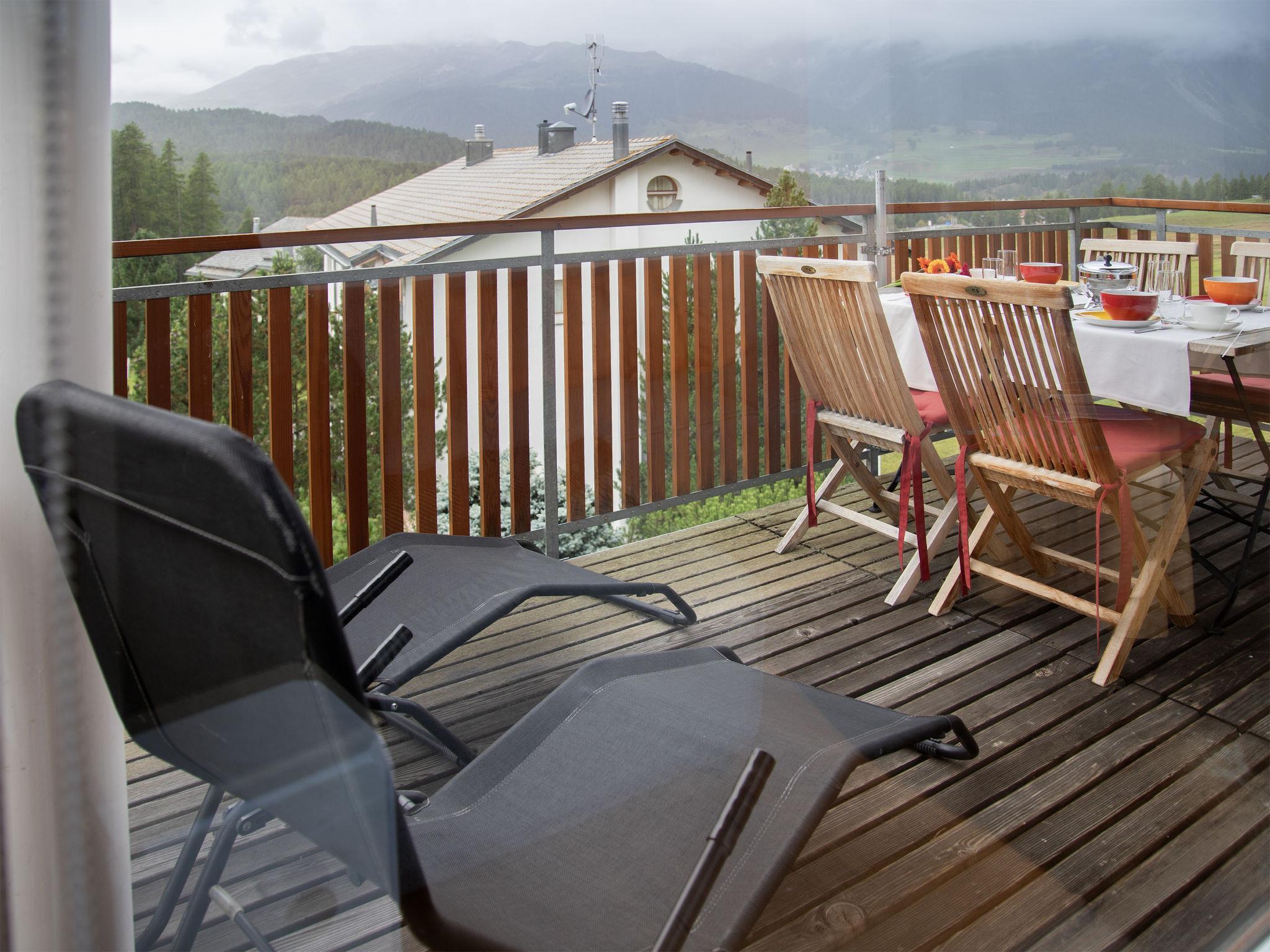 "Chesa Vadret 12", 3-Zimmer-Wohnung 110 m2 auf 2 Stockwerken, im Dachgeschoss. Geräumig und hell, teilweise abgeschrägt, komfortabel und modern eingerichtet: offenes Wohn-/Esszimmer. Ausgang Richtung Westen. 1 Zimmer mit 1 franz. Bett (1 x 160 cm, Länge 200 cm), Bad/Bidet/WC. Küche (Backofen, Geschirrspüler, 4 Glaskeramikplatten, Toaster, Wasserkocher, elektrische Kaffeemaschine, Kapseln für die Kaffeemaschine (Nespresso) extra, Fondue Set (Käse)). Dusche/WC. Heizung. Obergeschoss: offene grosse Galerie mit 1 franz. Bett (2 x 80 cm, Länge 200 cm). Offenes Durchgangszimmer mit TV. Grosser Balkon 10 m2. Balkonmöbel. Herrliche Panoramasicht auf die Berge und das Tal. Zur Verfügung: Bügeleisen, Haartrockner. Internet (WLAN, gratis). Garage Nr. Vadret 12, Höhe 225 cm, Breite 250 cm. Bitte beachten: nicht geeignet für Kinder unter 6 Jahren. Nichtraucher-Unterkunft. Anstelle eines abgeschlossenen Schlafzimmers befinden sich manche Schlafplätze in einem offenen Bereich (Galerie, Nische etc.).