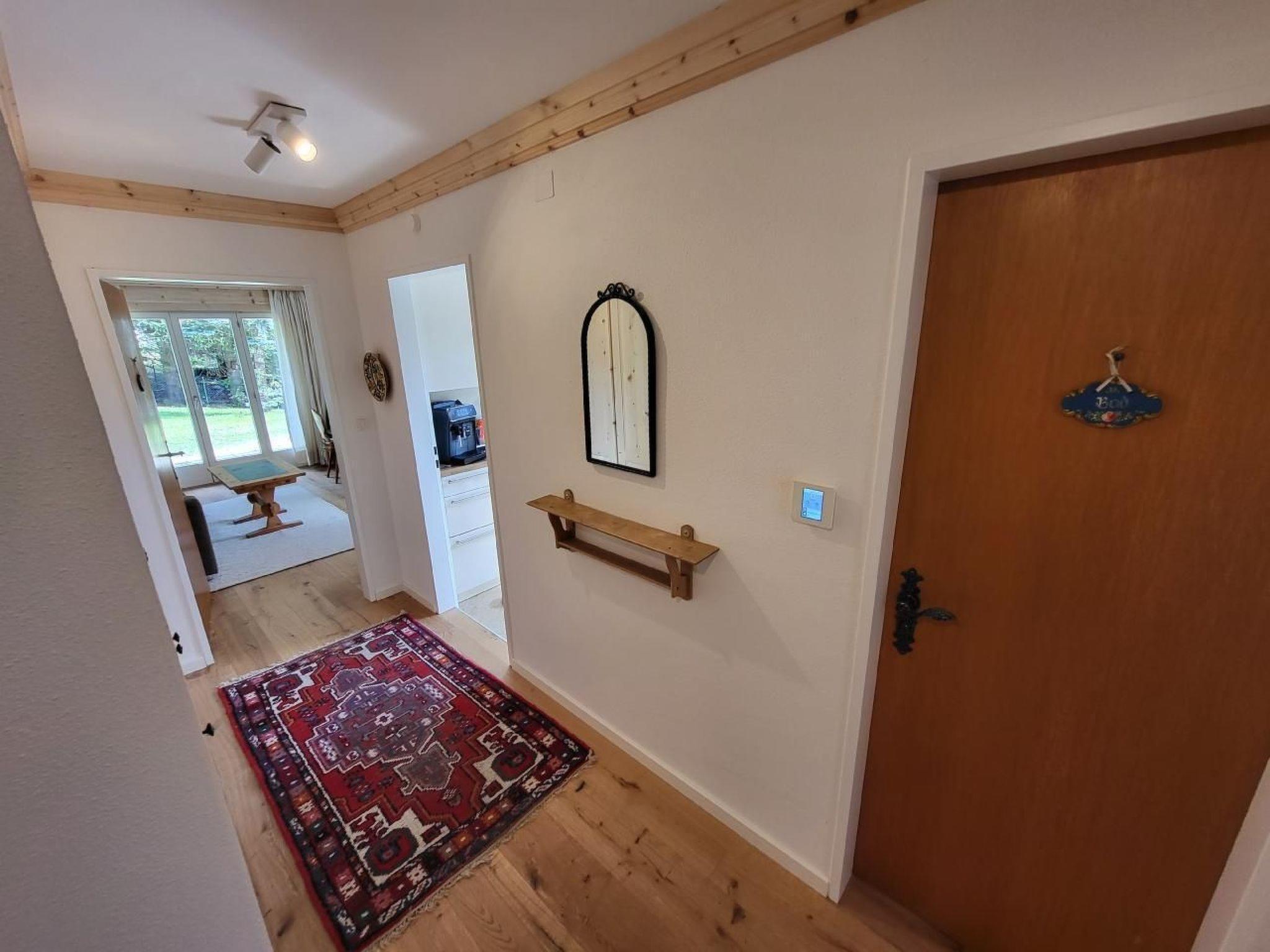Besonders ruhige und sonnig gelegene 3-Zimmerwohnung (Hochparterre, 65qm) mit herrlichen Blick auf die gesamte Bergwelt rund um St. Moritz. Die Wohnung ist 2022 liebevoll renoviert worden. Grosse Südost-Sonnenterrasse vor dem Wohnzimmer - Garten kann mitbenutzt werden. Zusätzlich Südwestbalkon mit der Abendsonne. Gartenmöbel- Liegen, Stühle und Gartentisch sind selbstverständlich vorhanden. 2022 wurde die Wohnung energetisch saniert und es wurde Internet in allen Zimmern per WLAN sowie eine Lüftungsanlage mit Wärmerückgewinnung eingebaut. Die Wohnung hat zwei separate Schlafzimmer. Ein großes Doppelbett, ein weiteres Zimmer mit zwei "rot-kariert gestalteten", kuscheligen Kajütenbetten (auch für zwei Erwachsene geeignet). Im Wohnzimmer gibt es eine ausziehbare Doppelcouch für "Besucher". (Kinderbett auf Anfrage). Separate, bestens ausgestattete moderne Küche (der Blick aus dem Fenster wird Sie beim Kochen begeistern!) mit Geschirrspüler, Kühlschrank, Tiefkühler, Espresso-Vollautomat, 4 Plattenherd, Backofen, Mikrowelle. Das 2022 komplett sanierte Bad mit bodenebener Dusche hat Lüftungsanlage und ein Fenster, Waschtisch, hygenisches Hänge-WC, und die bodenebene Dusche zum leichten Einstieg. In der Diele große Kleiderablage, Spiegel und Einbauschrank. Waschmaschine und Skiraum befinden sich im Keller. Eine abschliessbare Garage unter der Terrasse und ein zusätzlicher Autoabstellpatz vor dem Haus stehen zu Ihrer Verfügung. Die Bushaltestelle mit Zielen in alle Ski- und Wandergebiete befindet sich in nur 50m Entfernung. Brave, saubere, kleine bis mittelgroße Hunde dürfen auf Anfrage Ihre Familie in diese Wohnung in die Ferien begleiten. Der pflegeleichte Parkett ist hygenisch und warm. Eine direkt daneben liegende, abgeschlossene Studiowohnung (mit einem weiteren Bad) kann vom gleichen Eigentümer für zwei zusätzliche Personen zeitgleich zu Sonderkonditionen angemietet werden.