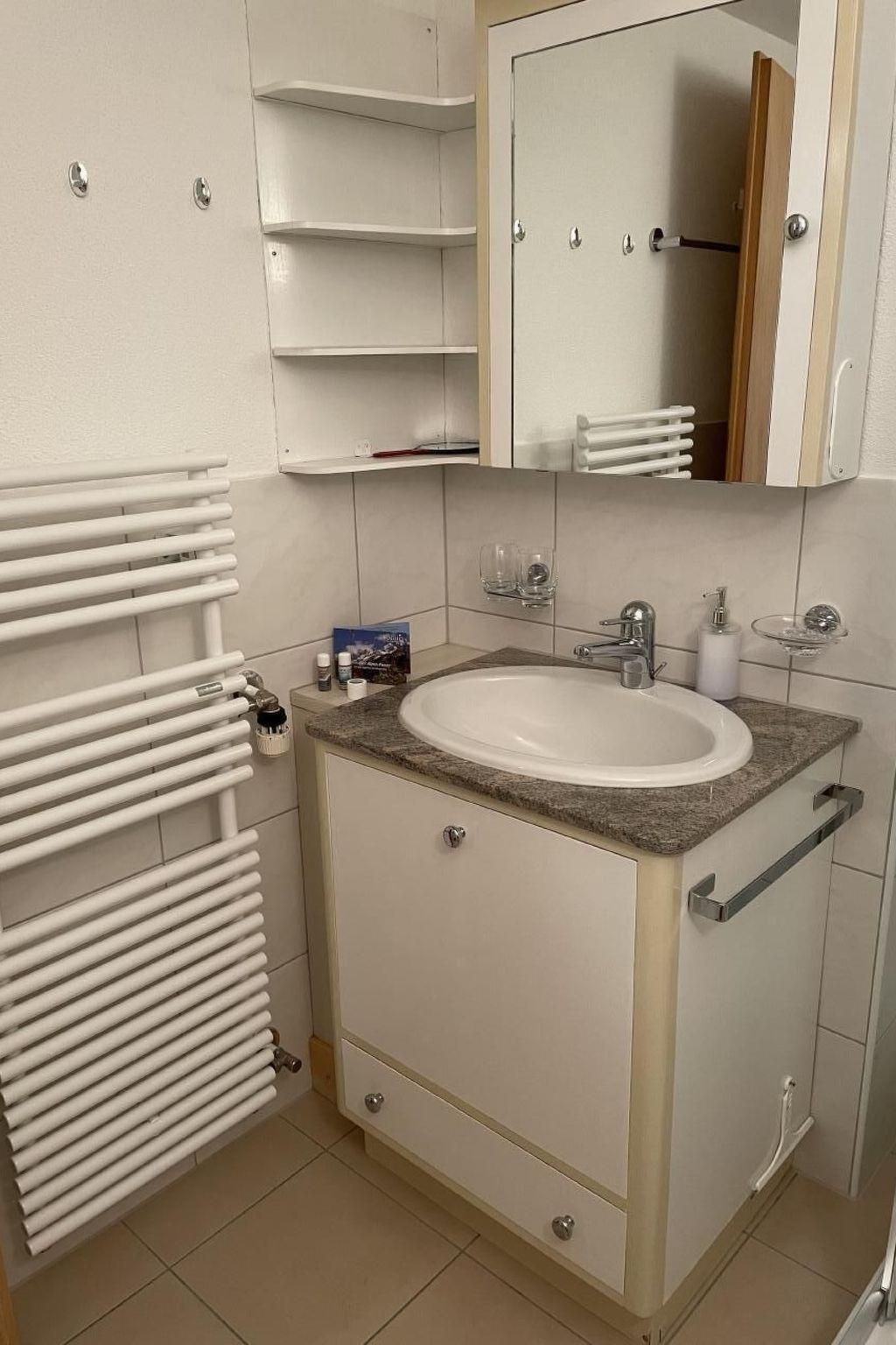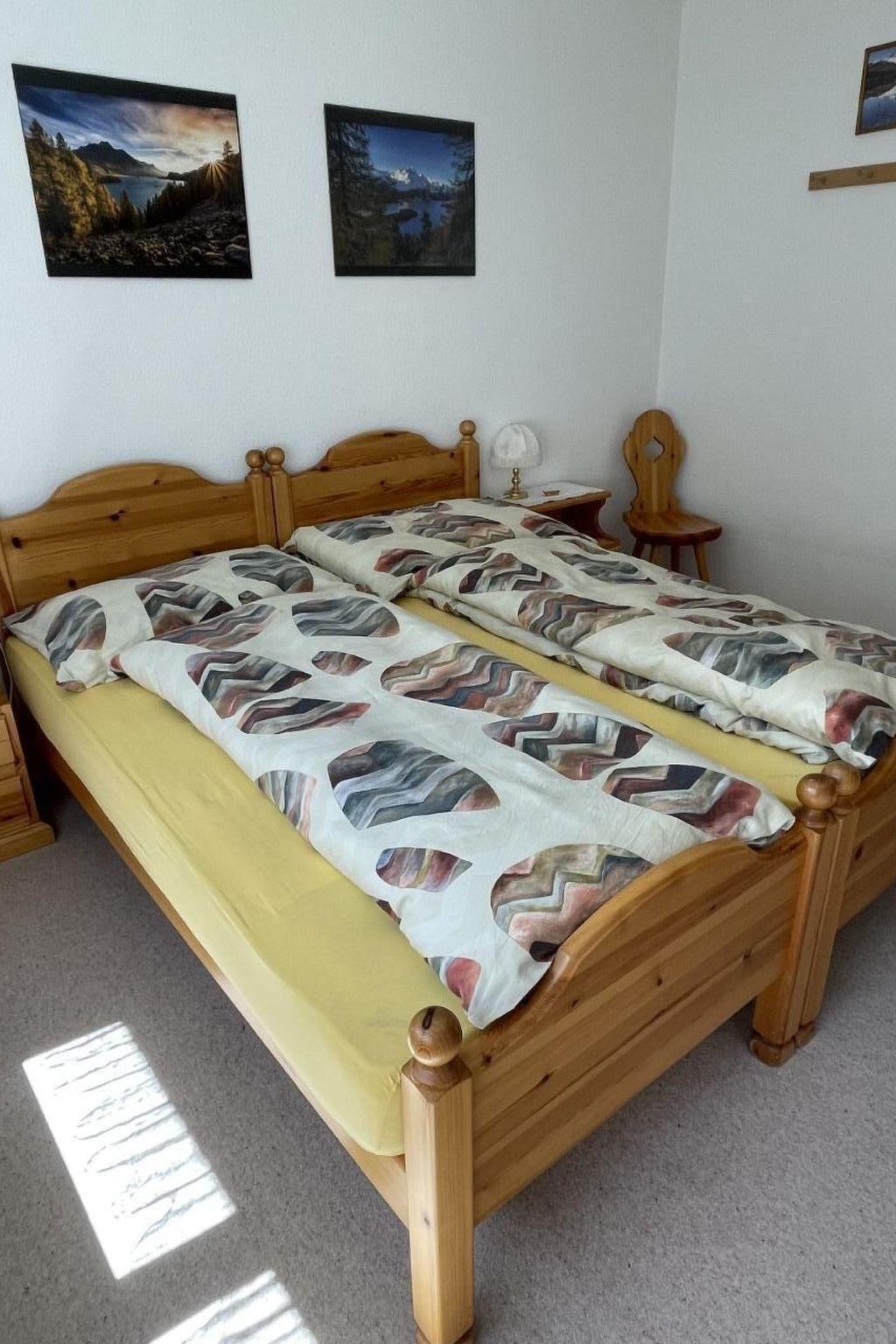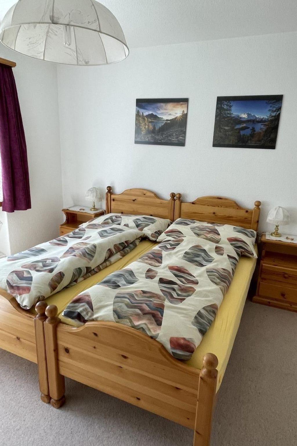 Die Ausstattung der einzelnen Räumlichkeiten sind: Küche: Herd mit 3 Kochplatten, Kühlschrank mit kleinem Gefrierfach, Mikrowelle, Toaster, Wasserkocher, Kaffeemaschine Filter oder Kapseln Nespresso, Racletteofen, Fondue-Set (Käse oder Chinoise) Wohnzimmer: Sofa, TV, W-LAN, Radio, Runder Tisch mit Eckbank. Schlafzimmer: Zwei Einzelbetten, welche als Doppelbett oder als zwei Einzelbetten genutzt werden können, zwei Nachttische mit Nachtischlampen, Kleiderschrank, Kommode und ein grosser Spiegel. Badezimmer: Toilette, Waschbecken mit Spiegel, Dusche, Haartrockner. Eingangsbereich: Garderobe, Putzschrank (Putzmittel, Staubsauger, Bügeleisen, Bügelbrett). Auf Wunsch Zusatzbett im Wohnzimmer möglich. Gemeinschaftliche Waschküche. Skiraum mit Wachsmöglichkeit. Veloraum. Reservierter Parkplatz. Eigener Briefkasten. Hunde erlaubt, andere Haustiere auf Anfrage. Rauchen auf dem Balkon erlaubt.