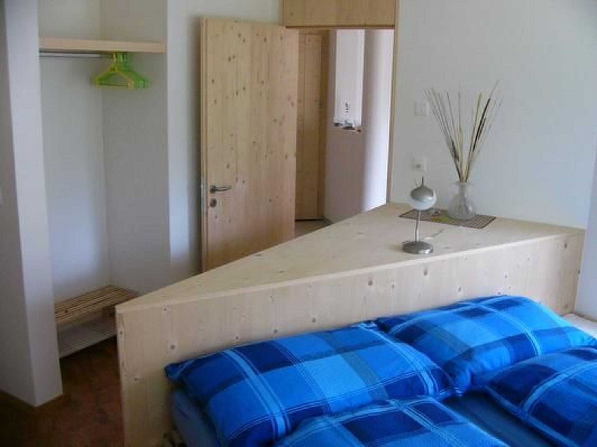Schlafzimmer: Ein Doppelschlafzimmer mit Einzelmatratzen (90x200cm), offener Schrank mit genügend Staumöglichkeiten, grosses Fenster mit schöner Aussicht.