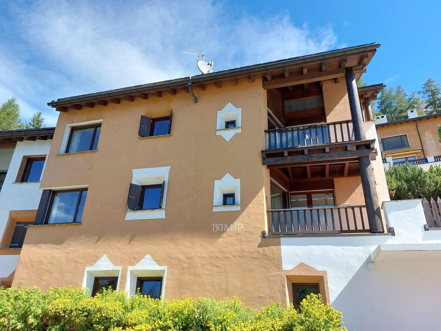 Oberhalb des Dorfes Pontresina gelegenes Duplex Ferienapartment mit Traumsicht. Auch für Familienferien geeignet. Die spektakuläre Aussicht der Chesa Ers in die Berge und Gletscherwelt des Rosegg begeistert alle Gäste dieser Ferienwohnungen. 10 Autominuten von St. Moritz entfernt. Das Zentrum von Pontresina mit der charmanten Einkaufsstraße, kleinen Cafés und ausgezeichneten Restaurants erreichen Sie in 10 Minuten Gehdistanz.
