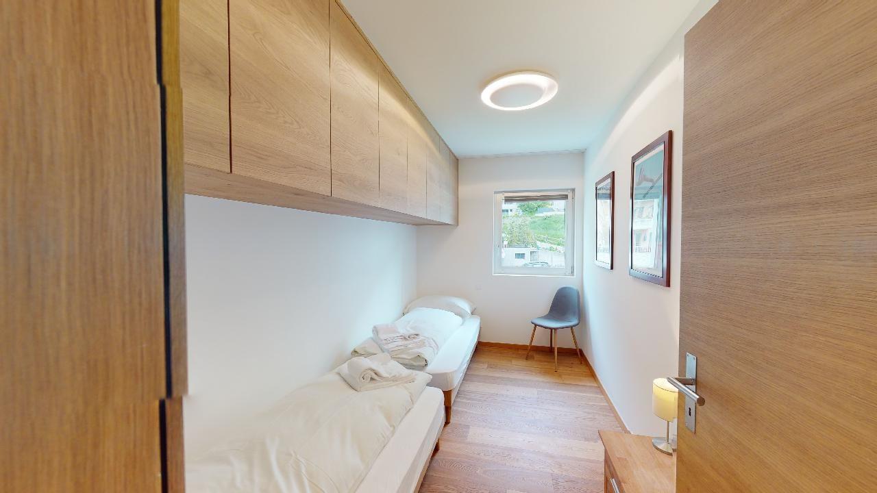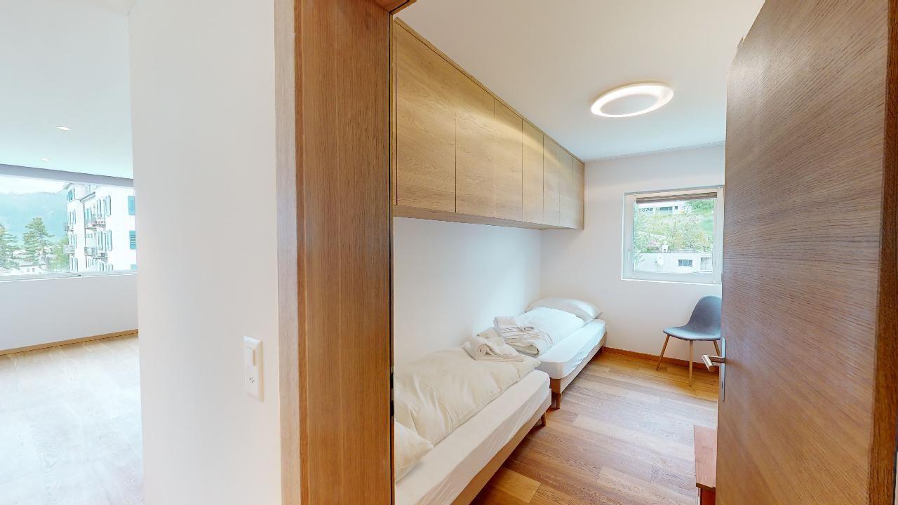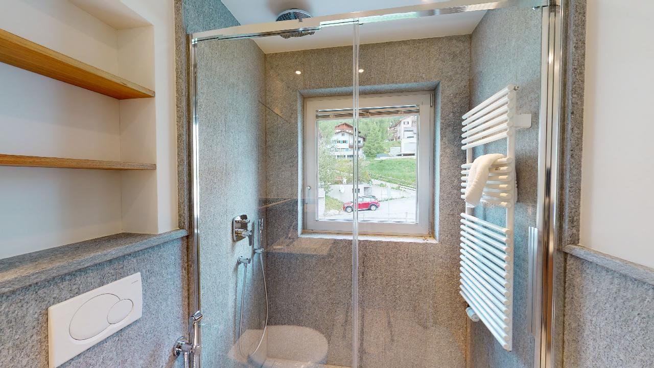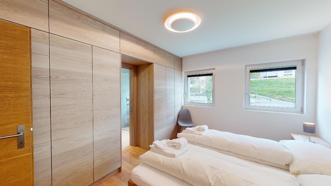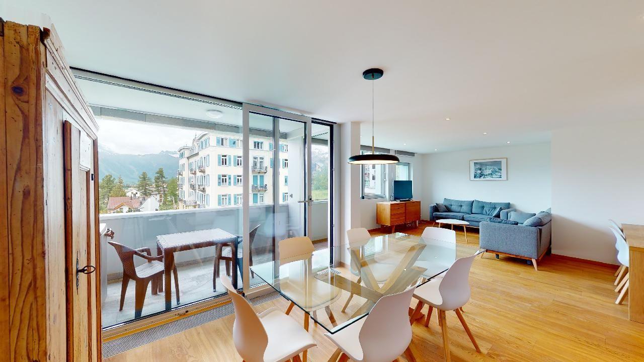 Die Ferienwohnung verfügt über ein Wohn- und Esszimmer mit offener Küche. Die Küche ist mit modernsten Geräten ausgestattet und komplett eingerichtet. Ein Esstisch für 6 Personen steht zur Verfügung und von der Küche gelangen Sie auf den Balkon mit einer wunderschönen Aussicht in Richtung Piz Padella und Corviglia. Das Wohnzimmer hat zwei Sofas und ein Fernseher. Sie finden ein Schlafzimmer mit einem Doppelbett und En-Suite Badezimmer mit begehbarer Dusche. Das zweite Schlafzimmer verfügt über zwei Einzelbetten. Es steht ein weiteres Badezimmer mit Dusche zur Verfügung. Die Wohnung verfügt über einen Skiraum sowie eine private Waschküche. Ebenfalls gehört zur Wohnung ein Garagenparkplatz.