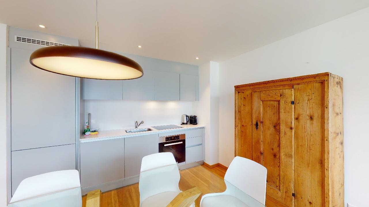 Die Wohnung befindet sich in einem modernen Neubau und wurde kürzlich mit neuen Möbeln ausgestattet.