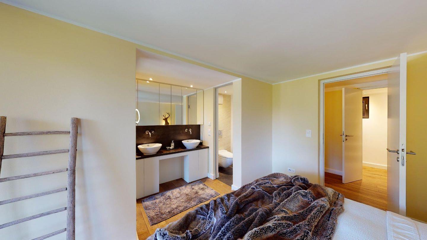 Geräumige 3.5-Zimmer-Wohnung in Pontresina mit traumhafter Aussicht. Zwei Doppelschlafzimmer, jeweils mit eigenem Bad, eines mit begehbarem Kleiderschrank. Offenes Wohnzimmer mit Küche, Essbereich, Kamin und herrlichem Panoramablick auf die Engadiner Berge. Grosse Terrasse, Fernsehecke, Abstellraum und Schopf für Sportgeräte. Hochwertiger Ausbau mit Holz und modernen Elementen. Reservierter Aussenparkplatz und gemeinschaftliche Waschküche.