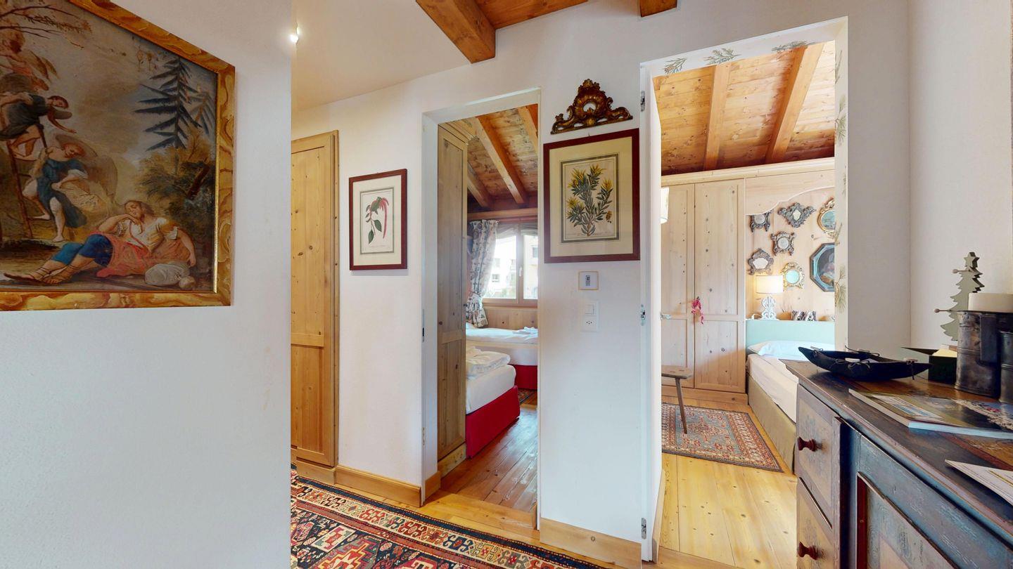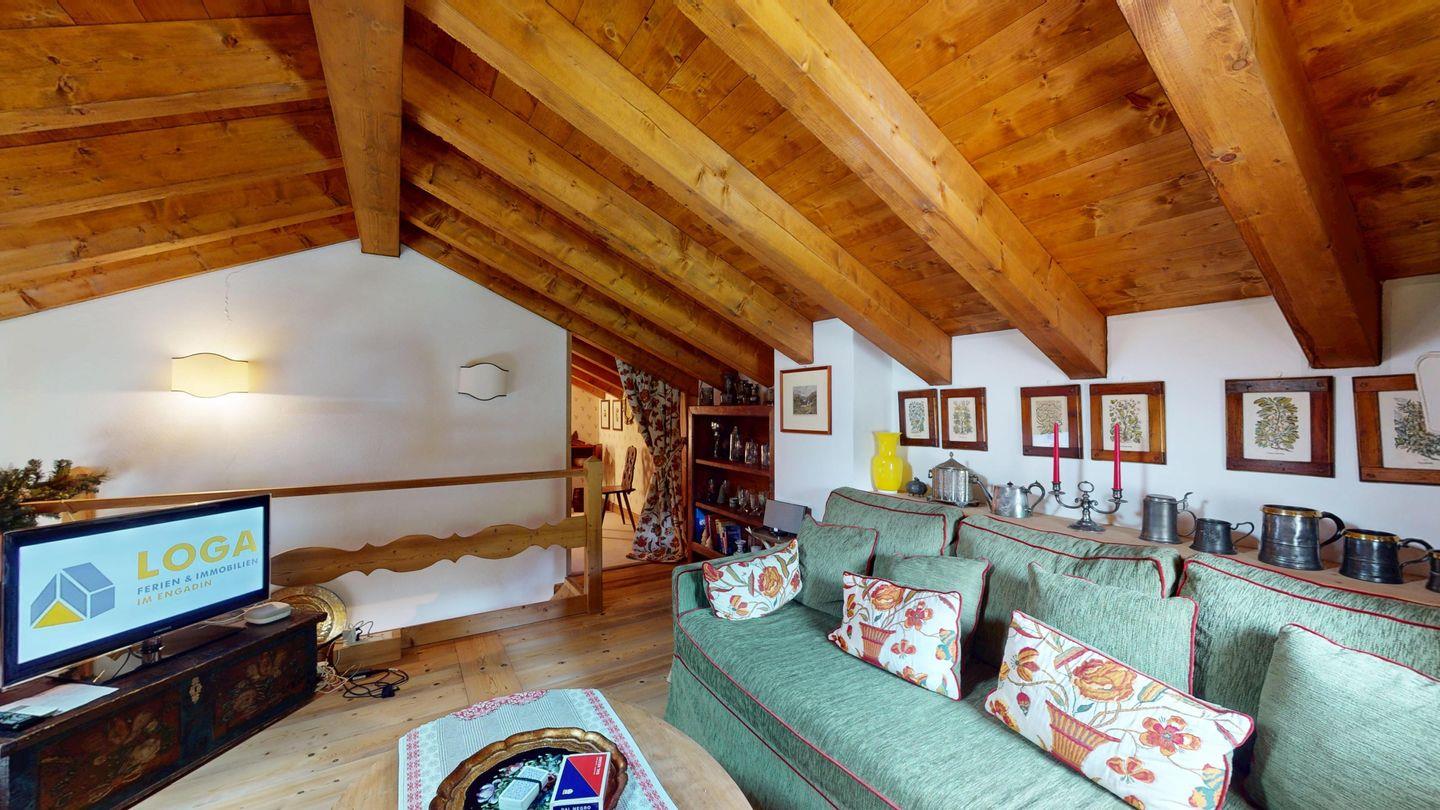 3½ - Zimmer-Duplexwohnung, ca. 105m², im OG/DG, mit Galerie, an ruhiger Lage mit schöner Bergsicht. Wohn- und Esszimmer mit Balkon und Sicht ins Roseg Tal und zur Julierkette. Geschlossene Küche mit Geschirrspüler und Backofen. Kaffeemaschine Nespresso. Ein Doppelzimmer mit eigenem Bad mit Wanne, WC, Lavabo und Bidet. Zweites Schlafzimmer mit zwei Einzelbetten. Badezimmer mit Bad mit Dusche, WC und Bidet. Auf der offenen Galerie befindet sich ein weiterer Wohnraum mit Sofa und TV. Eigene Waschmaschine in der Wohnung. Zwei Garagenplätze. Ski- und Veloraum zur Mitbenützung. Nichtraucherwohnung. Haustiere sind nicht erlaubt.
