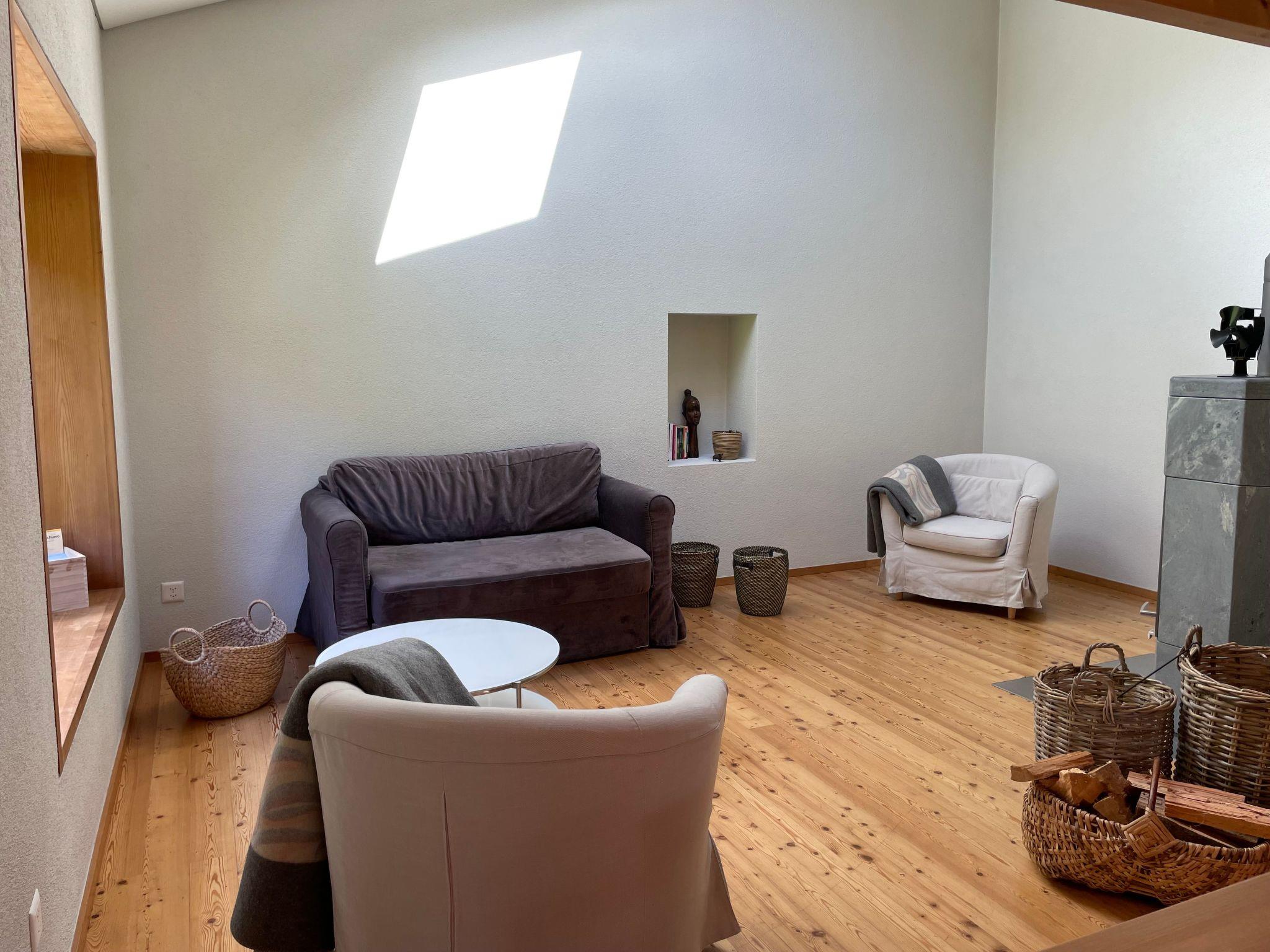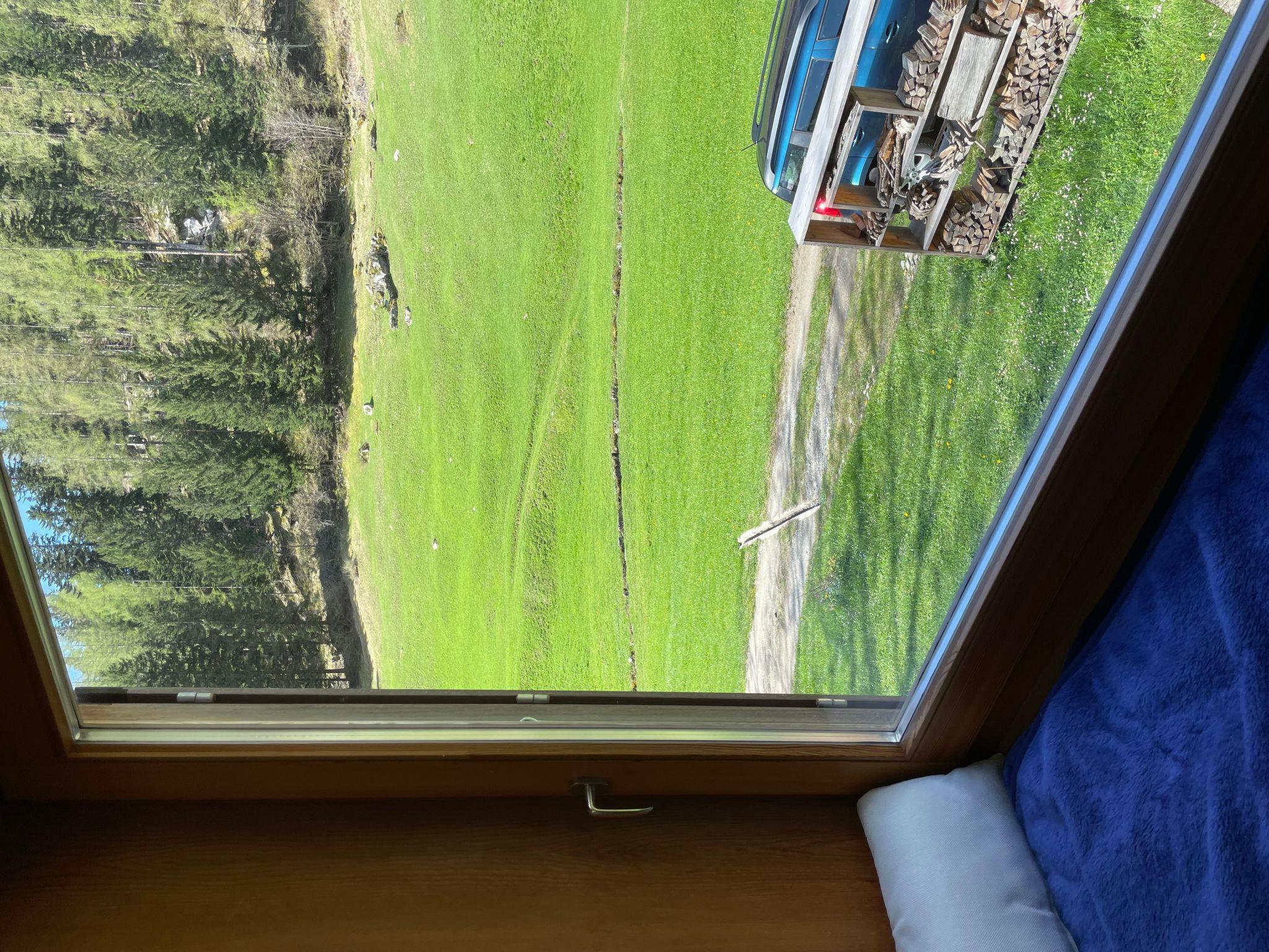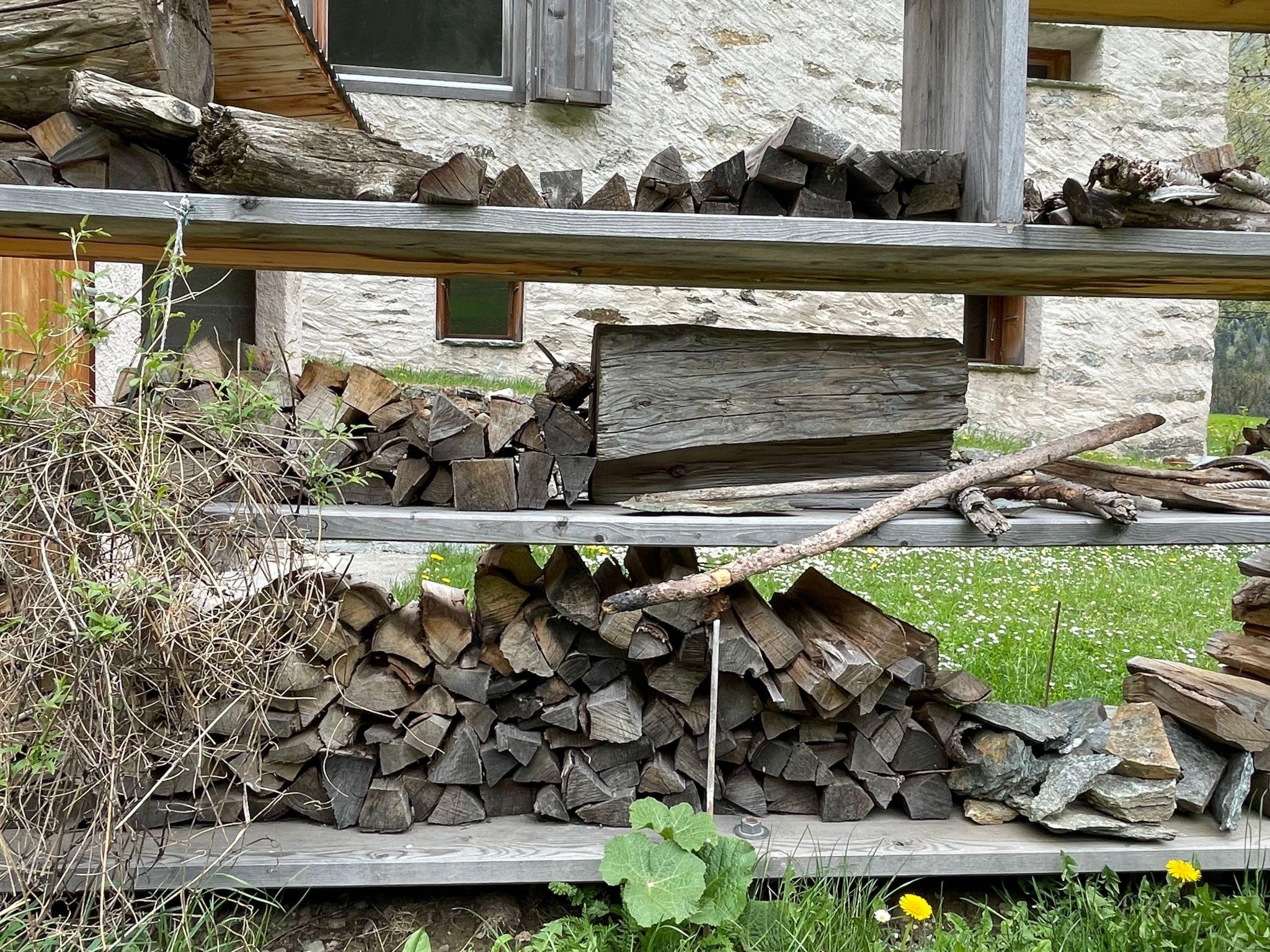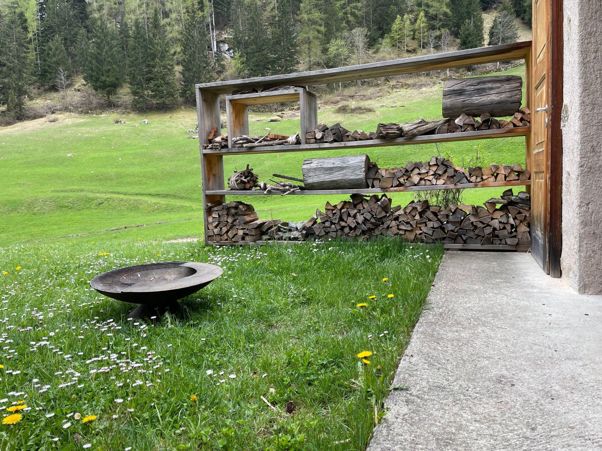 Im Außenbereich des Maiensäss werden Sie von einem liebevoll gestalteten Garten zur alleinigen Nutzung empfangen. Die Renovierung des Außenplatzes in 2021 mit neuen Stühlen, Tisch, Sonnenschirm und einem Grill lädt zu gemütlichen Stunden im Freien ein. Der gestaltete Parkplatz und die bereitgestellten Holzkästen für Brennmaterial sorgen für praktische Annehmlichkeiten während Ihres Aufenthalts.