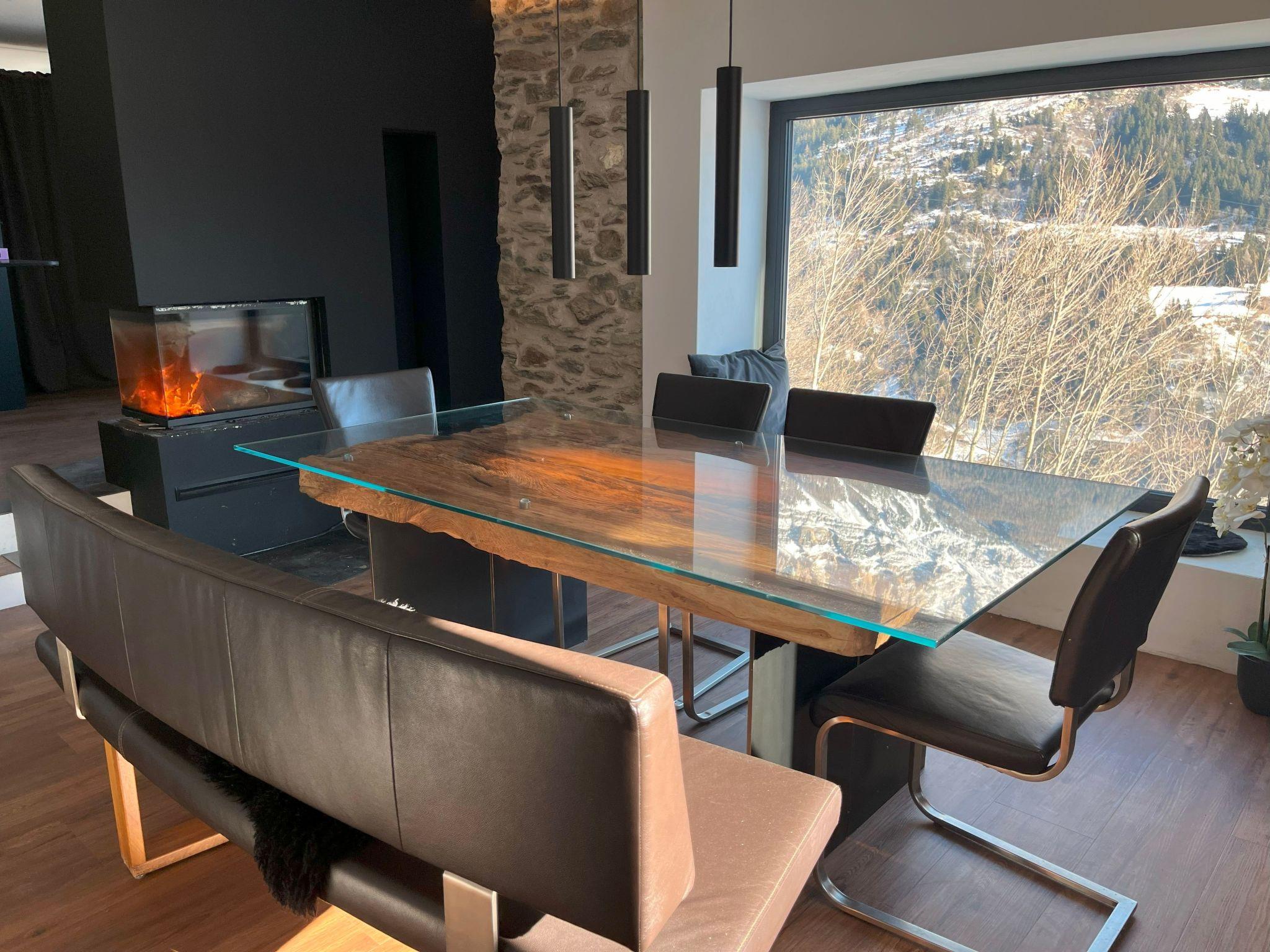 • Grosszügige Wohnbereiche: Der helle Wohnbereich mit Kamin lädt zum Verweilen ein. Die voll ausgestattete Küche bietet alles, was du zum Kochen und Geniessen benötigen.