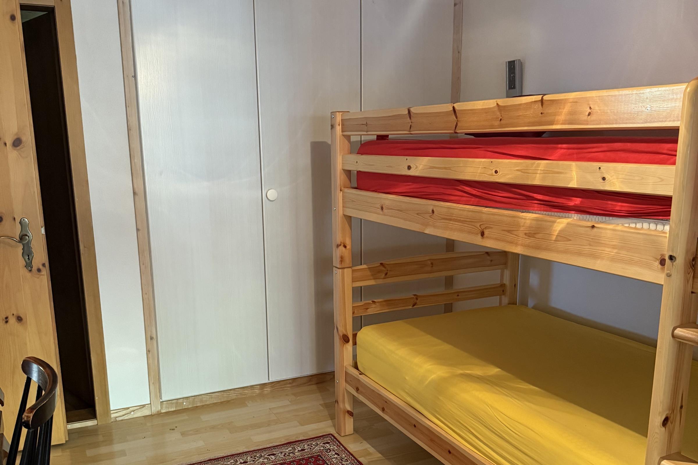 Das Hauptschlafzimmer ist mit einem komfortablen Doppelbett ausgestattet. (160cm x 200cm). Zudem verfügt die Wohnung über ein weiteres Kinderzimmer mit einem Hochbett.