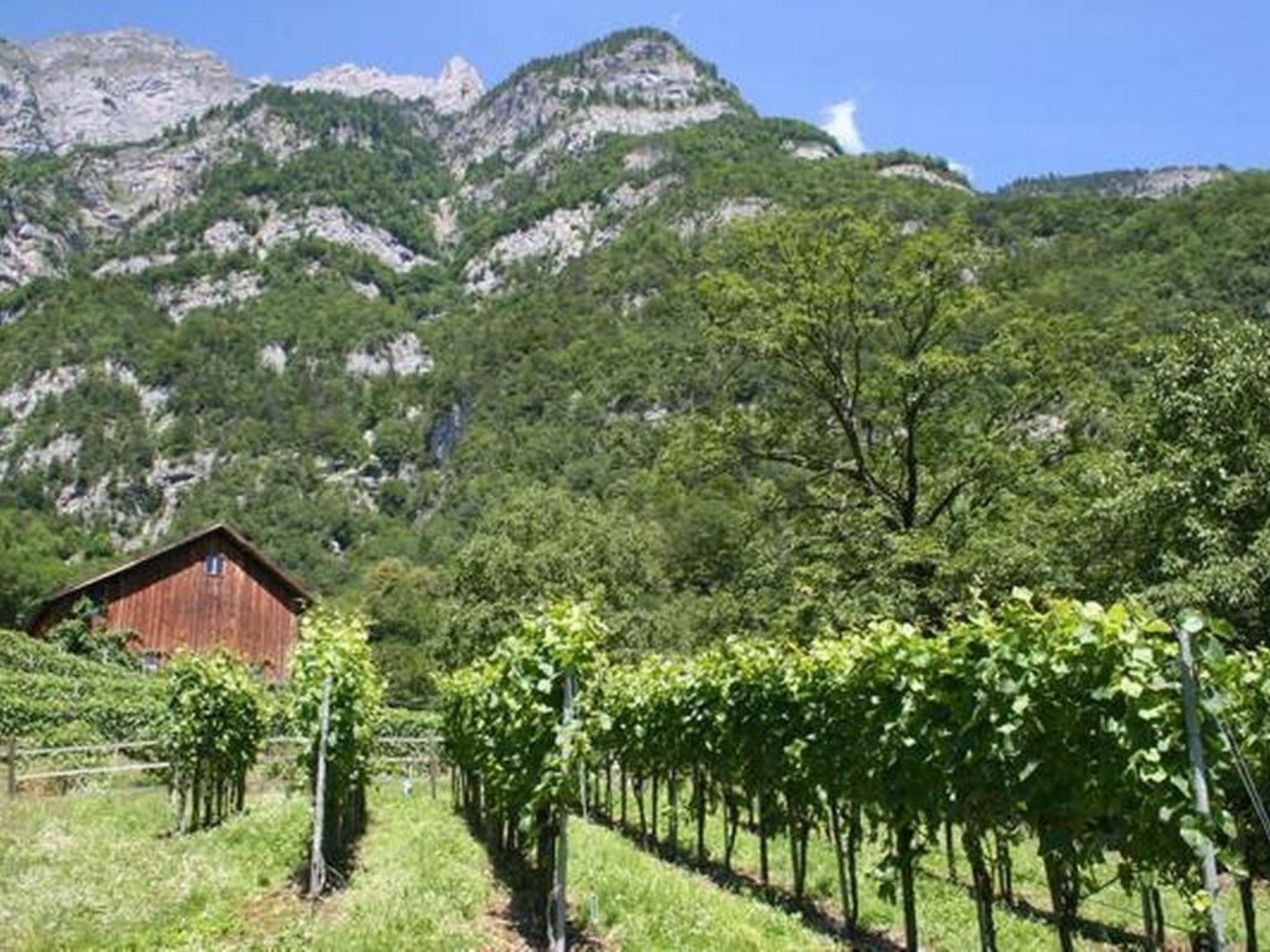 Im Garten gibt es viel Platz zum Spielen und Entspannen. Am oberen Ende des Gartens wachsen ca. 70 Reben, die als Teil des angrenzenden Rebbergs zu einem ausgezeichneten Pinot Noir gekeltert werden. Je nach Jahreszeit reifen im Garten zudem Walderdbeeren, Brombeeren und Feigen. Der Blick vom oberen Gartenplatz mit Pizzaofen und Trampolin beeindruckt durch die steil aufragenden Churfirsten. Mit etwas Glück findet man im weitläufigen Wiesenrasen auch vierblättrigen Klee.