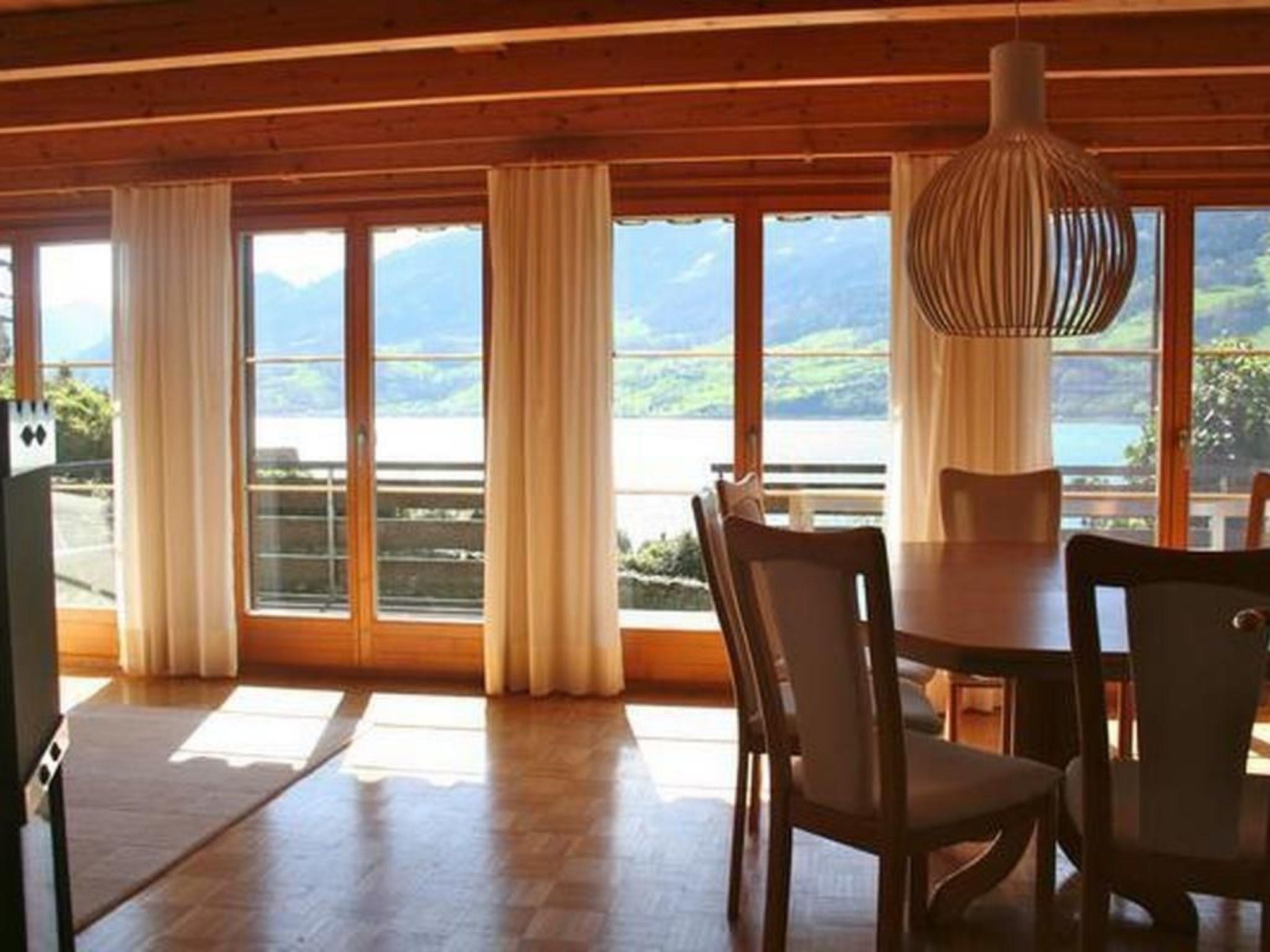 Helles, schön eingerichtetes Wohn- und Esszimmer mit Schwedenofen und voller Aussicht auf den Walensee. Grosse Terrasse mit Esstisch. Gut ausgestattete Küche. Ein grosses Schlafzimmer, ein grosses Schlaf- und Spielzimmer und grosses Bad/WC im Obergeschoss. Zwei Zimmer (je 11m2) und Dusche/WC im Untergeschoss. Aussen-Sauna auf der unteren Terrasse. Das WLAN ist auch für home office geeignet.
