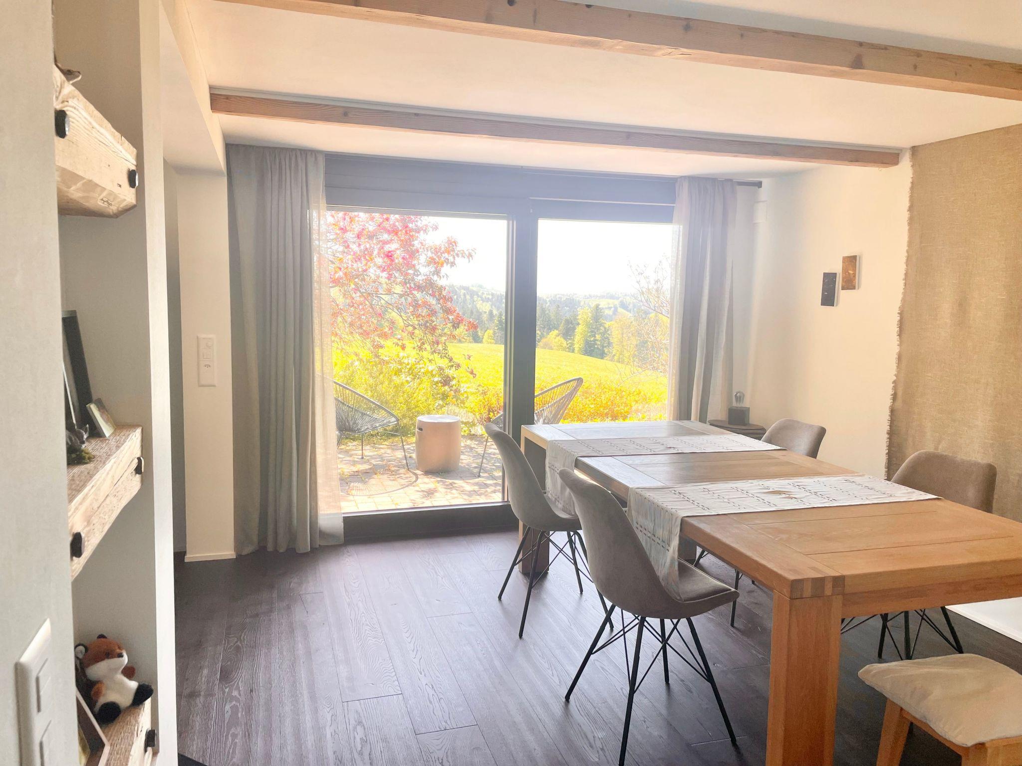 Bei schönem wie auch bei regnerischem Wetter bietet die Wohnung alles, um es dir zuhause gemütlich zu machen: Das Lichtkonzept sorgt jederzeit für ein gemütliches Ambiente und der Cheminée-Ofen wärmt auch an kühleren Tagen. Die vollausgestattete Küche lädt zum Kochen ein und die private, grosszügige Terrasse bietet dir einen zusätzlichen Esstisch mit Mittags- und Abendsonne. Geniesse auch den herrlichen Ausblick auf dem privaten Balkon auf die liebliche Hügellandschaft mit Wäldern, wo täglich Rehe und Füchse unterwegs sind. Für dein Sporttraining bietet dir die Wohnung eine Fitness-Ecke, W-Lan und Drucker ermöglichen dir ein bequemes Homeoffice und zur Unterhaltung & Inspiration findest du ausgewählte Literatur, Spiele und lokale Kunstwerke (kein Fernseher vorhanden). Die Innenarchitektur habe ich persönlich mit viel Liebe zum Detail gestaltet: Es war mir wichtig die alte Baustruktur sichtbar zu machen, so dass der traditionelle Charme auch mit modernem Komfort erhalten bleibt.