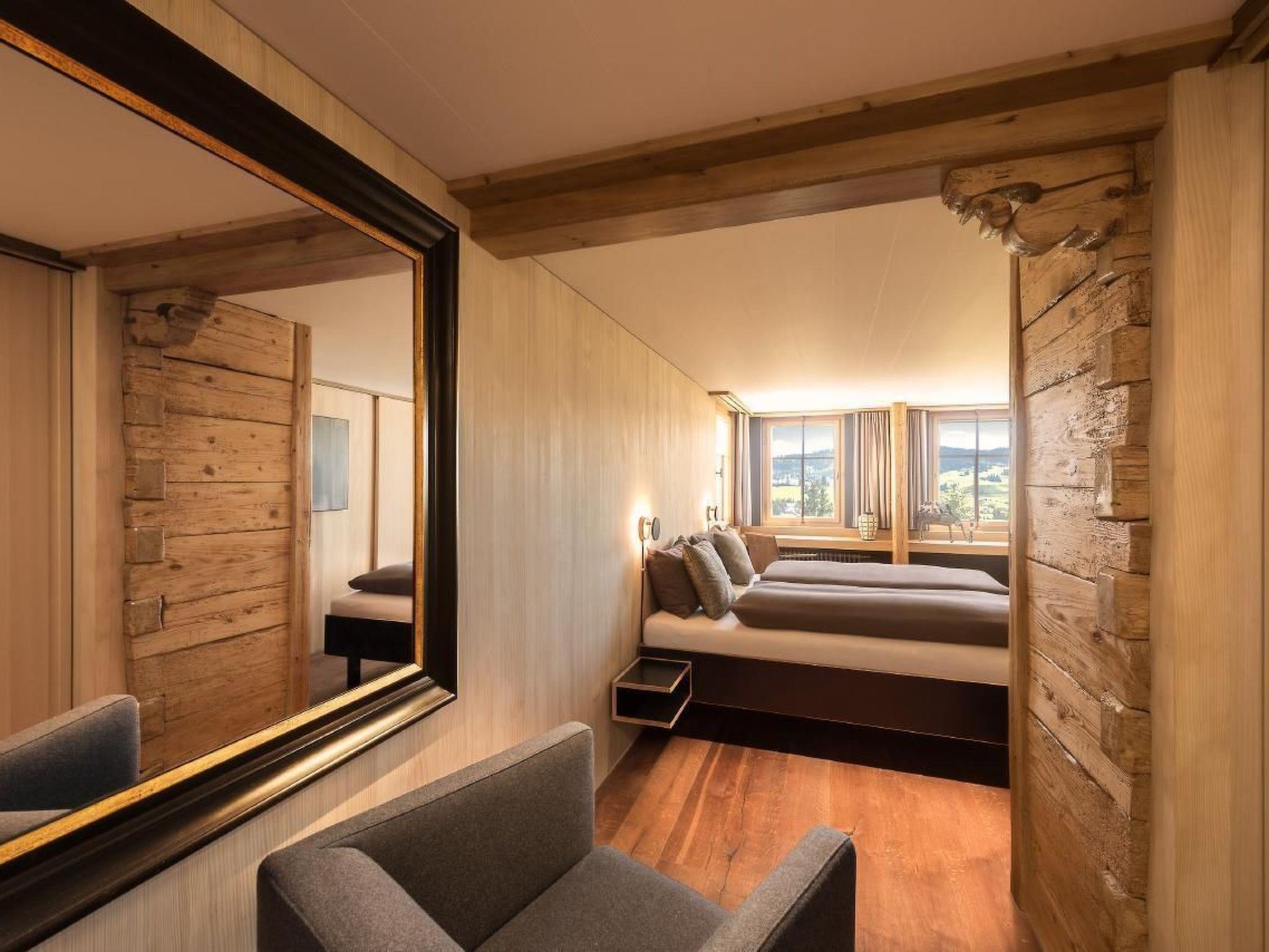 Hier übernachten, mit einzigartigem Blick übers Appenzellerland bis hin zum Säntis, ist zu allen Jahreszeiten ein Erlebnis.Im stilvoll renovierten, denkmalgeschützten Haus am historischen Dorfplatz von Rehetobel, wird alte Bausubstanz mit Modernität verbunden. Das fünfstöckige, stattliche Haus hat in seinen 230 Jahren mehreren Zwecken gedient. Wo jetzt ein hübsches Beizli, das «Gasthaus Dorf5» mit wunderschönem Garten, zum Verweilen einlädt, war früher das Postbüro von Rehetobel. In den oberen Stockwerken, die als Telegrafenamt und Geschäftsräume dienten, befinden sich heute drei Wohnungen mit hohem Ausbaustandard.Die grosszügige, lichtdurchflutete Wohnung bietet einen 180 Grad Fernblick, einen schönen Balkon und einen grosszügigen Wohnraum mit Cheminée. Bad und Schlafzimmer mit Ankleide und die offene Küche weisen einen hohen Einrichtungsstandard auf. Die natürliche Bausubstanz mit historischen Parkettböden und ausgesuchten Materialien sind auf einem hohen ästhetischen Niveau. Auch die technische Ausstattung und das besondere Lichtkonzept lassen keine Wünsche offen.Von der zentralen Lage im Appenzeller Vorderland aus lassen sich das Alpsteingebiet, die nahegelegene Bodenseeregion und die äusserst sehenswerte Stadt St.Gallen ideal erkunden. Die Wohnung bietet für zwei Personen sehr viel Raum, und es finden sich viele gemütliche Plätzchen zum Verweilen. Kochen in der modern eingerichteten Küche macht Freude - oder lassen Sie sich lieber im "Beizli" unten verwöhnen?Für mehr als zwei personen Personen empfehlen wir die Wohnung "Kronbergblick" oder "Säntispanorama" im gleichen Haus.