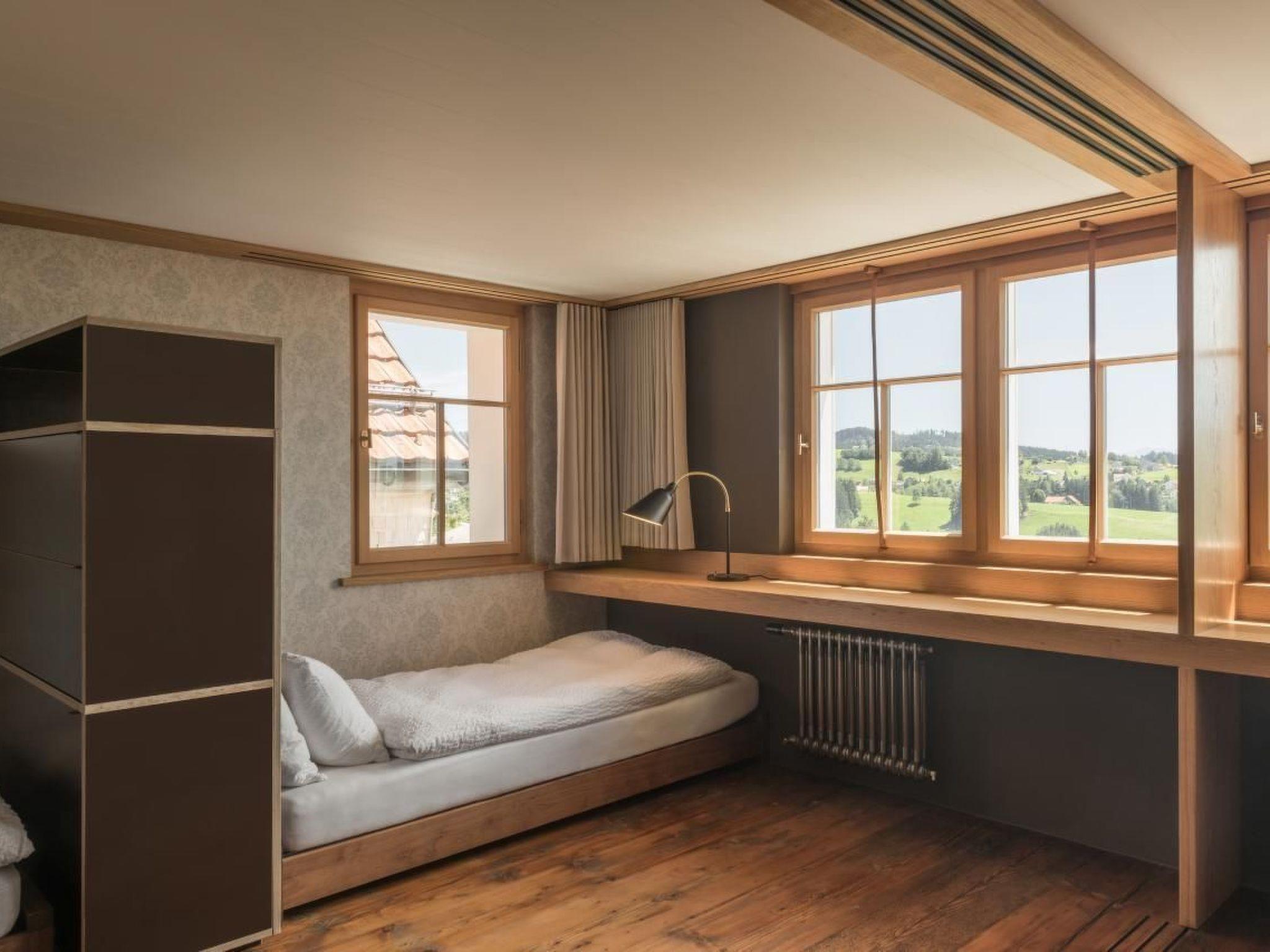 Hier Übernachten, mit einzigartigem Blick übers Appenzellerland bis hin zum Säntis, ist zu allen Jahreszeiten ein Erlebnis.Im stilvoll renovierten, denkmalgeschützten Haus am historischen Dorfplatz von Rehetobel, wird alte Bausubstanz mit Modernität verbunden.Das fünfstöckige, stattliche Haus hat in seinen 230 Jahren mehreren Zwecken gedient. Wo jetzt ein hübsches "Beizli", das "Gasthaus Dorf5", mit wunderbarem Garten zum Verweilen einlädt, war früher das Postbüro von Rehetobel.In den oberen Stockwerken, die als Telegrafenamt und Geschäftsräumen dienten, befinden sich heute drei Wohnungen mit hohem Ausbaustandard.Die grosszügige, lichtdurchflutete Wohnung bietet einen 180 Grad Fernblick, einen schönen Balkon und grosszügige Wohnräume mit Cheminée. Durch Schiebetüren lassen sich die Räume den Bedürfnissen entsprechend wandeln.Die natürliche Bausubstanz mit viel Holz und die grosszügige Ausstattung sind technisch und ästhetisch auf hohem Niveau. Von der zentralen Lage im Appenzeller Vorderland aus lassen sich das Alpsteinbegiet, die nahegelegene Bodenseeregion und die äusserst sehenswerte Stadt St.Gallen ideal erkunden.Die Wohnung im zweiten Stock bietet für zwei bis vier Personen viel Raum und Sie finden viele gemütliche Plätzchen zum Verweilen. Kochen in der modern eingerichteten Küche macht Freude - oder lassen Sie sich lieber im "Beizli" unten verwöhnen?Für mehr als vier Personen empfehlen wir die Wohnung "Alpsteinpanorama" im gleichen Haus.