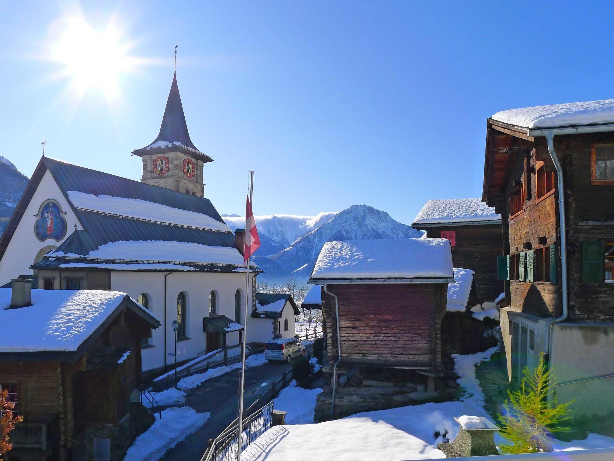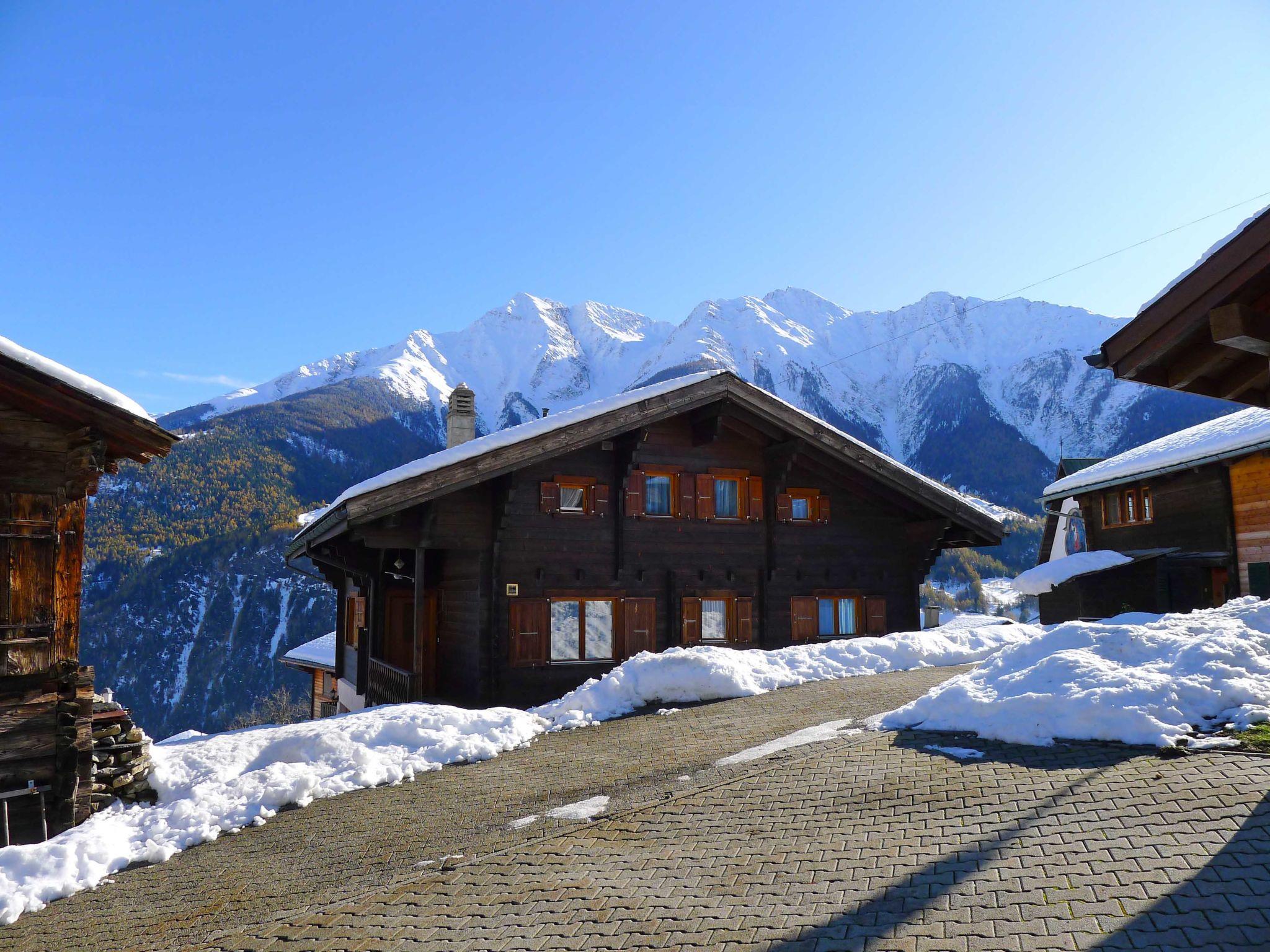Ried-Mörel 10 km von Brig: Gemütliches, rustikales Einfamilienhaus "Godo", 1'150 m.ü.M., auf 3 Stockwerken. Im Ortszentrum, ruhige, sonnige Lage am Hang, 500 m vom Skigebiet. Zur Alleinbenutzung: Grundstück, Liegewiese 30 m2. (Sandkasten). Im Hause: Einstellraum für Fahrräder, Skiraum, Zentralheizung, Waschmaschine, Trockenraum. Schmale Zufahrt bis zum Haus (Bergstrasse). Im Winter bitte Schneeketten mitbringen, im Winter 4x4 empfohlen. Parkplatz (für 2 Autos) beim Haus, Einzelgarage, öffentliche Parkplätze 30 m. Lebensmittelgeschäft, Restaurant 500 m, Bushaltestelle "Ried-Mörel" 500 m. Skilift 1 km, Gondelbahn 500 m, Skisportanlagen 1 km, Skipisten 1 km, Skischule 1 km, Schlittelbahn 1 km, Langlaufloipe 1 km, Kinderspielplatz 500 m. Nahe gelegene Sehenswürdigkeiten: UNESCO Welterbe Aletsch 1 km. Bekannte Skigebiete sind gut erreichbar: Aletsch Arena Riederalp 1 km. bei viel Schnee im Winter Zufahrt zu Garage und Aussenparkplätze nicht gewährleistet (öffentliche Parkplätze unter dem Haus bei Kirche). Chalet befindet sich 500m entfernt von Mittelstation der Mörel - Riederalp Gondelbahn.