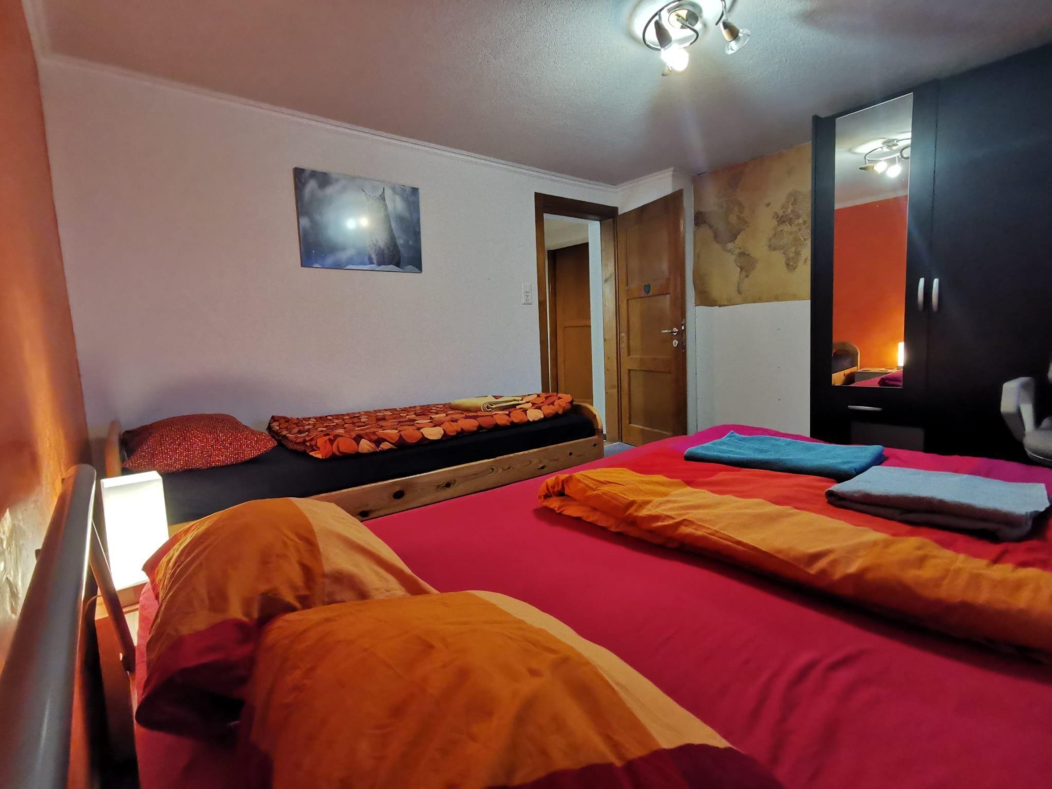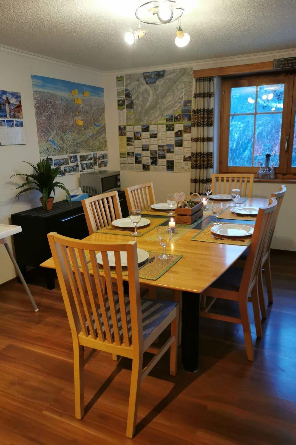 Diese charmante 75 m² grosse Ferienwohnung im zweiten Stock eines traditionellen Walliser Chalets bietet Platz für bis zu sechs Personen. Sie verfügt über drei Schlafzimmer: eines mit Doppelbett, eines mit Etagenbett und eines mit zwei Einzelbetten. Die Küche mit grosszügigem Esstisch ist modern und voll ausgestattet. Das Wohnzimmer mit grossem Sofa, Fernseher und Dolby-Digital-Soundanlage sorgt für entspannte Abende mit Familie und Freunden. Der Balkon bietet einen beeindruckenden Blick auf die Berge der Simplon-Region. Eine Waschmaschine steht zur Verfügung. Für Skiausrüstung, Snowboards oder Kletterequipment gibt es einen abschliessbaren Keller.