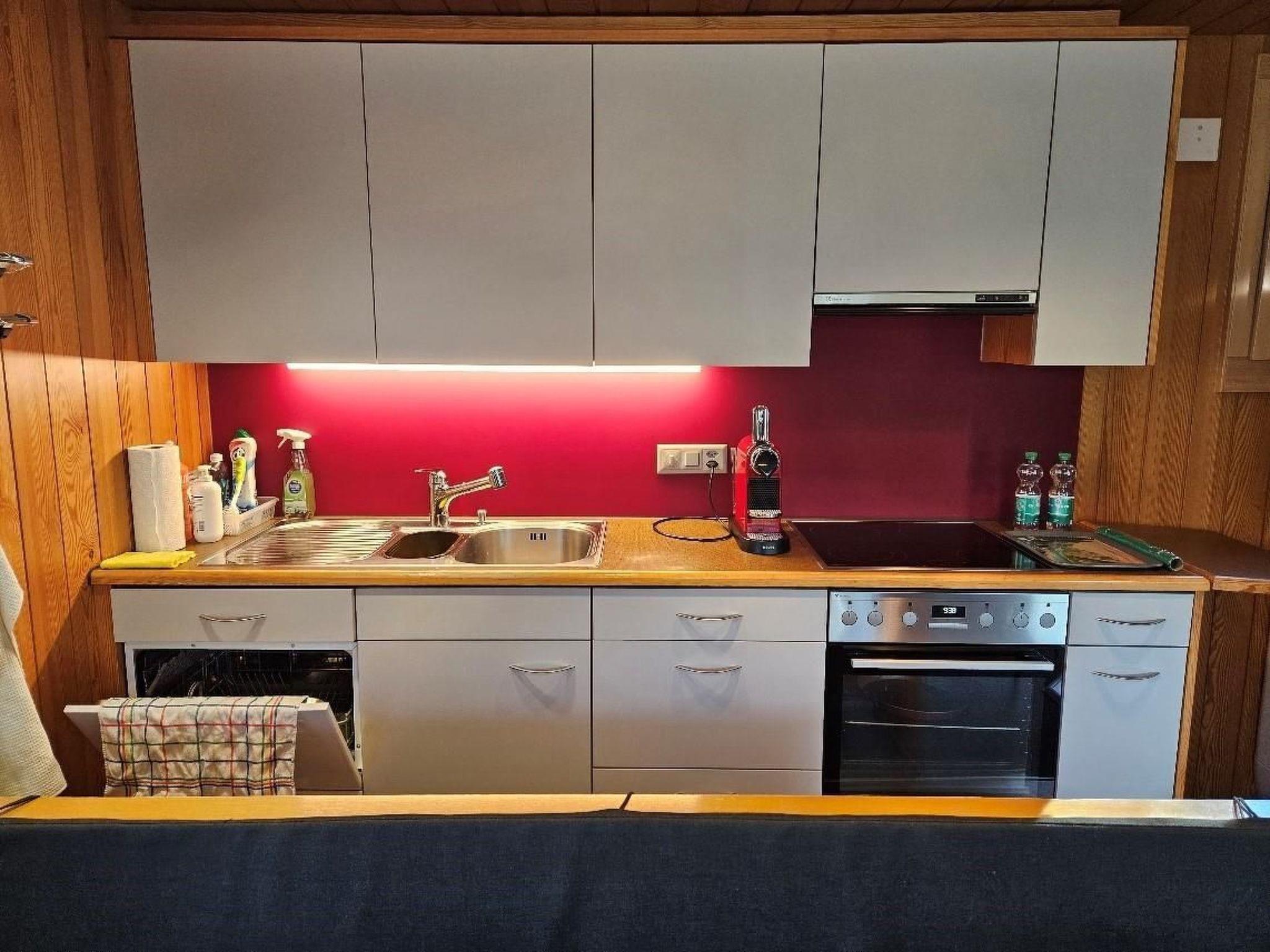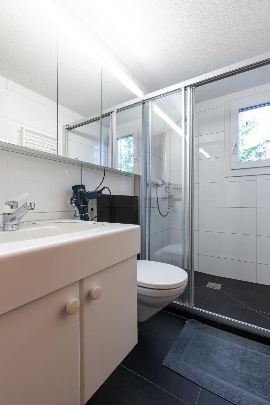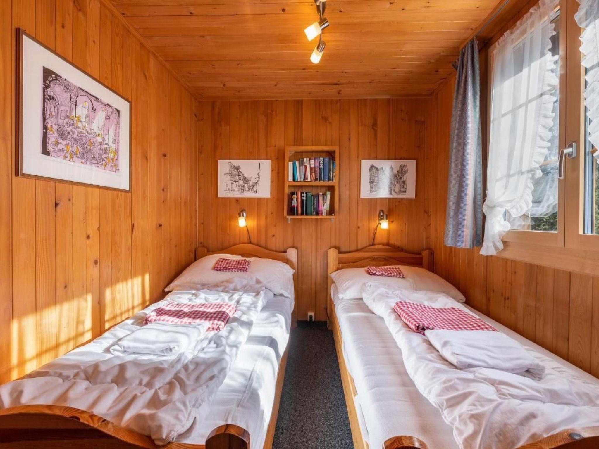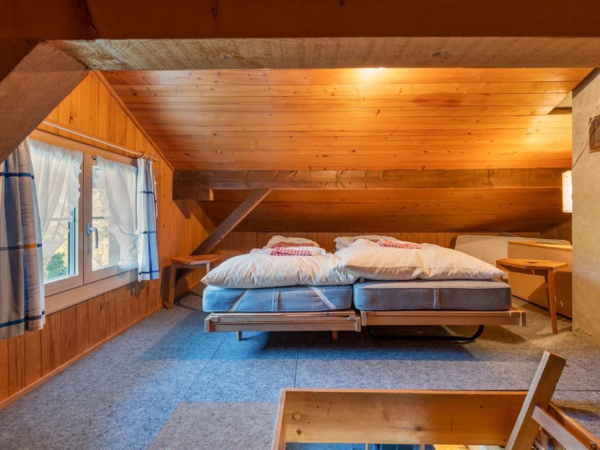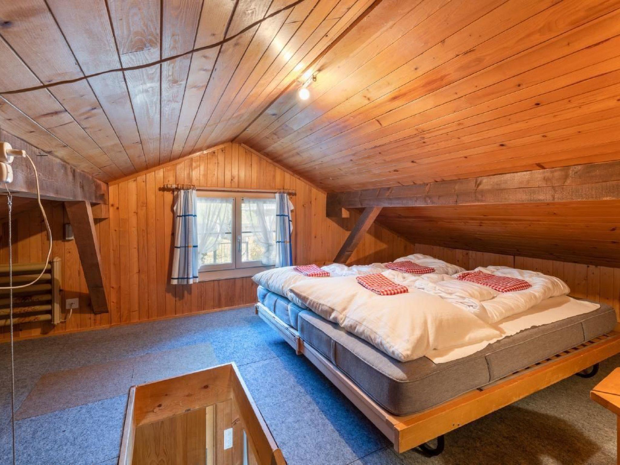 Das Haus präsentiert sich im charmanten Chalet-Stil und wurde in den 60er Jahren erbaut, mit einem gemauerten Untergeschoss. Einen modernen Hauch erhielt es durch Renovierungen im Jahr 1988 und zuletzt 2014, um heutigen Standards gerecht zu werden. Das Interieur umfasst zwei Doppelzimmer und ein Mansardenzimmer mit weiteren drei Betten, ideal für Familien oder eine Gruppe von Freunden. Im gemütlichen Wohnzimmer mit integrierter Küche finden Sie ein einladendes Cheminée, eine Spülmaschine, einen Keramikplattenherd sowie einen großen Kühlschrank vor. Für Unterhaltung und Komfort sorgen zudem ein Radio, TV und WLAN. Beheizt wird die Wohnung durch effektive Speicheröfen, die für wohlige Wärme sorgen.