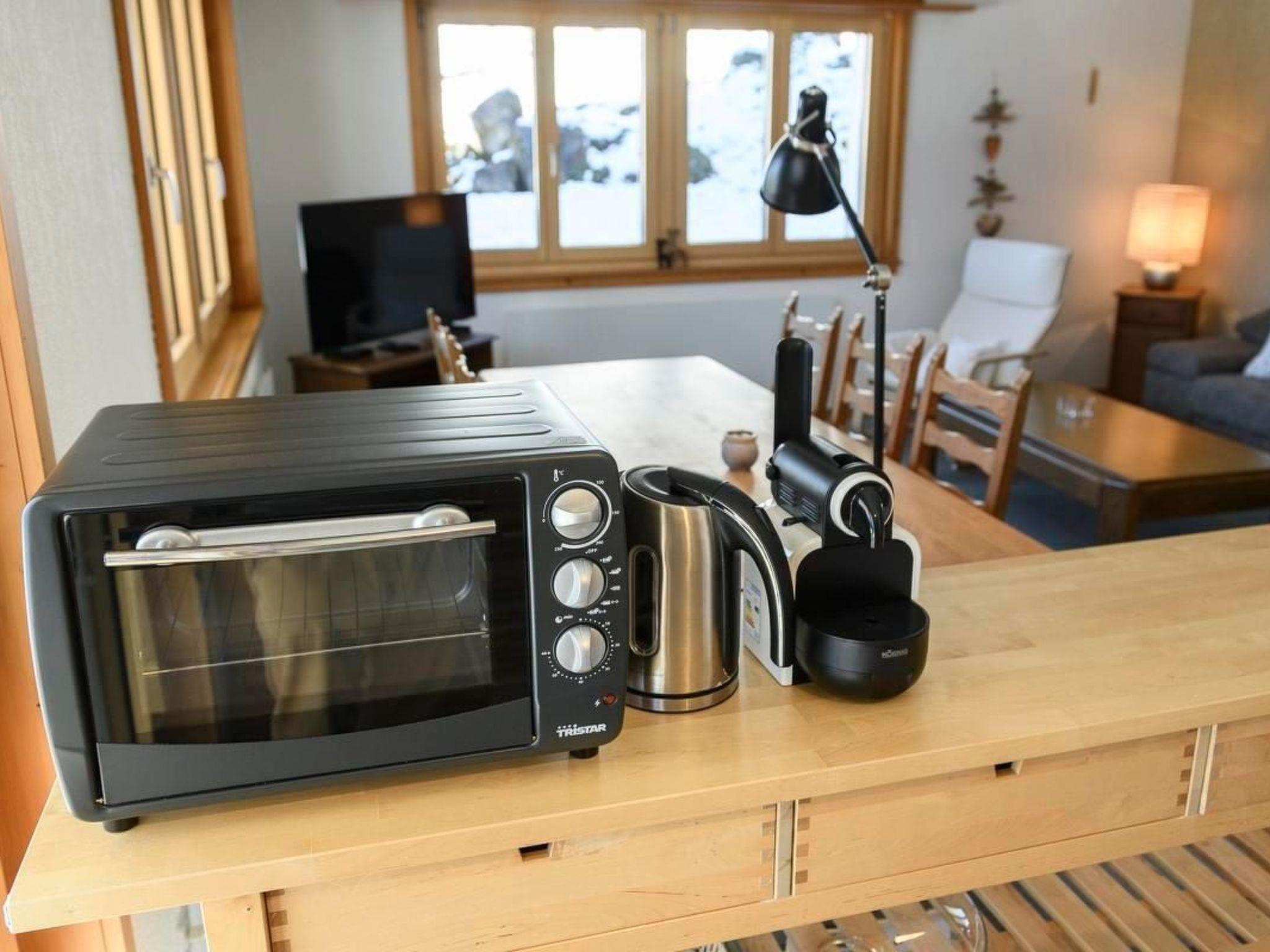 Im Inneren erwarten Sie zwei wohlige Schlafzimmer, eines mit einem Doppelbett und eines mit einem Etagenbett, ideal für Familien oder eine kleine Gruppe von Freunden. Das geräumige und gemütliche Wohnzimmer lädt zu entspannenden Abenden ein. In der kleinen offenen Küche finden sich alle notwendigen Apparate und Utensilien - von einem großen Kühlschrank, Keramikherd mit 4 Platten, Geschirrspüler bis hin zu einem Fondue Caquelon und Raclette Set für authentische Schweizer Abende. Ein Staubsauger und weitere Reinigungsutensilien, TV & WLAN ergänzen die Ausstattung für einen sorglosen Aufenthalt.