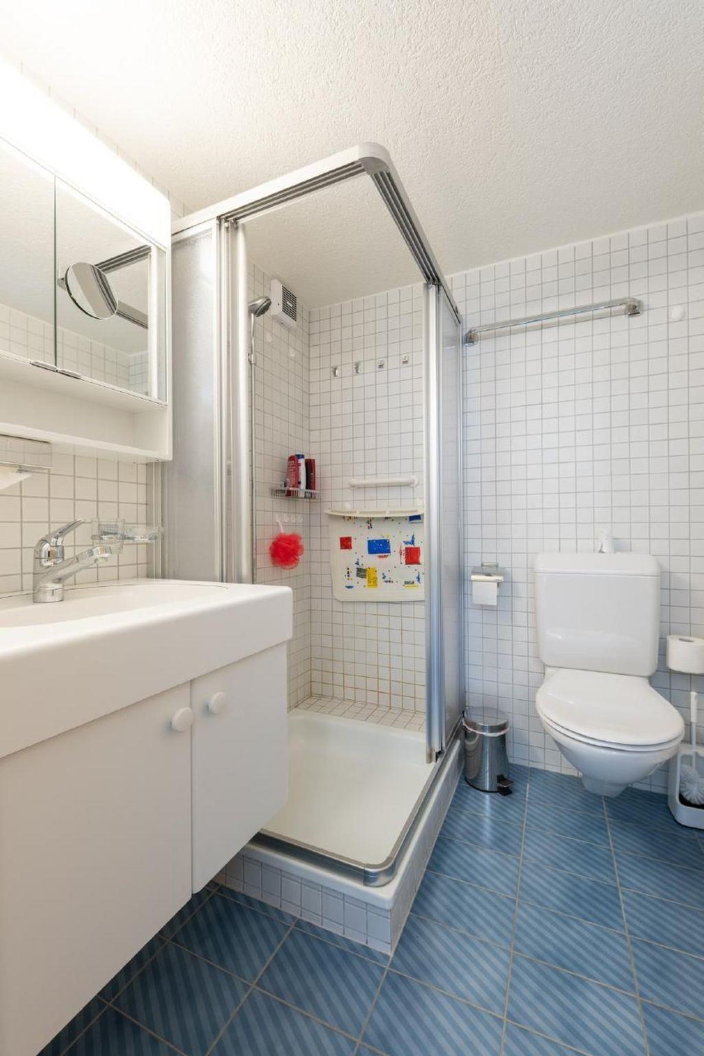 Im Außenbereich lädt ein großer Gartensitzplatz zum Verweilen ein, der sich über die gesamte Breite des Hauses erstreckt. Hier können Sie die Sonne genießen und den Tag entspannt ausklingen lassen. Die Wohnung verfügt ebenfalls über einen gedeckten sowie einen offenen Parkplatz und teilt sich einen Ski- bzw. Veloraum mit der Wohnung im Obergeschoss, was gerade für Aktivurlauber sehr praktisch ist.