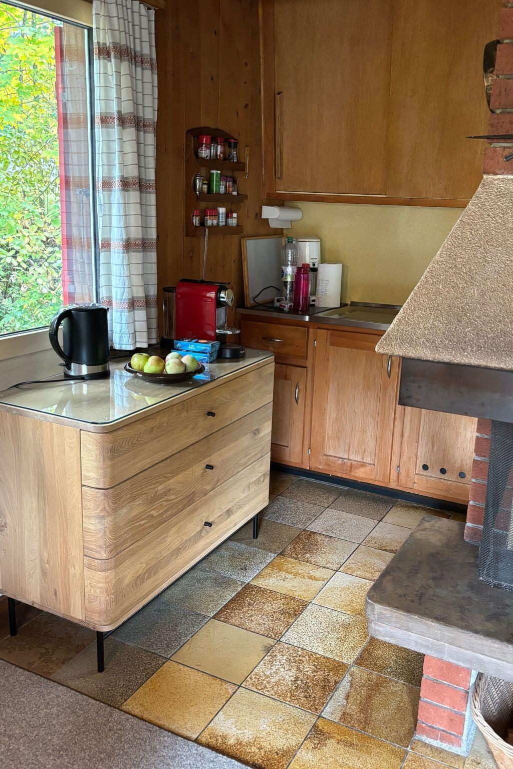 Sonstige Wohnzimmerausstattung (Wohnzimmer1): Cheminée, Schränkli mit diversen Gesellschaftsspielen und Zeichenutensilien