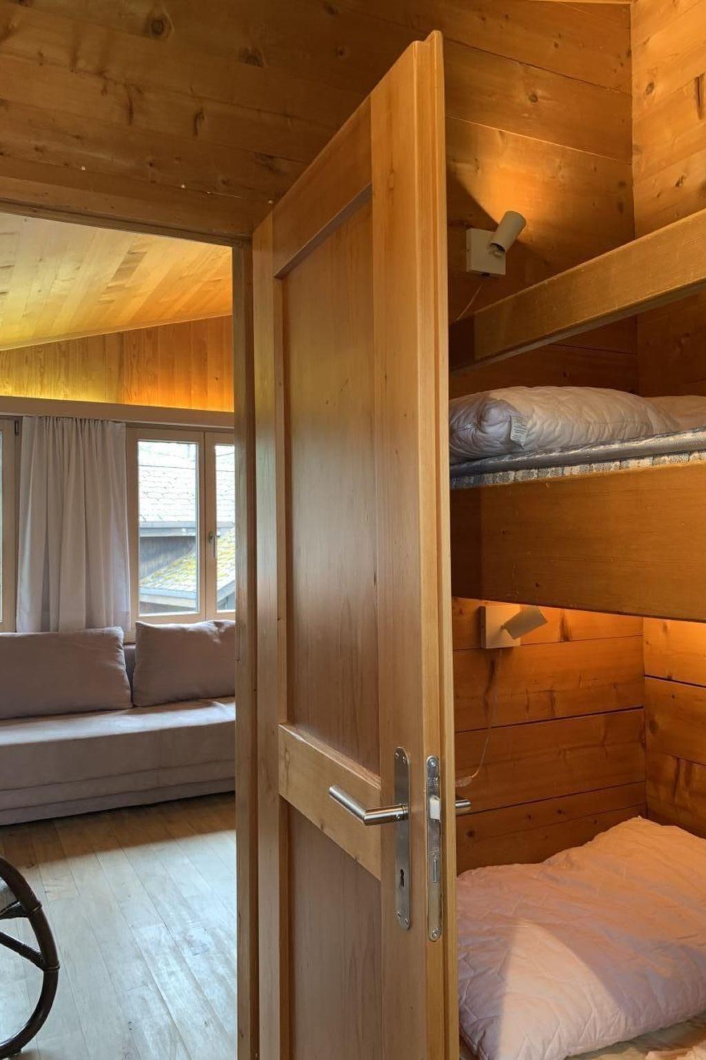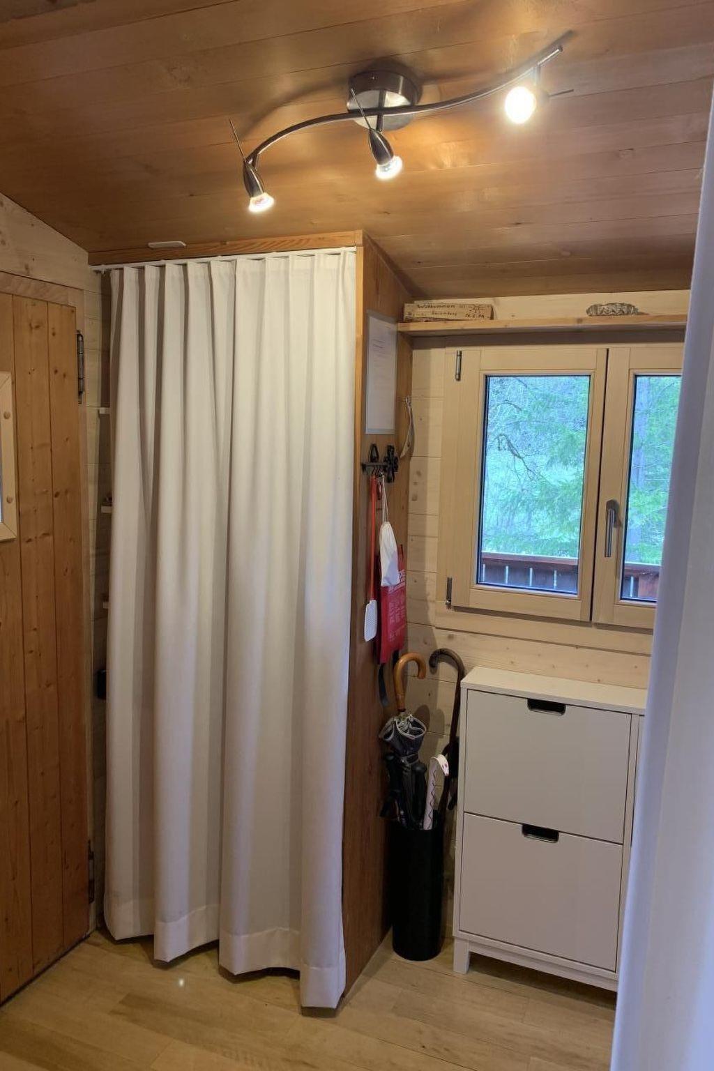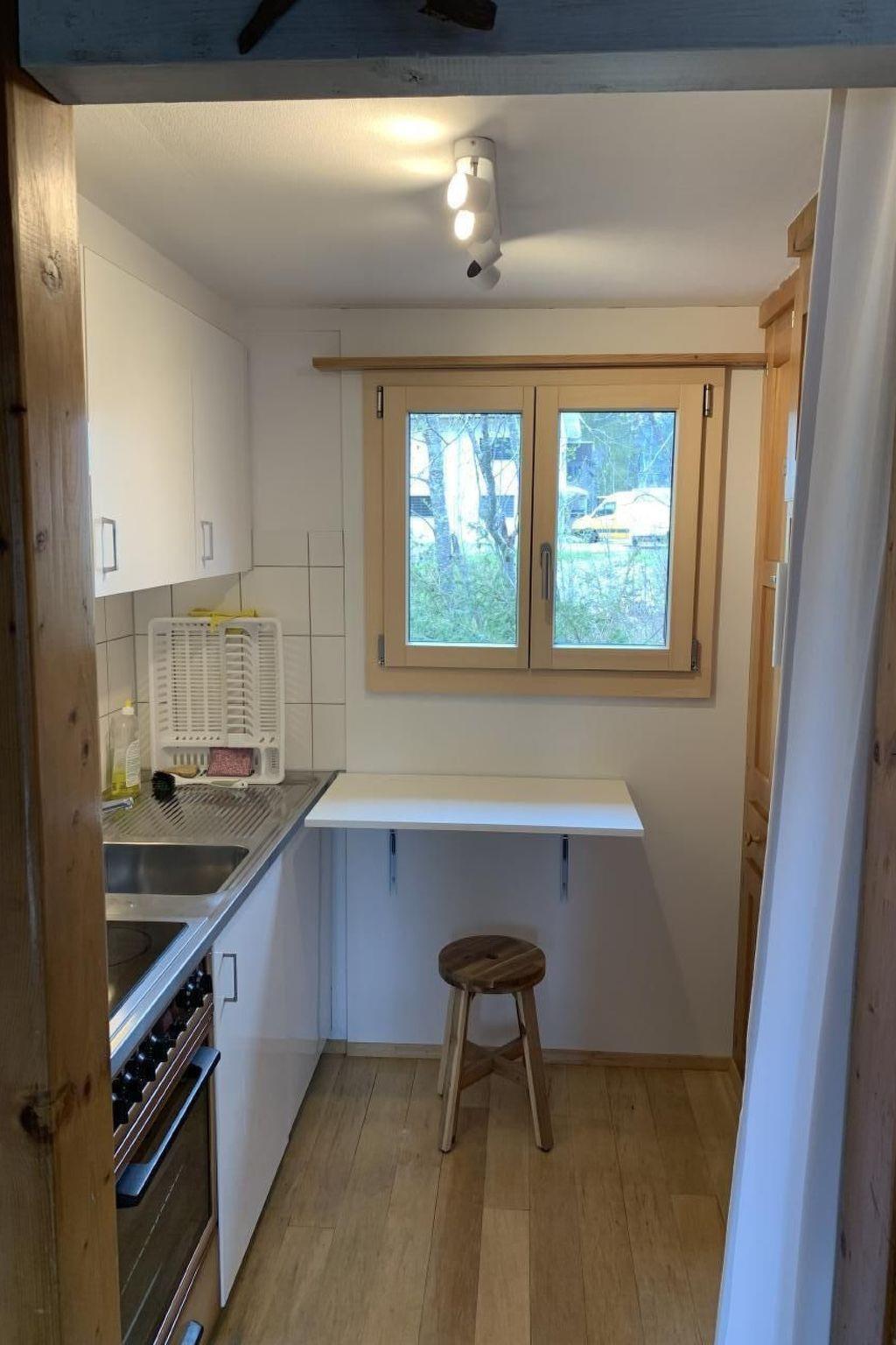 Sonstige Schlafzimmereinrichtung (Schlafzimmer1): Im Wohnzimmer und im Untergeschoss hat es zusätzlich je ein aufklappbares bzw. ausziehbares Bettsofa. Der Zugang zum Untergeschoss ist vom Schlafzimmer aus durch eine Bodenklappe mit einer Leiter oder von aussen über die Gartentreppe gewährleistet.
