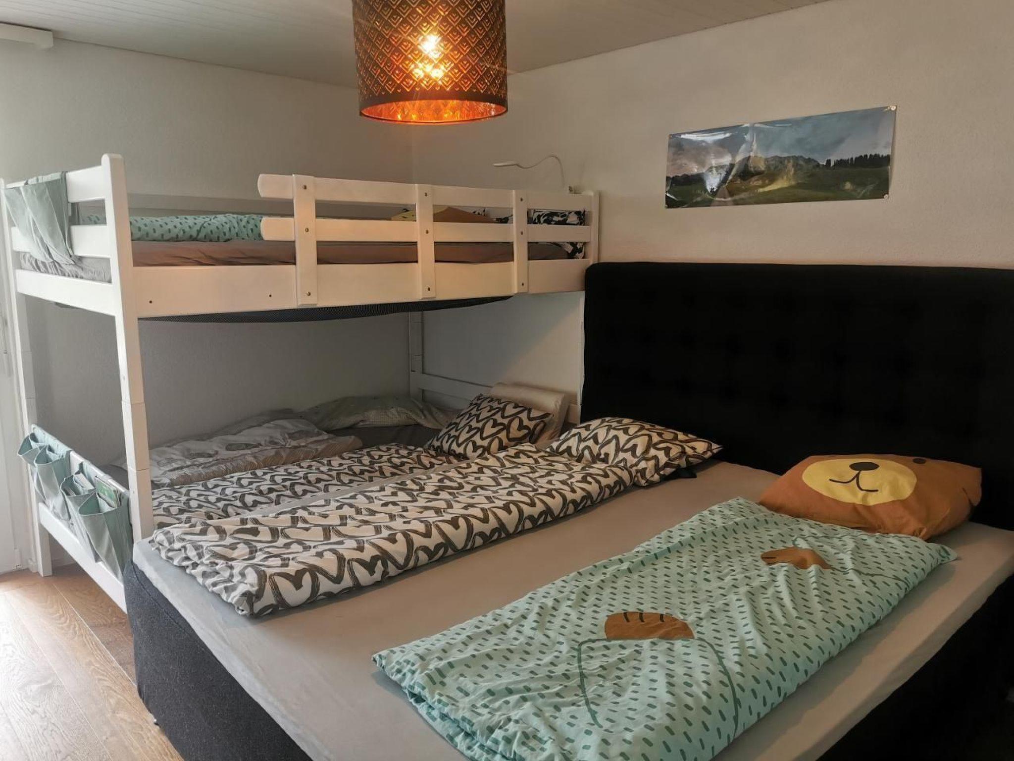 Sehr moderne, gemütliche und sonnige Ferienwohnung mit bis zu 6 Schlafplätzen, Cheminée und Balkon. Das Schlafzimmer ist mit einem Boxspringbett (1.80m), einem Etagenbett (1.40m), einem grossen Schrank sowie einem kleinen Schreibtisch ausgestattet. Im Badezimmer hat es eine Badewanne und ein WC (Haarföhn vorhanden). Das offene Wohnzimmer ist gemütlich eingerichtet mit einem Sofa (ausziehbar), einem Fernseher, Esstisch und vielen Spielsachen. Die offene Küche ist modern eingerichtet mit einem Induktionskochfeld und einem Umluftbackofen. Racletteofen, Fonduecaquelon, Toaster, Kaffeemaschine etc. ist alles vorhanden. Der sonnige Balkon mit Aussicht auf das Rothorn lädt zu gemütlichen Stunden ein. Parkplatz in der Tiefgarage. Waschmaschine, Sauna und Skiraum zur Mitbenützung.Die Wohnung ist an Toplage direkt im Dorfzentrum und 240 Meter von der Gondelbahn Rossweid und den Skilifts entfernt.