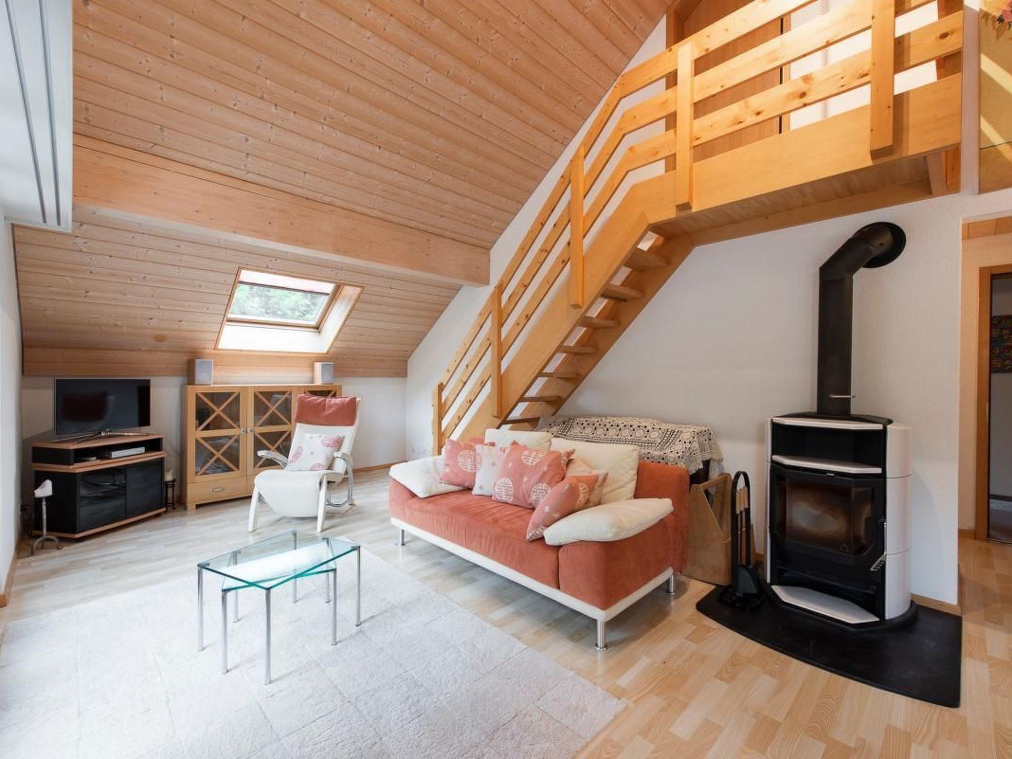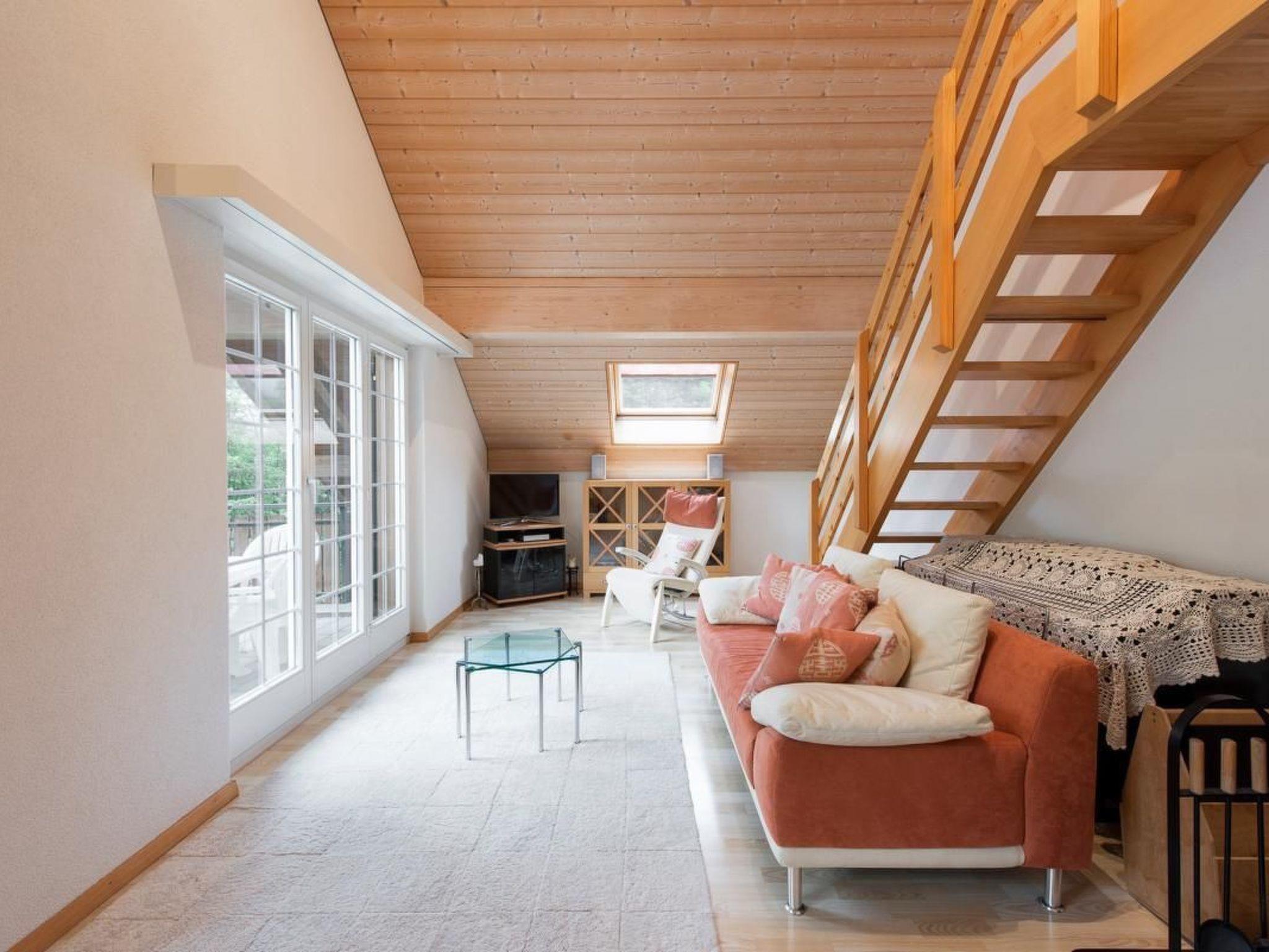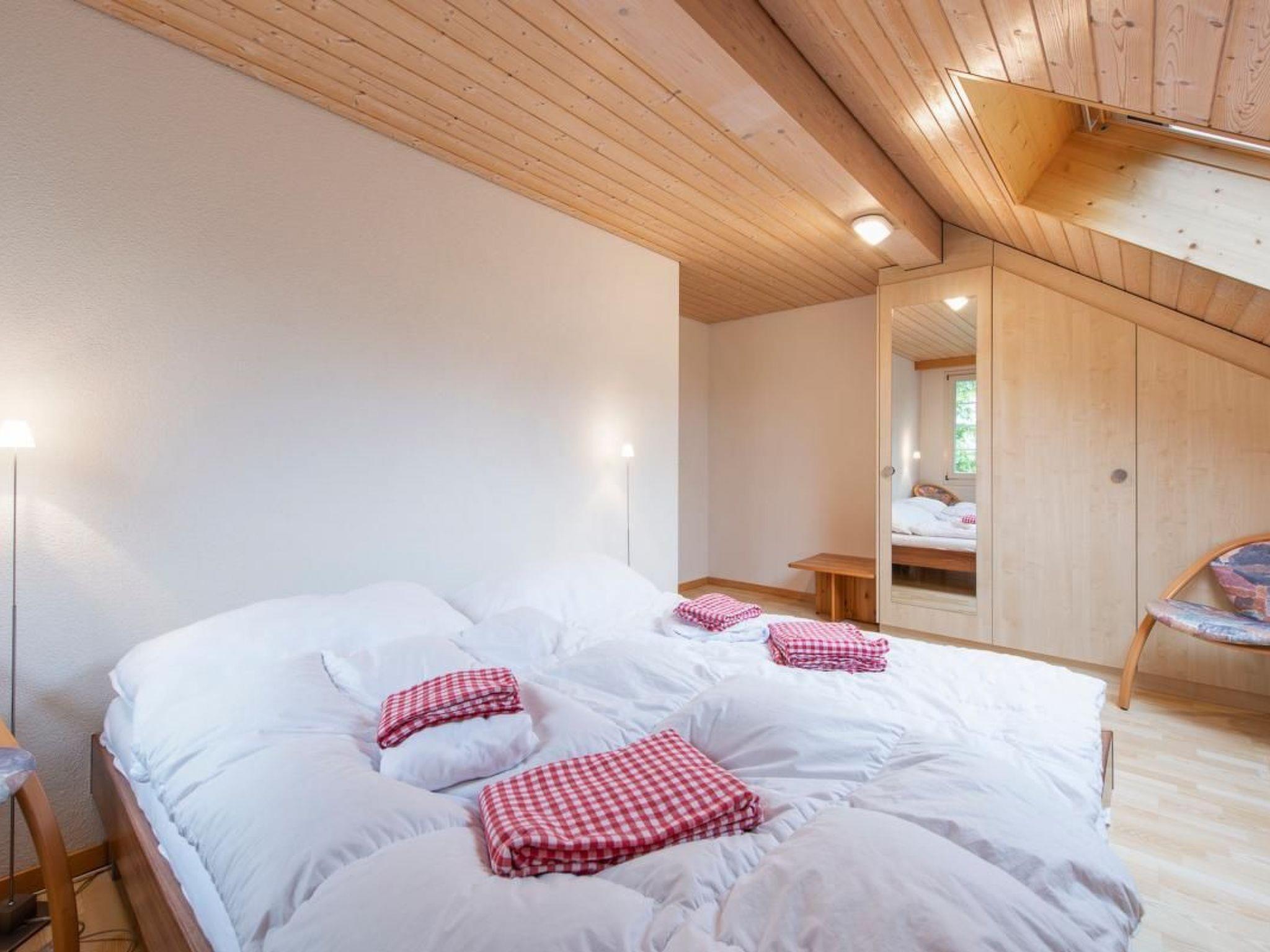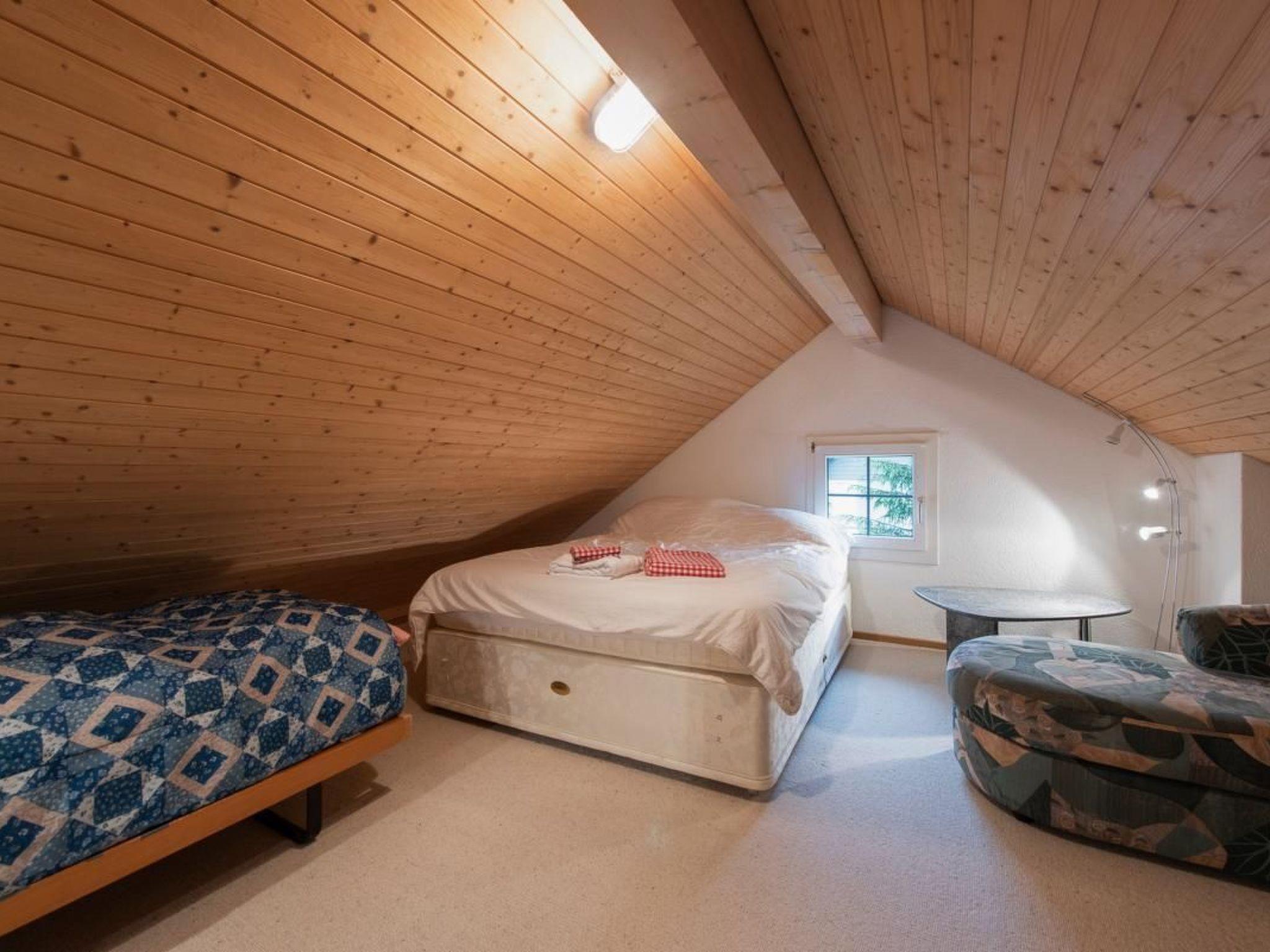 Im Inneren erwartet Sie ein großzügiges, lichtdurchflutetes Wohn-Esszimmer mit einer offenen Küche und einem gemütlichen Schwedenofen, welcher für heimelige Abende sorgt. Die Wohnung verteilt sich auf zwei Etagen im Dachstock eines Zweifamilienhauses und ist mit zwei Nasszellen (eine mit Bad/WC/Lavabo, die andere mit Dusche/WC/Lavabo) ausgestattet. Für Ihren Komfort stehen Ihnen zwei Doppelzimmer (eines mit Doppelbett, eines mit Etagenbetten) und auf einer oberen Mansarde zwei weitere Betten, eines davon 160 cm breit, zur Verfügung.