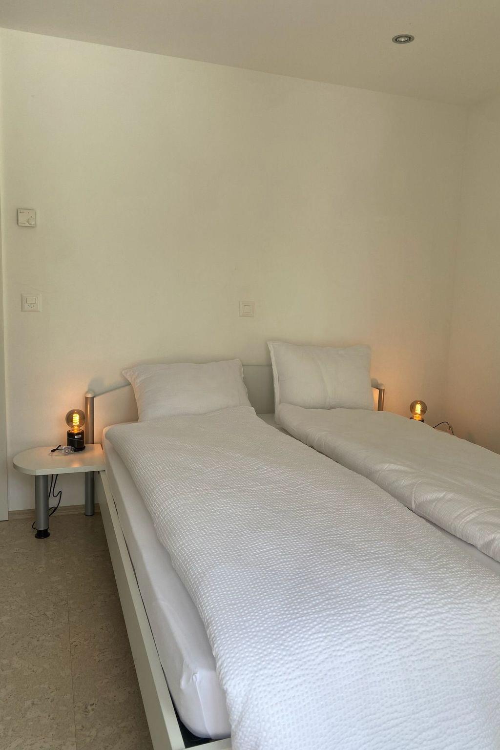 Im untersten Stock gibt es ein Zimmer mit Doppelbett, Kleiderschrank und Zugang nach draussen. Auch dieser Stock besitzt ein Badezimmer. Ausserdem befindet sich hier ein Büro mit einem ausziehbarem Schlafsofa, ebenfalls mit Zugang nach draussen. Zudem befindet sich die Waschküche auf diesem Stock.