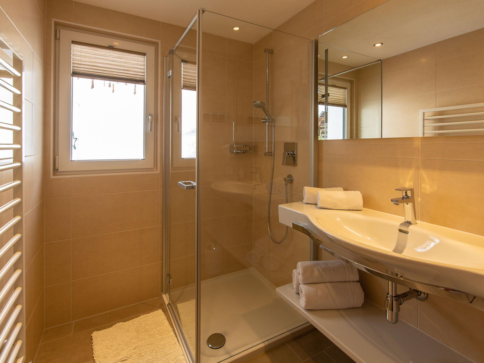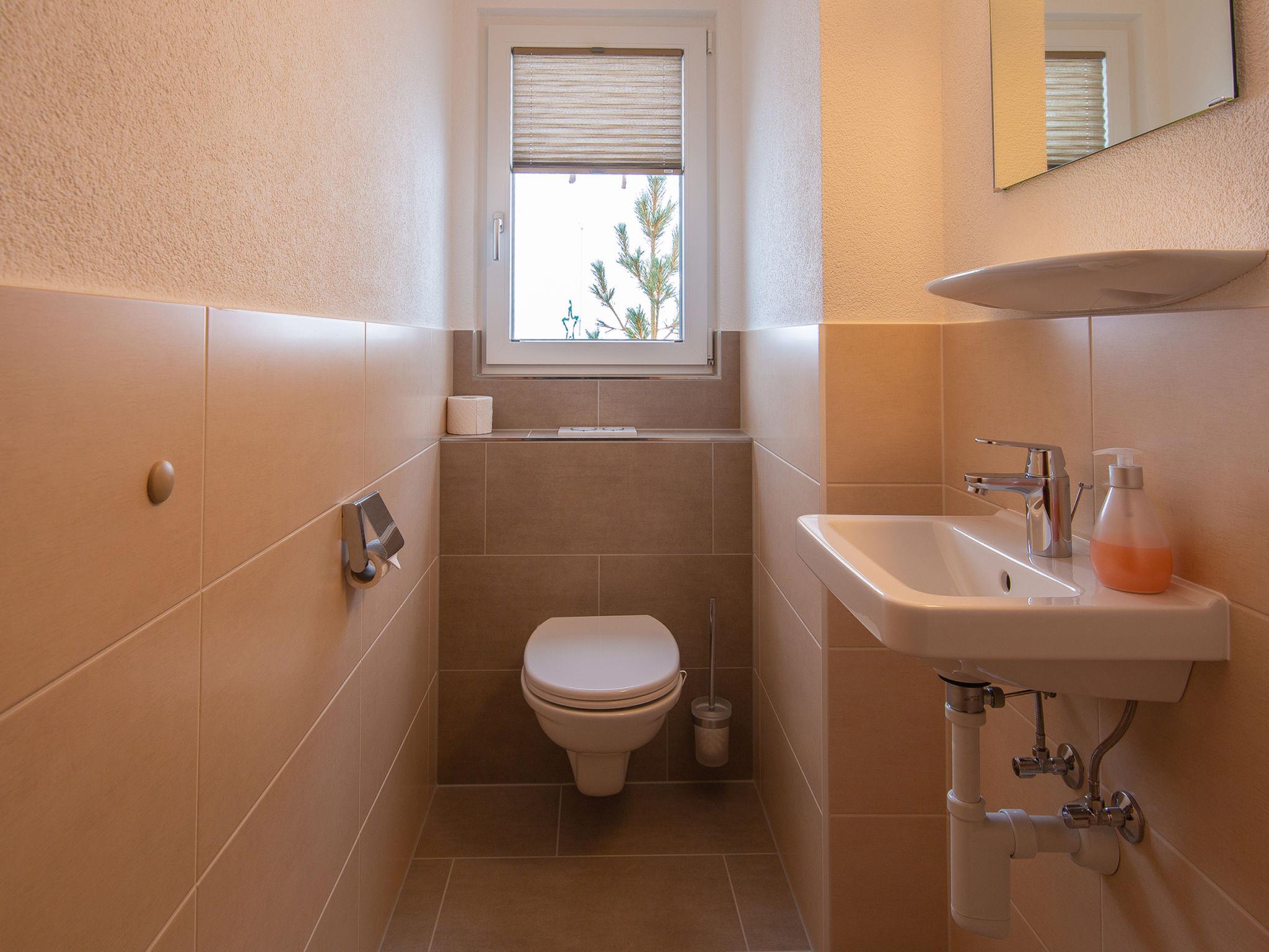 Badezimmer mit Dusche, separates WC, Haartrockner